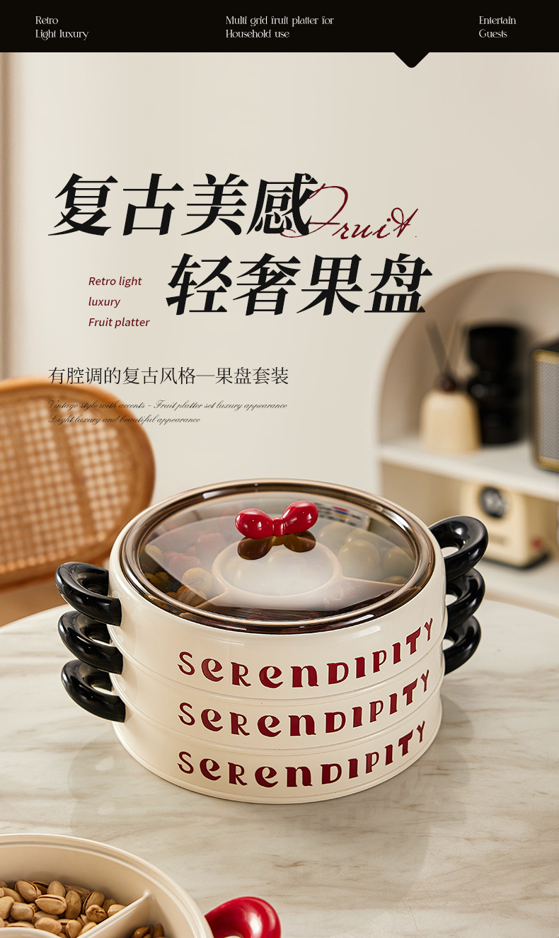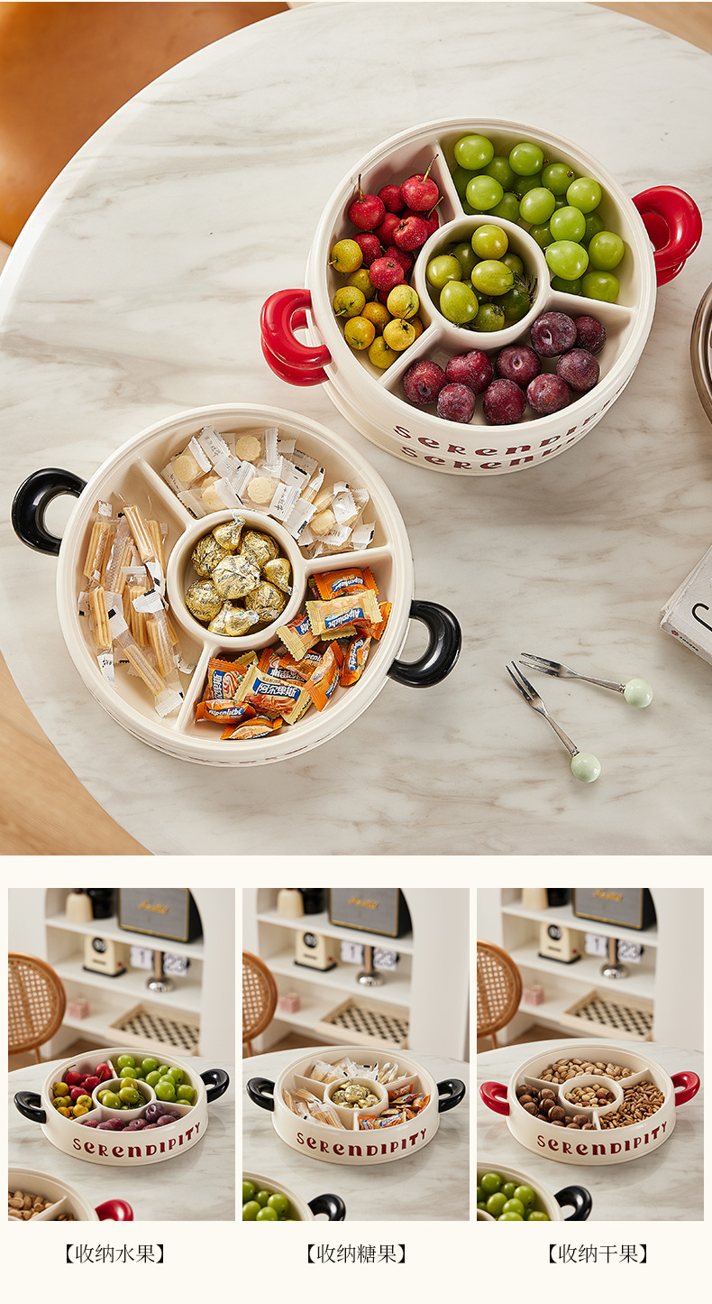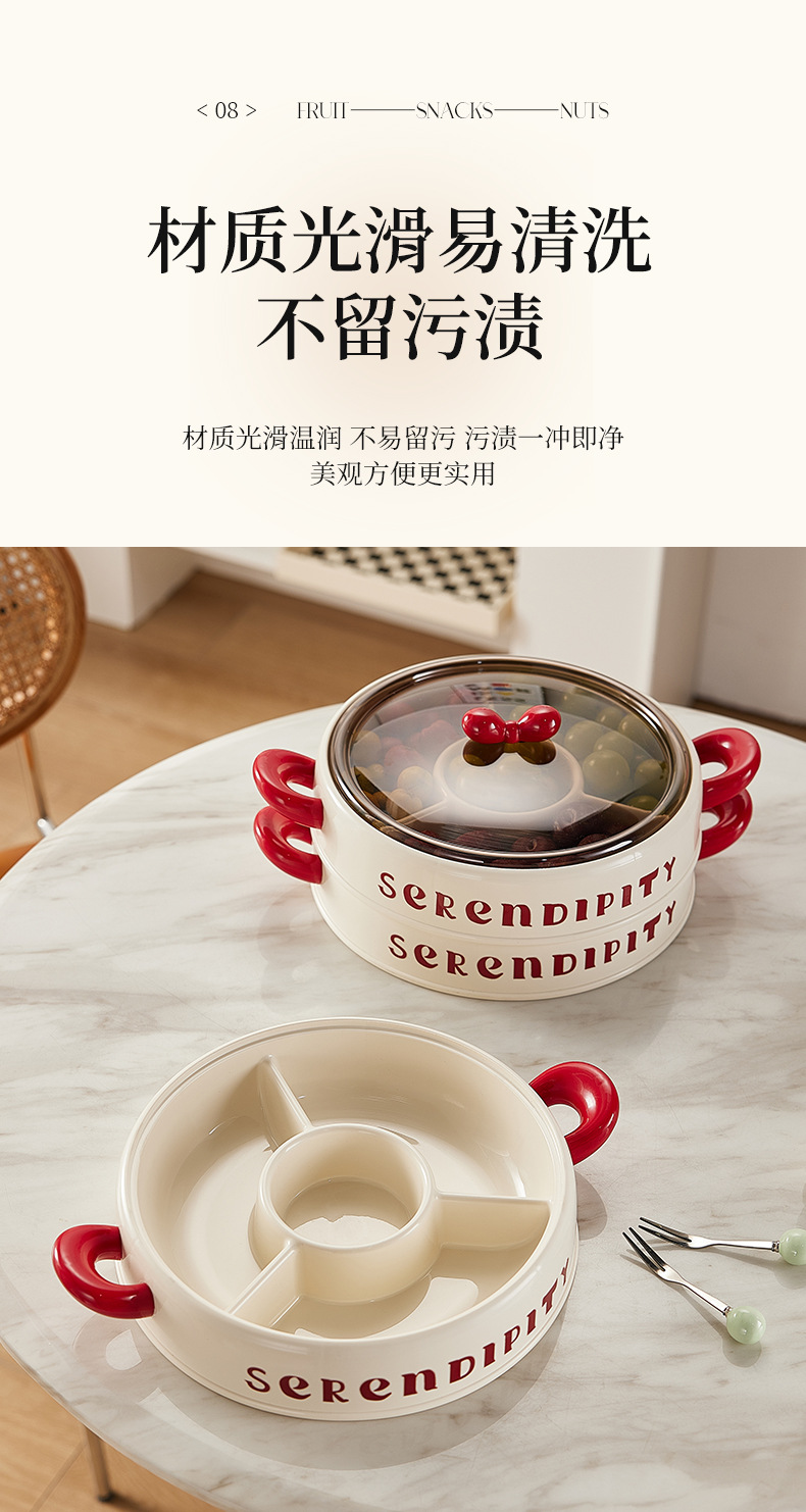 【品牌直发】【复古美感!轻奢果盘】多巴胺干果盘零食家用客厅茶几干果盒蝴蝶结糖果盒瓜子坚果收纳盒,独立分格不串味,一格一物。ry