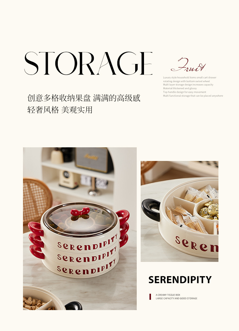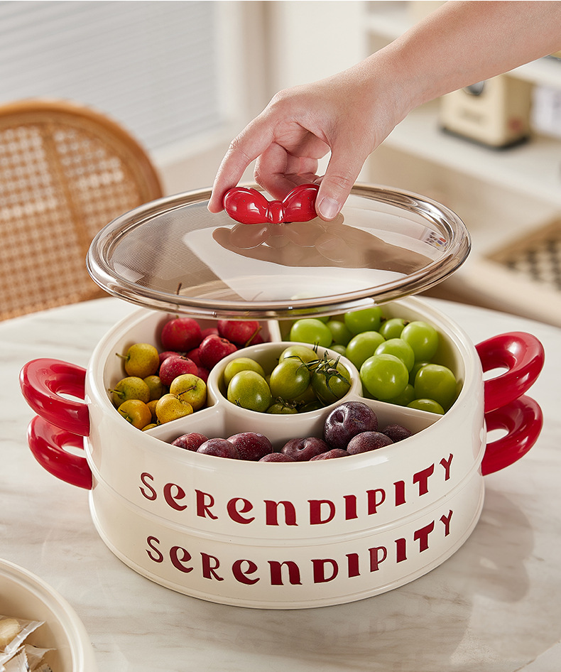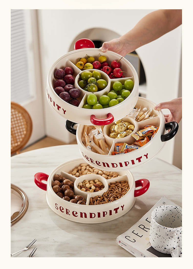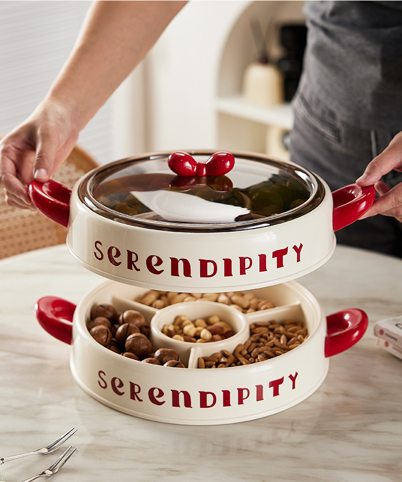 【品牌直发】【复古美感!轻奢果盘】多巴胺干果盘零食家用客厅茶几干果盒蝴蝶结糖果盒瓜子坚果收纳盒,独立分格不串味,一格一物。ry