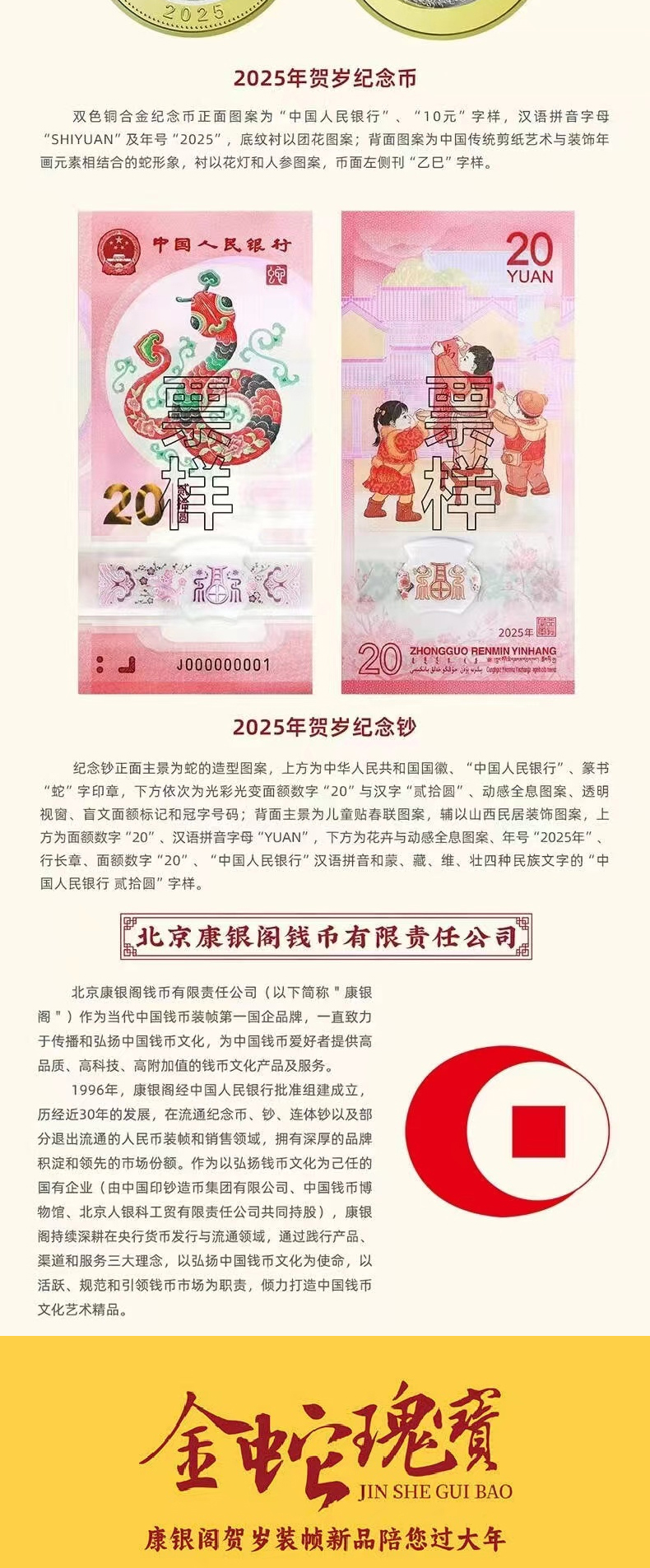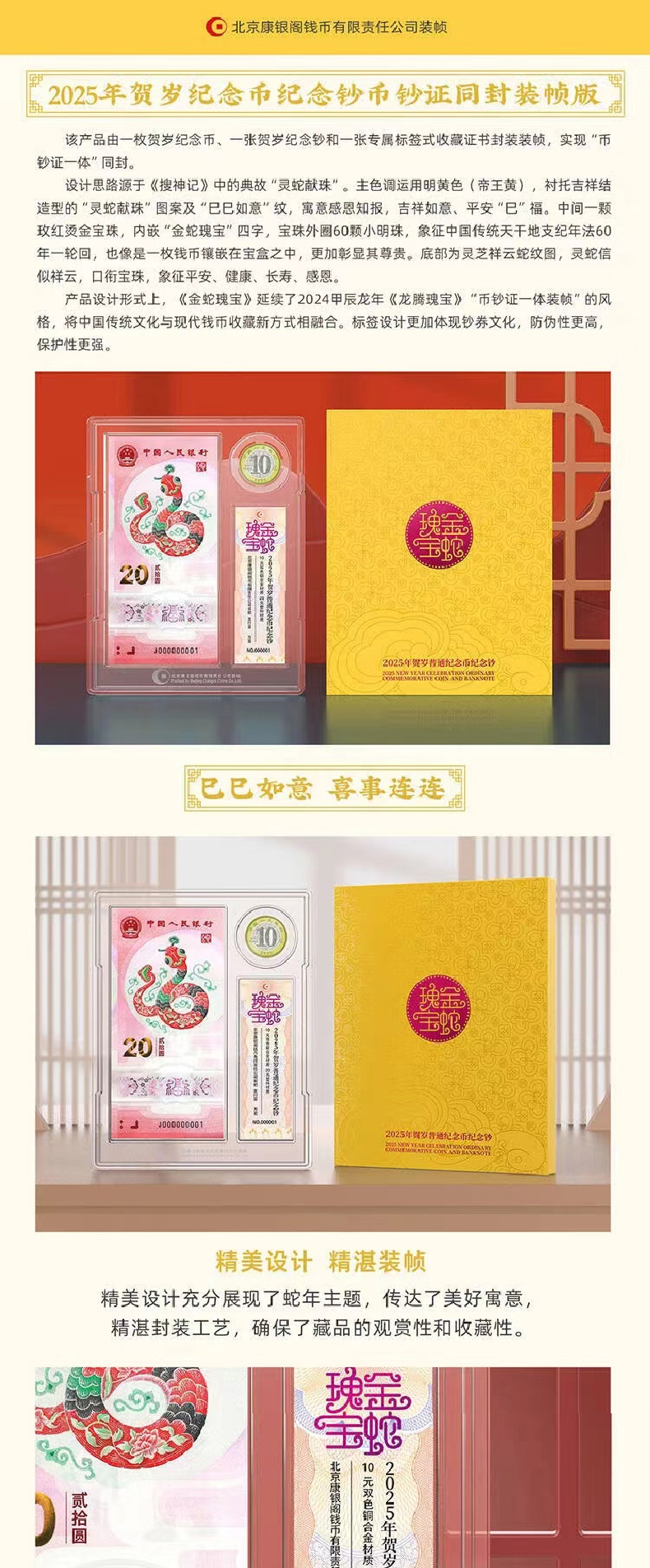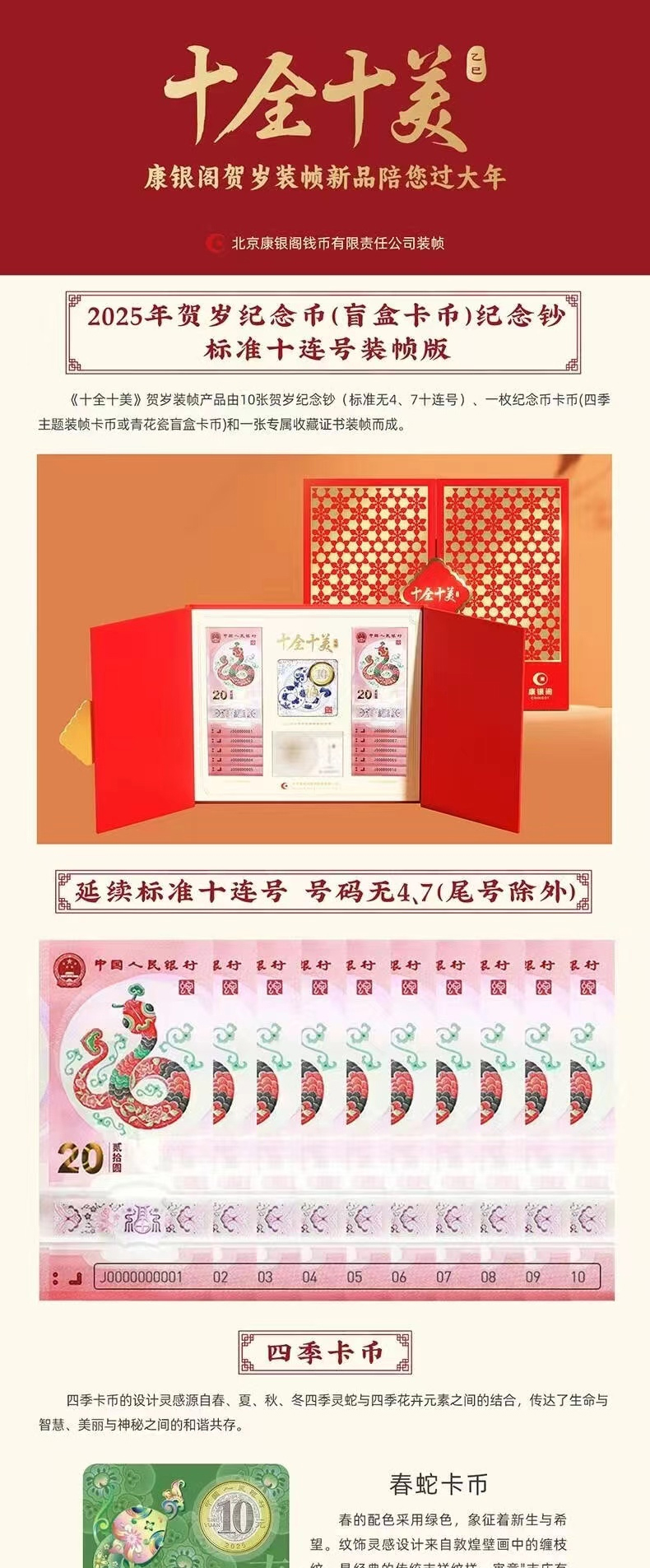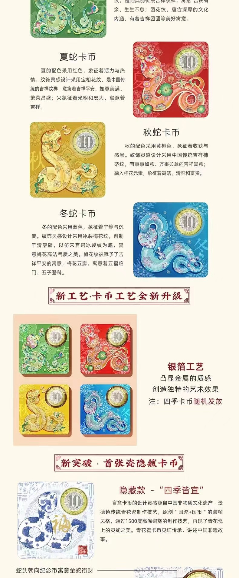 康银阁装帧蛇币蛇钞 金蛇瑰宝 四季和合-1币1钞盲盒 十全十美-蛇钞标十青花瓷蛇币卡