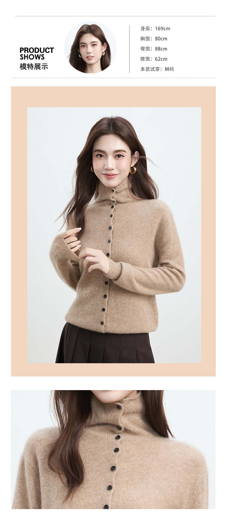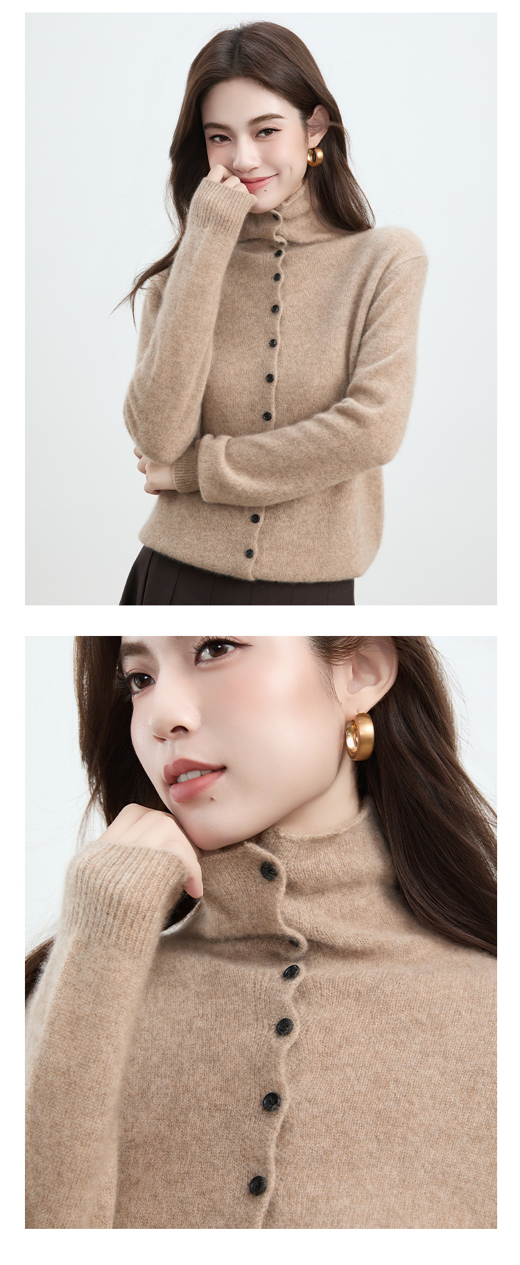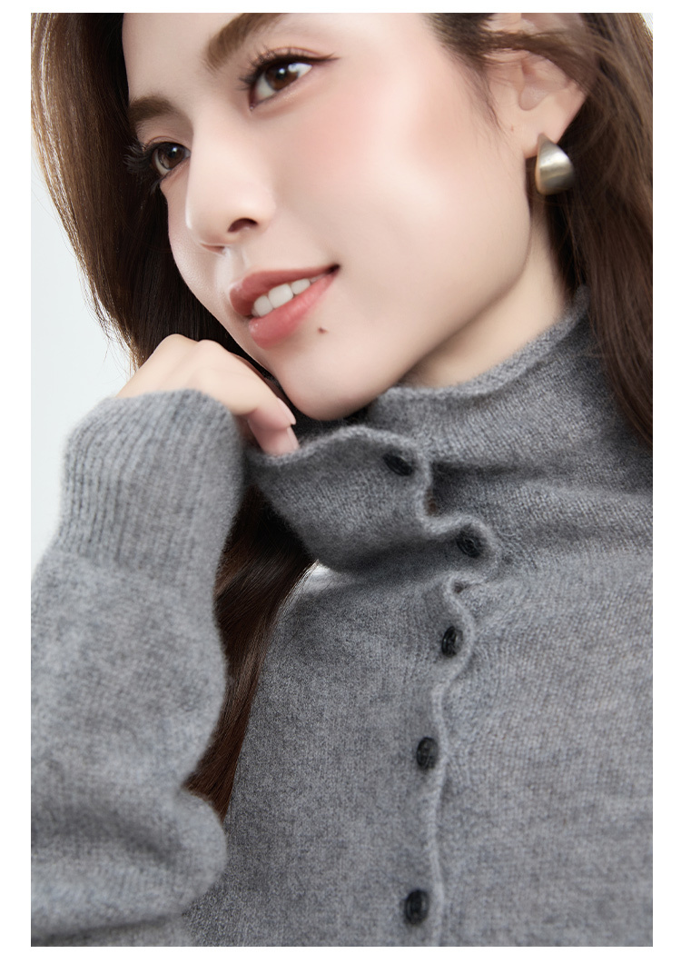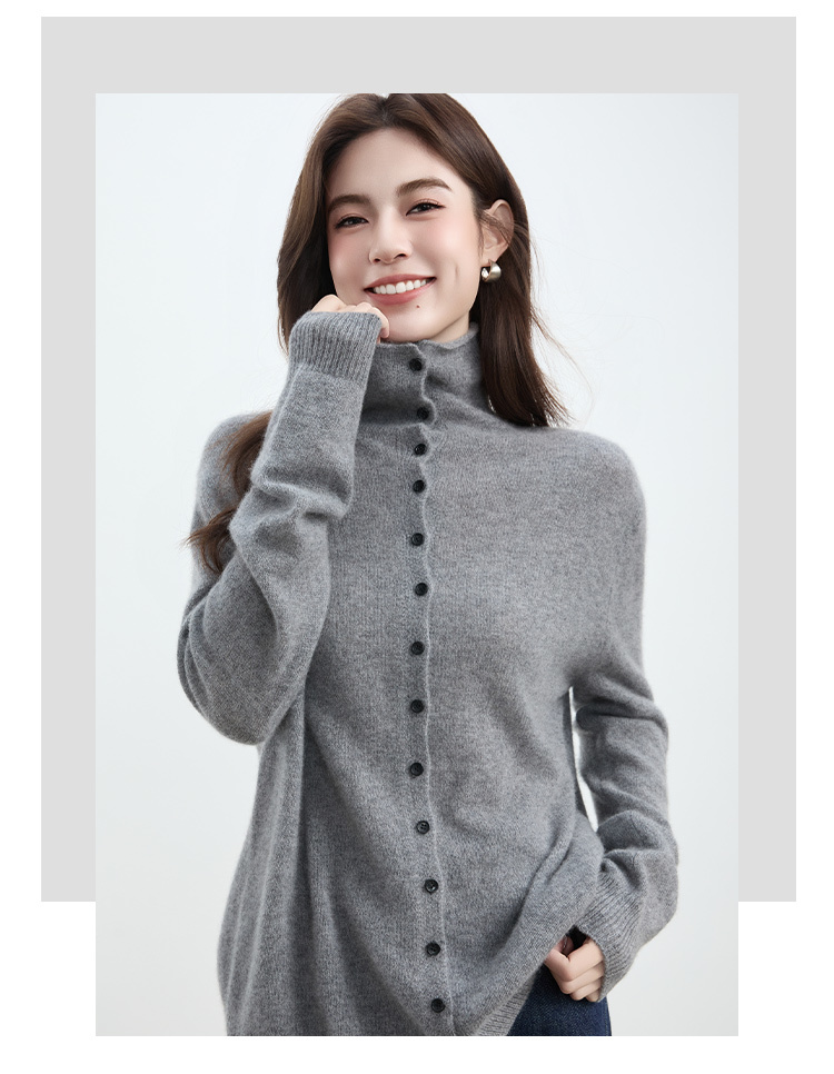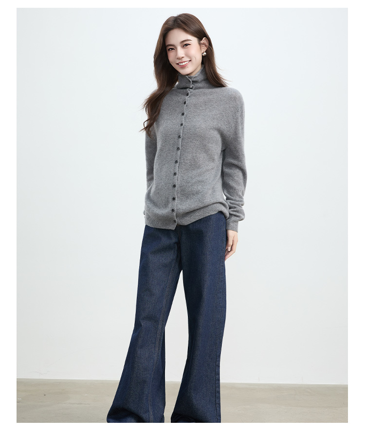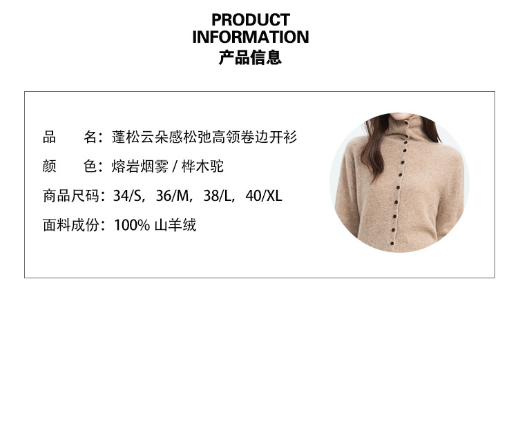VogoPetite2025新款 100%山羊绒 蓬松云朵感松弛慵懒高领卷边开衫 BP141F1702