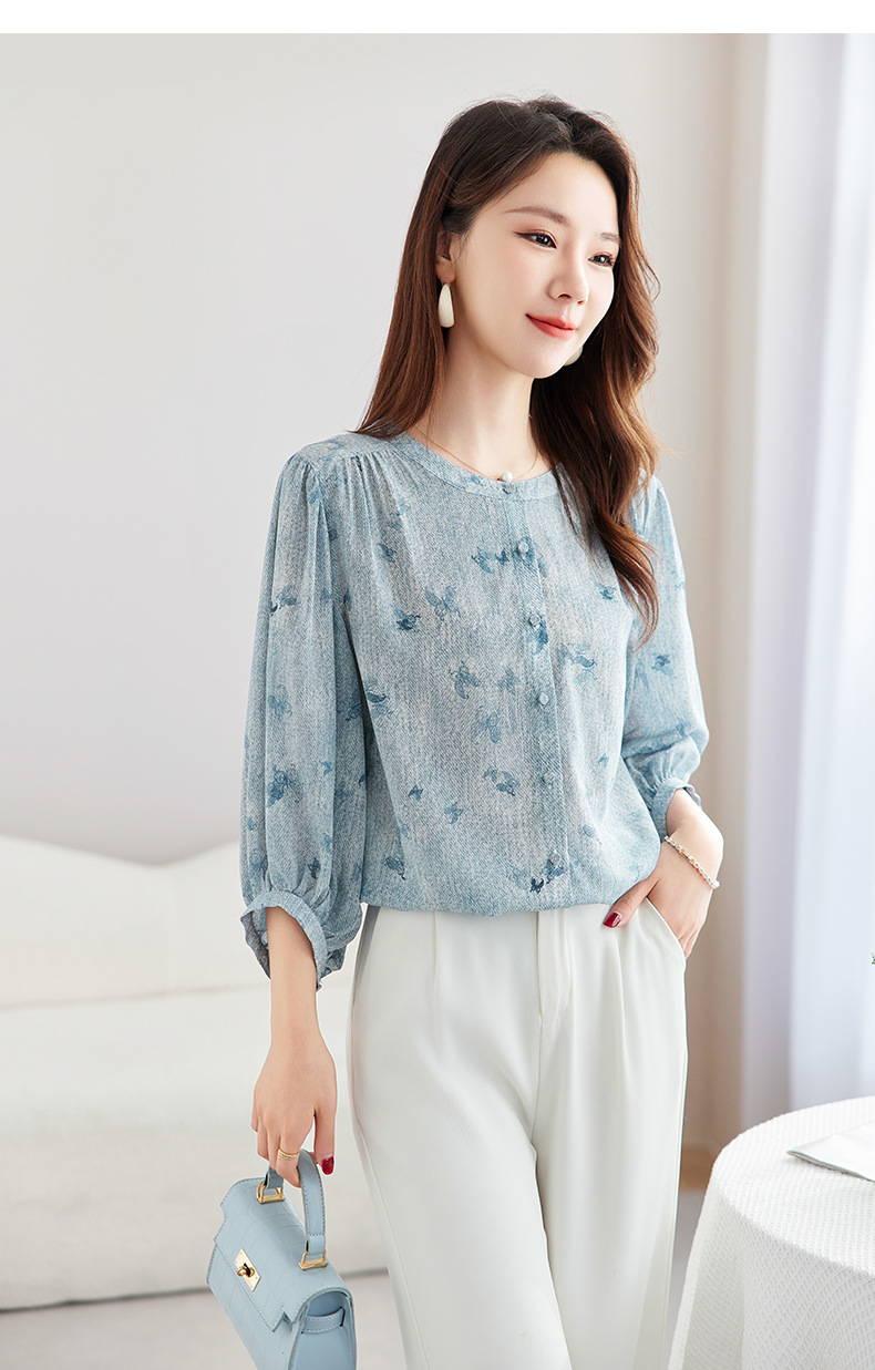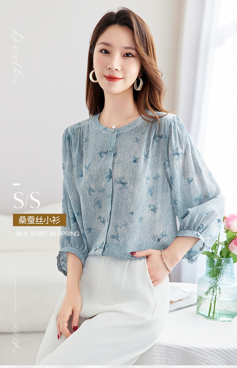 QS-12599716【真丝弹力重绉】100%桑蚕丝宽松女式衬衫减龄真丝小衫女12599716