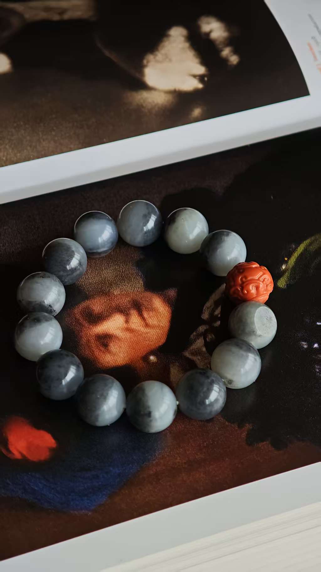 脂白与墨色分明的14mm大珠,