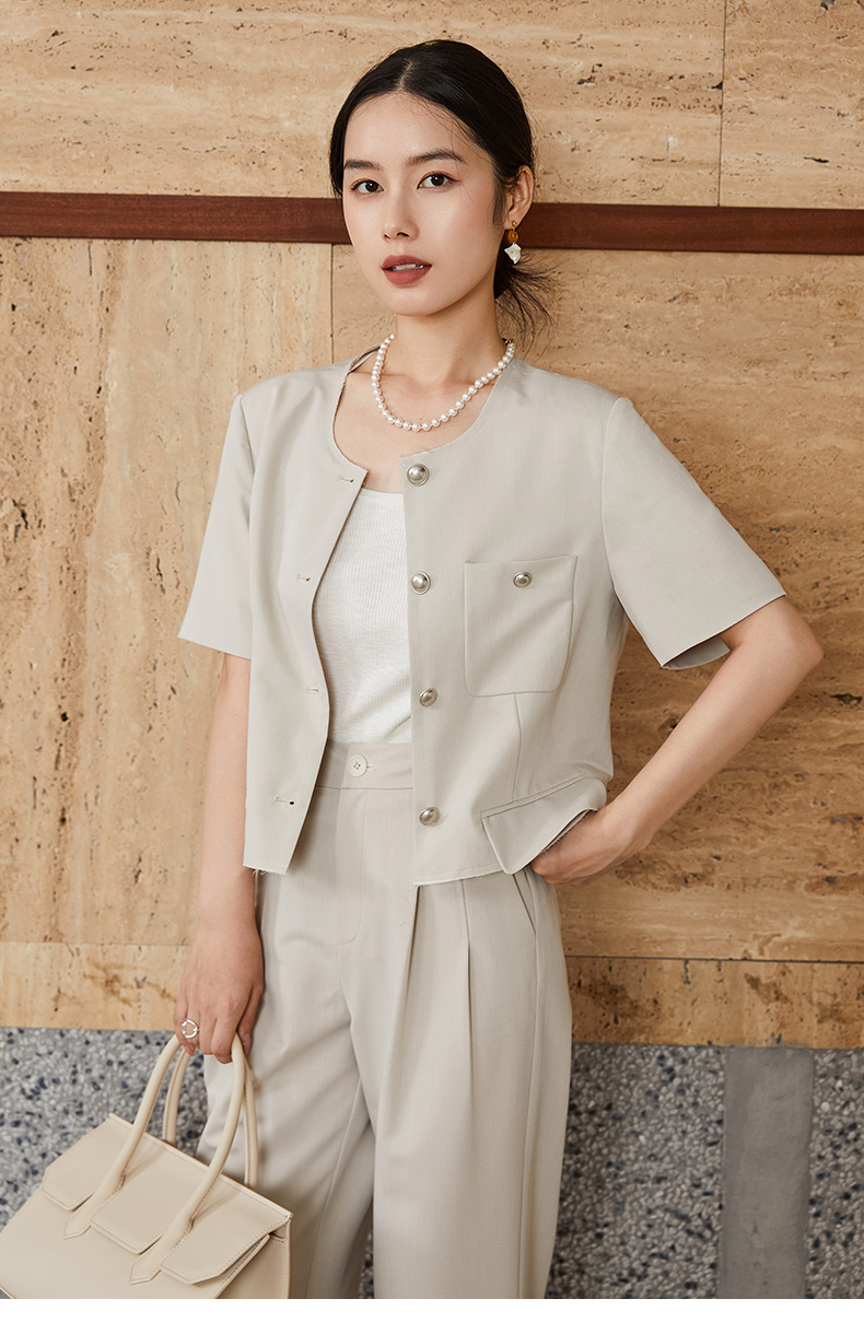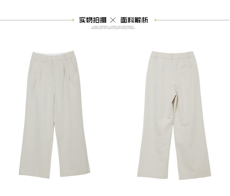 韩系慵懒风米白色高腰阔腿西装裤女 垂感显瘦直筒休闲裤 小个子通勤百搭拖地裤