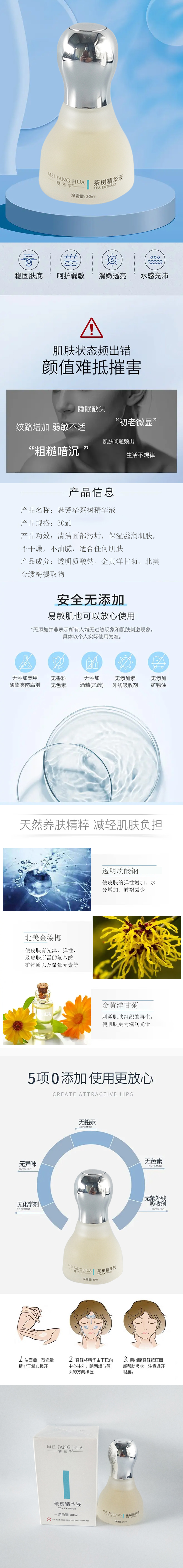 魅芳华茶树精华液30ml调节皮肤水油修护收敛毛孔