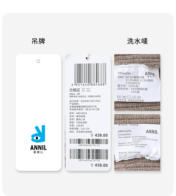 【实体店同款】男童翻领上衣冬季新款安奈儿童装AB544034