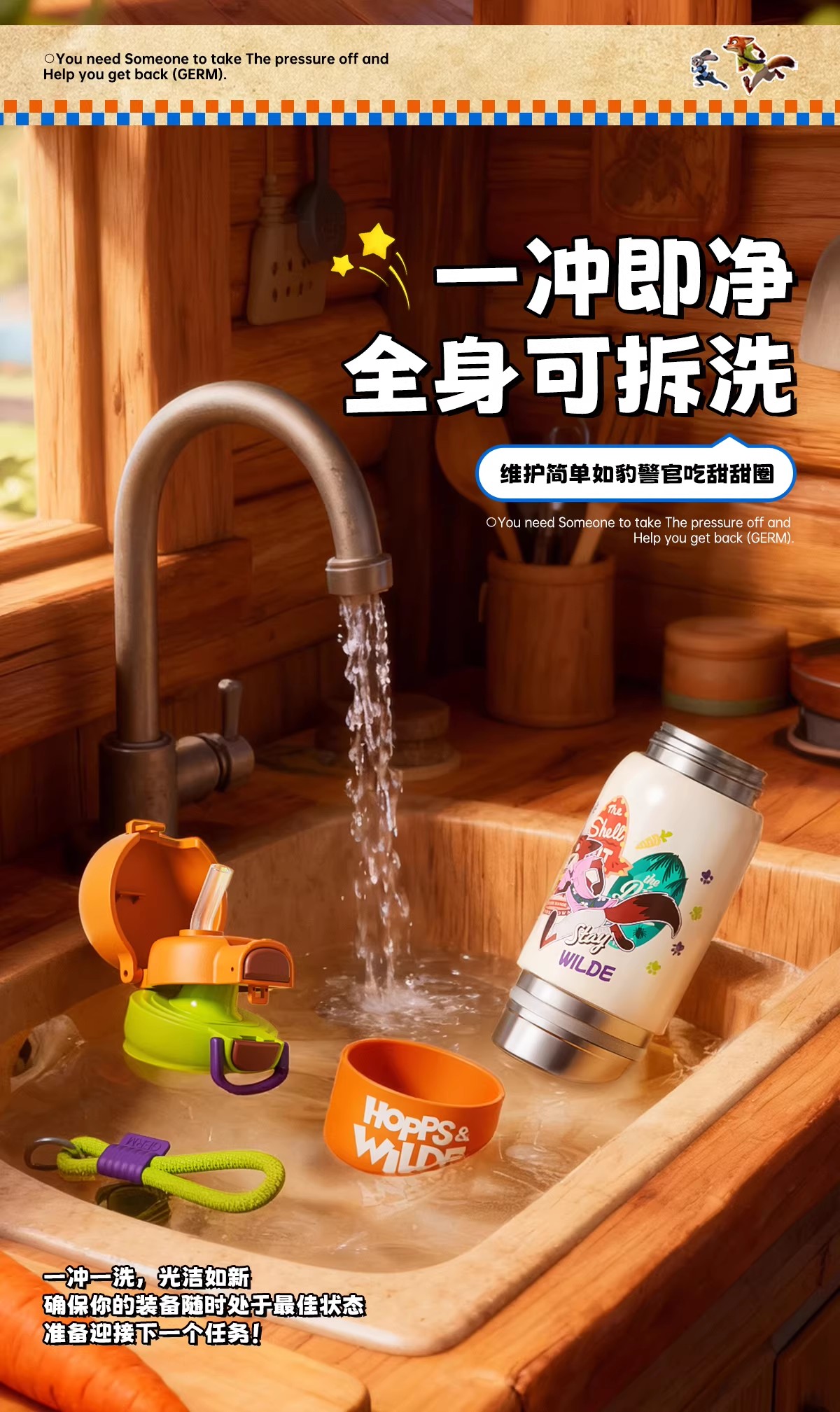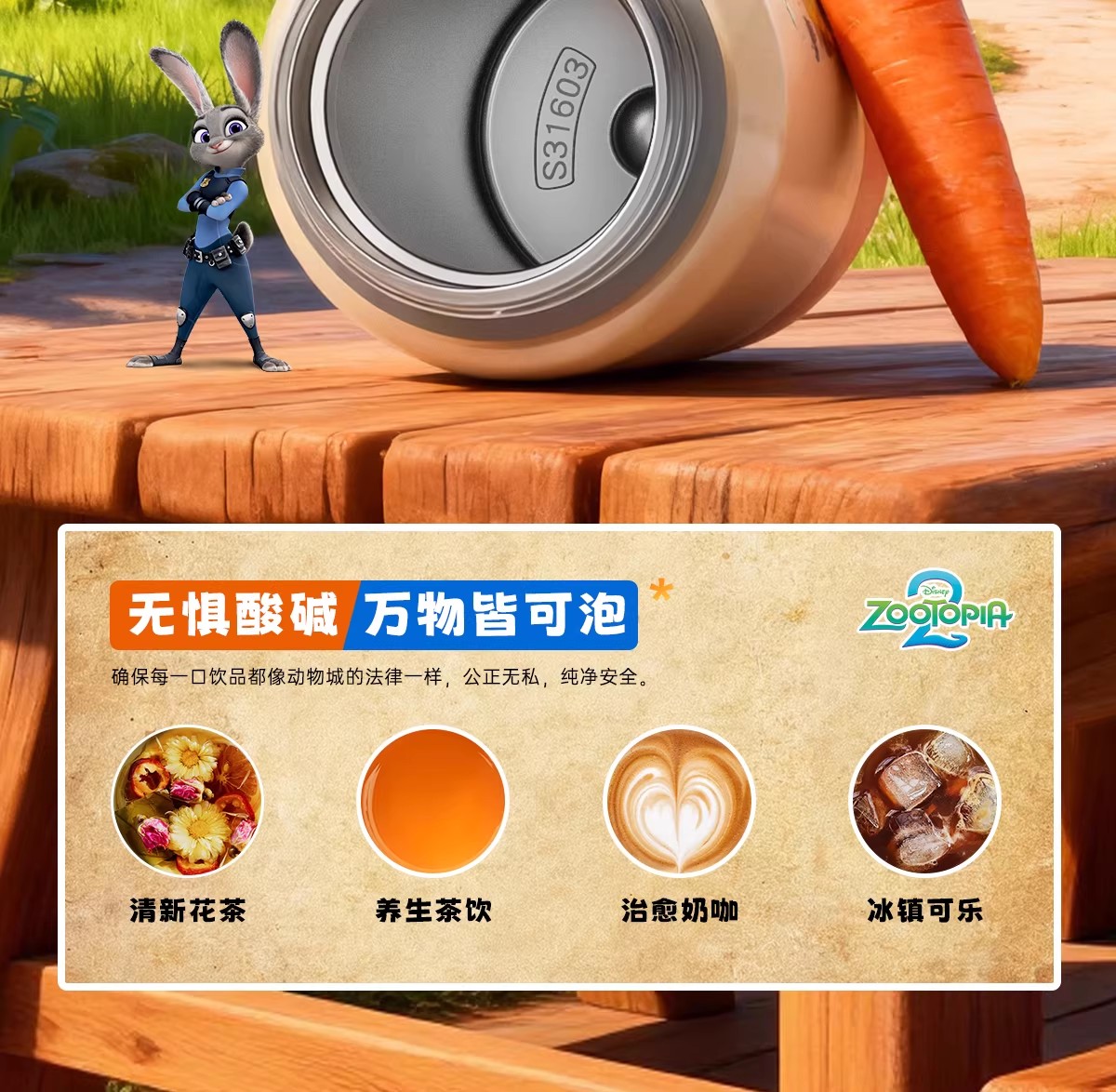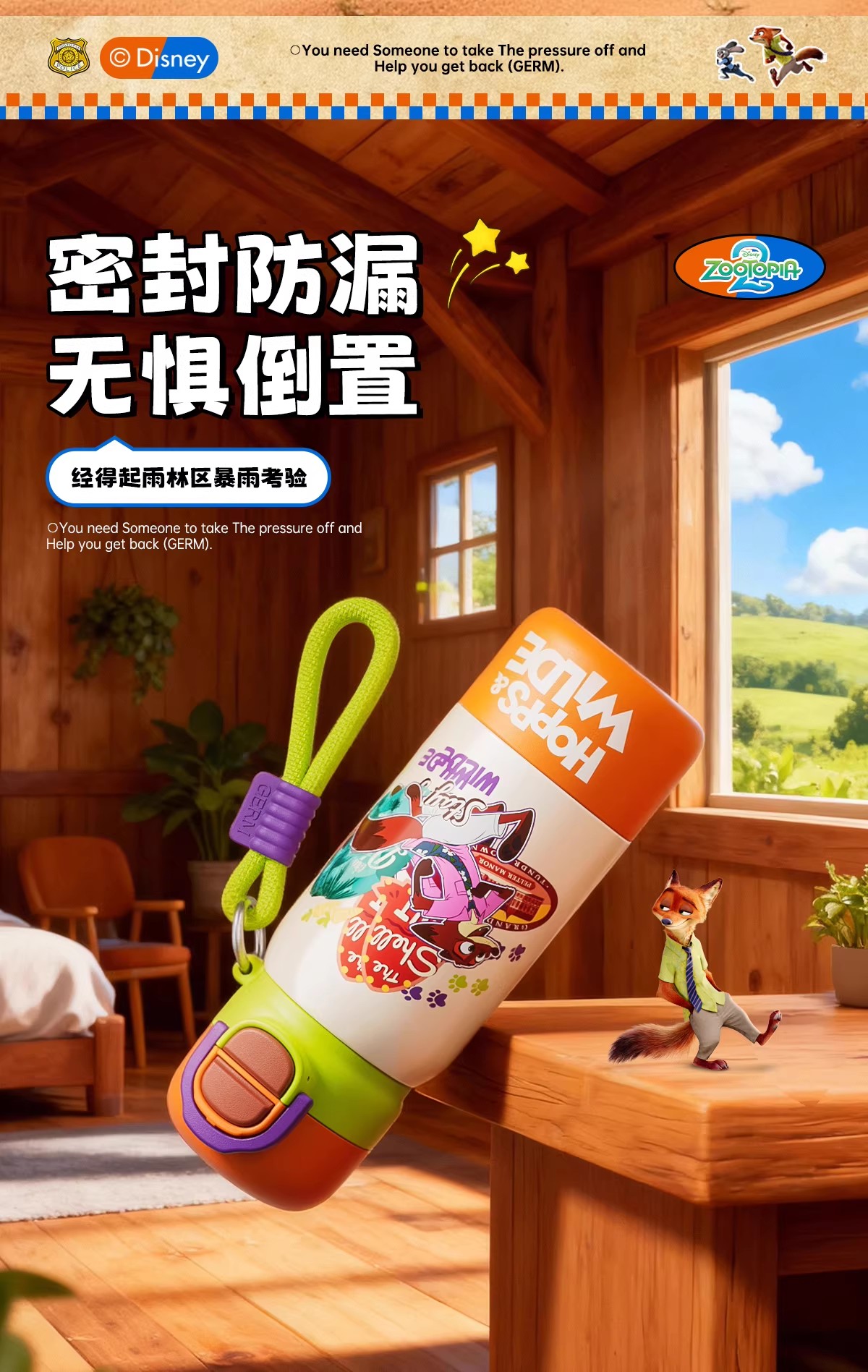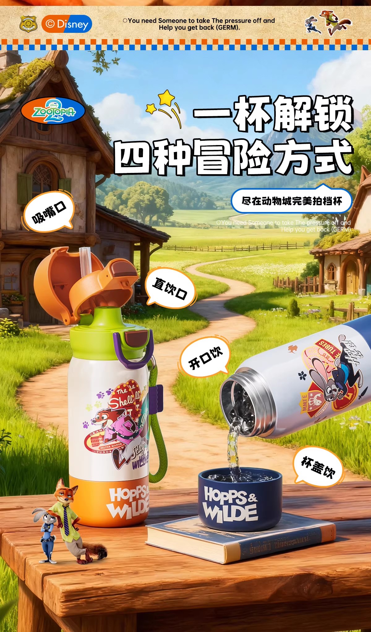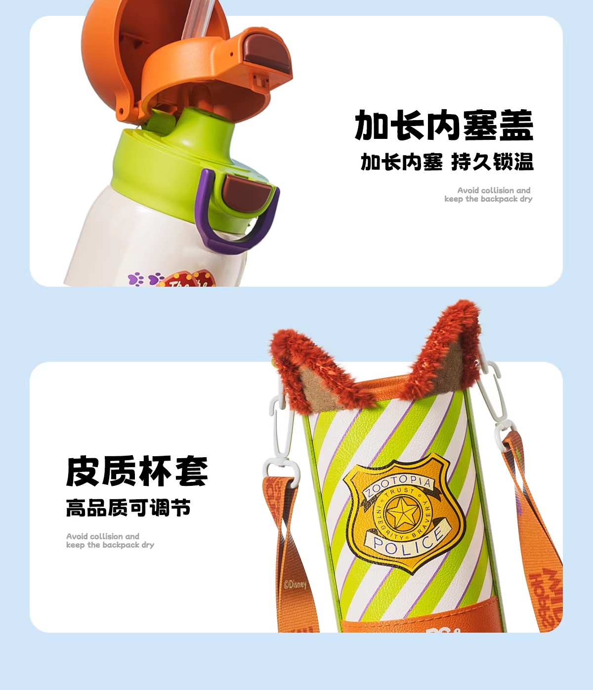 GERM格米疯狂动物城系列趣享弹跳保温杯500ml朱迪蓝+杯套