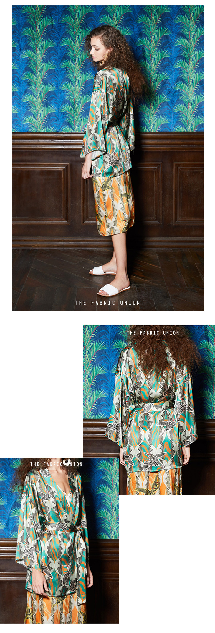 「宇宙游园」/THE FABRIC UNION 女士真丝印花和服式睡袍 "仙岛飞行记"