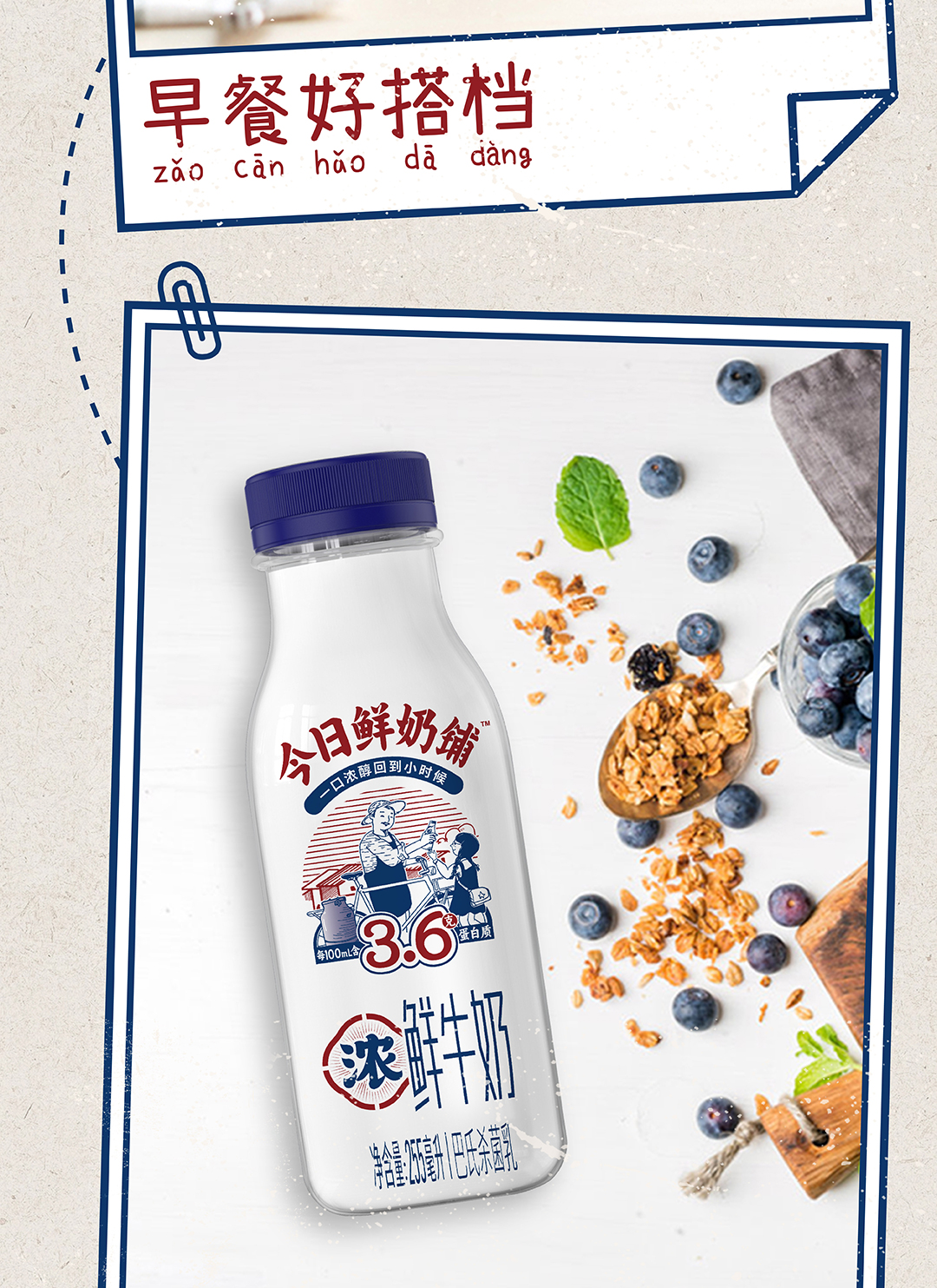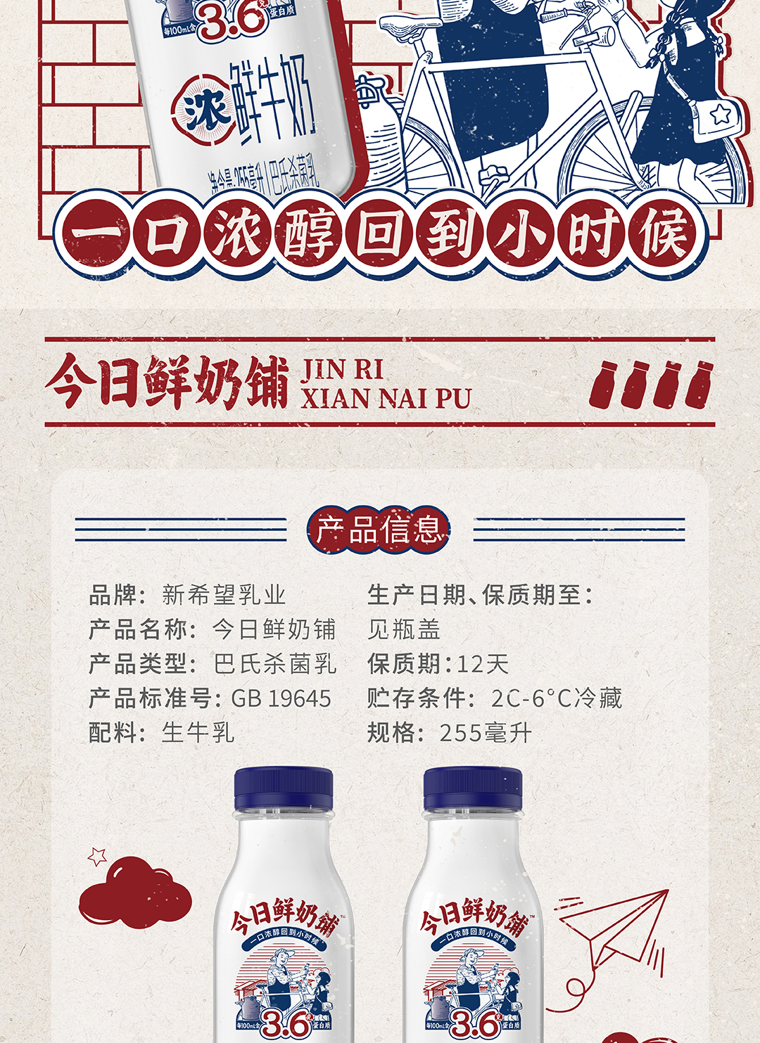 【会员享优惠】新希望今日鲜奶铺塑瓶巴氏杀菌乳255ml