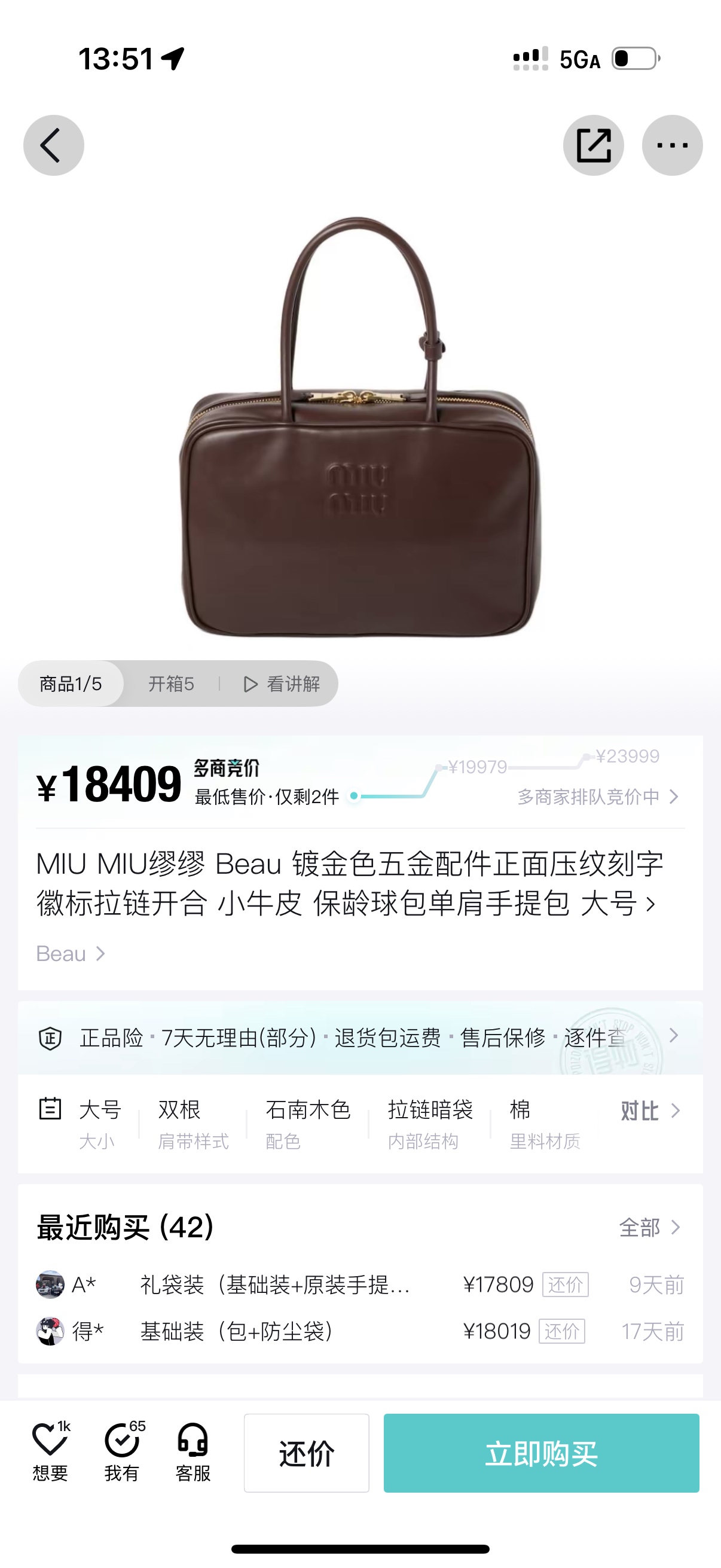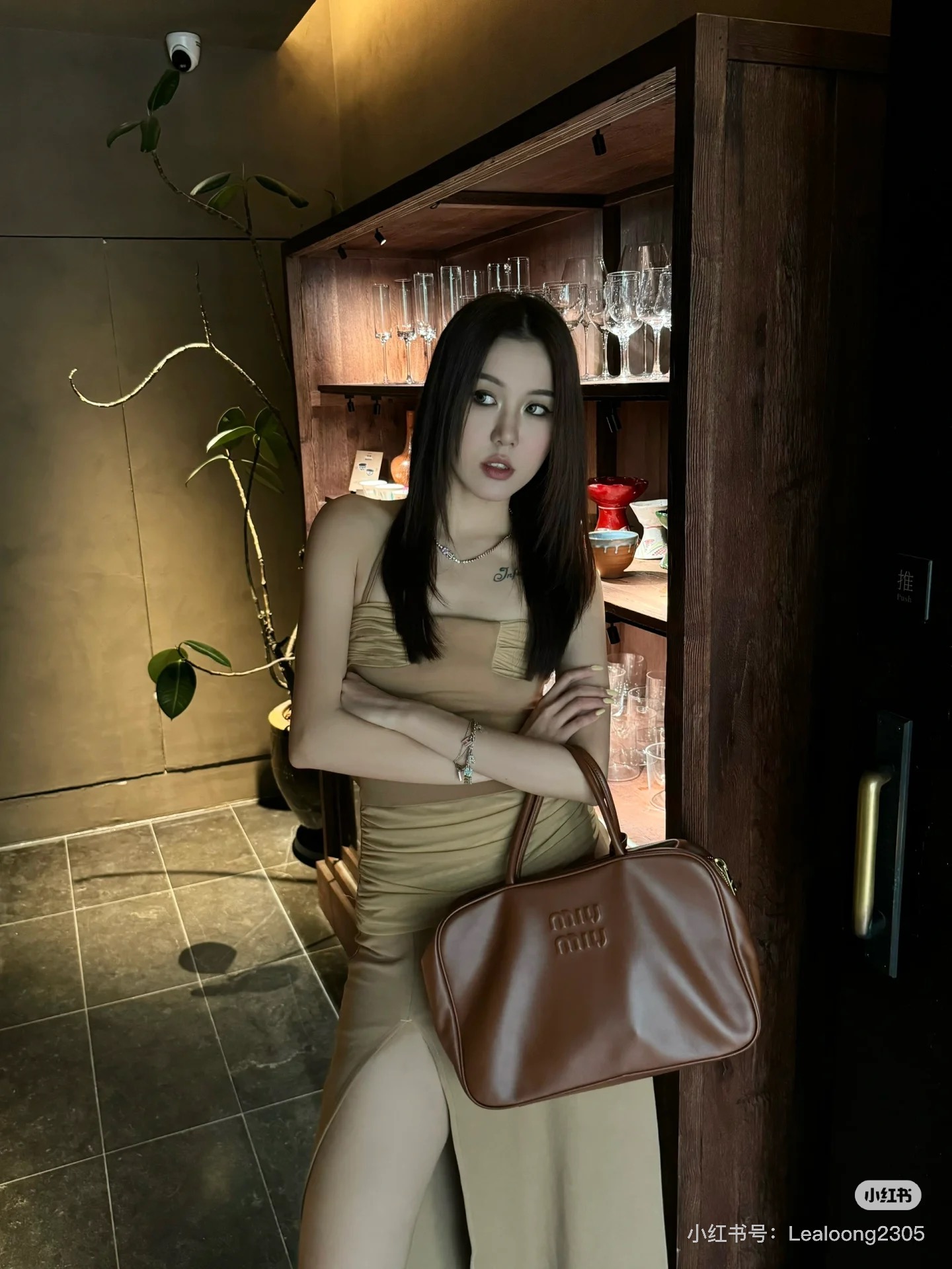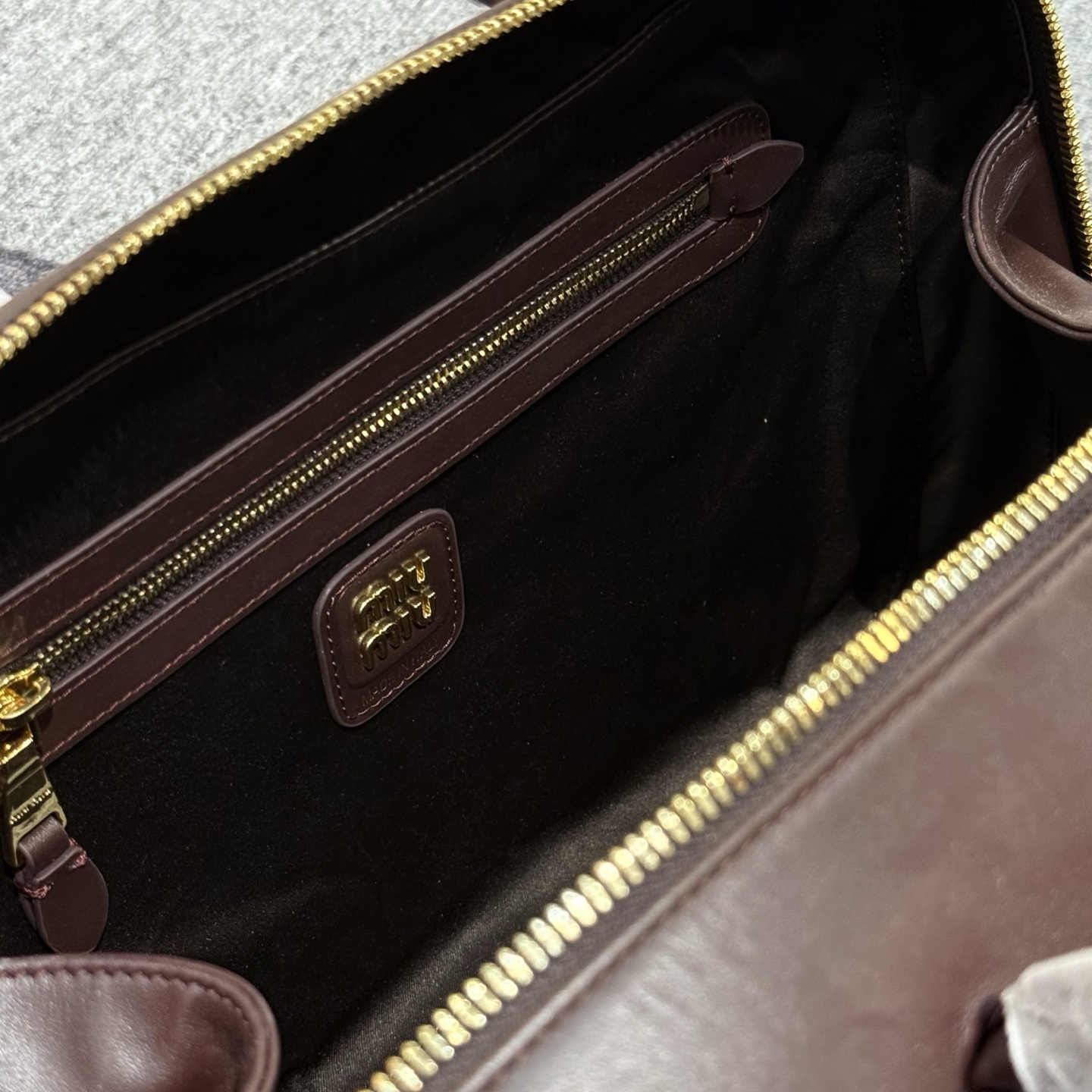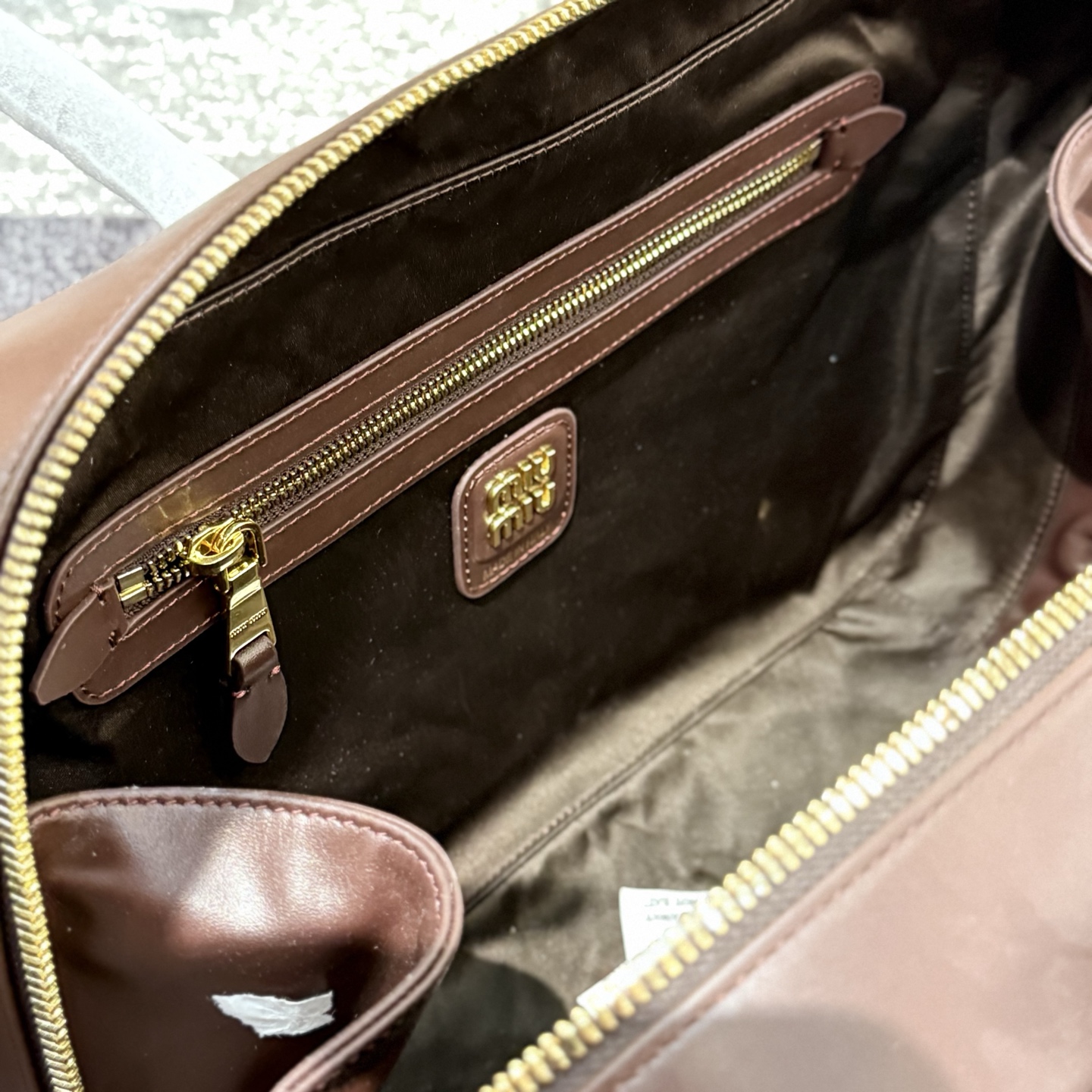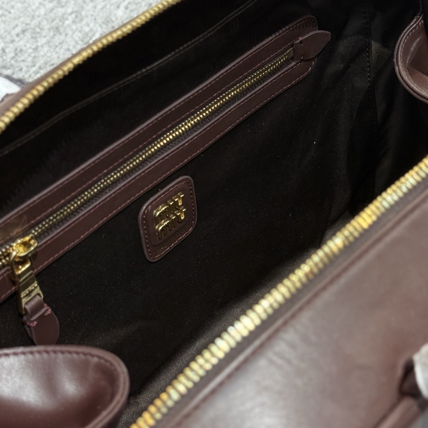 孤品微瑕心态‼️ 海扣正品品质⚠️ ! 石南木色镀金色保龄球包手提包 爱称她为保龄球包!MIUMIU新款手提包! 浮雕徽标.摸起来非常的柔软细腻.软软糯糯.