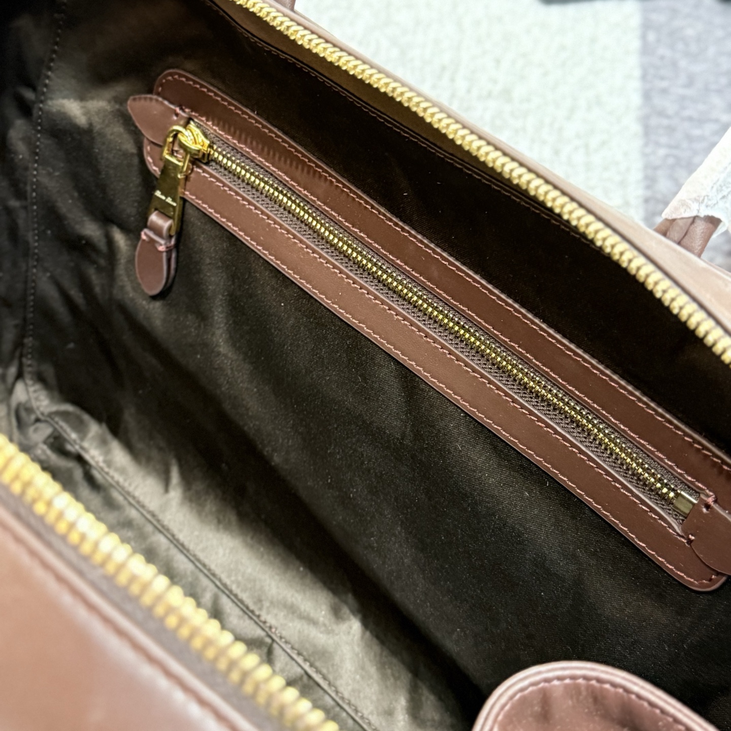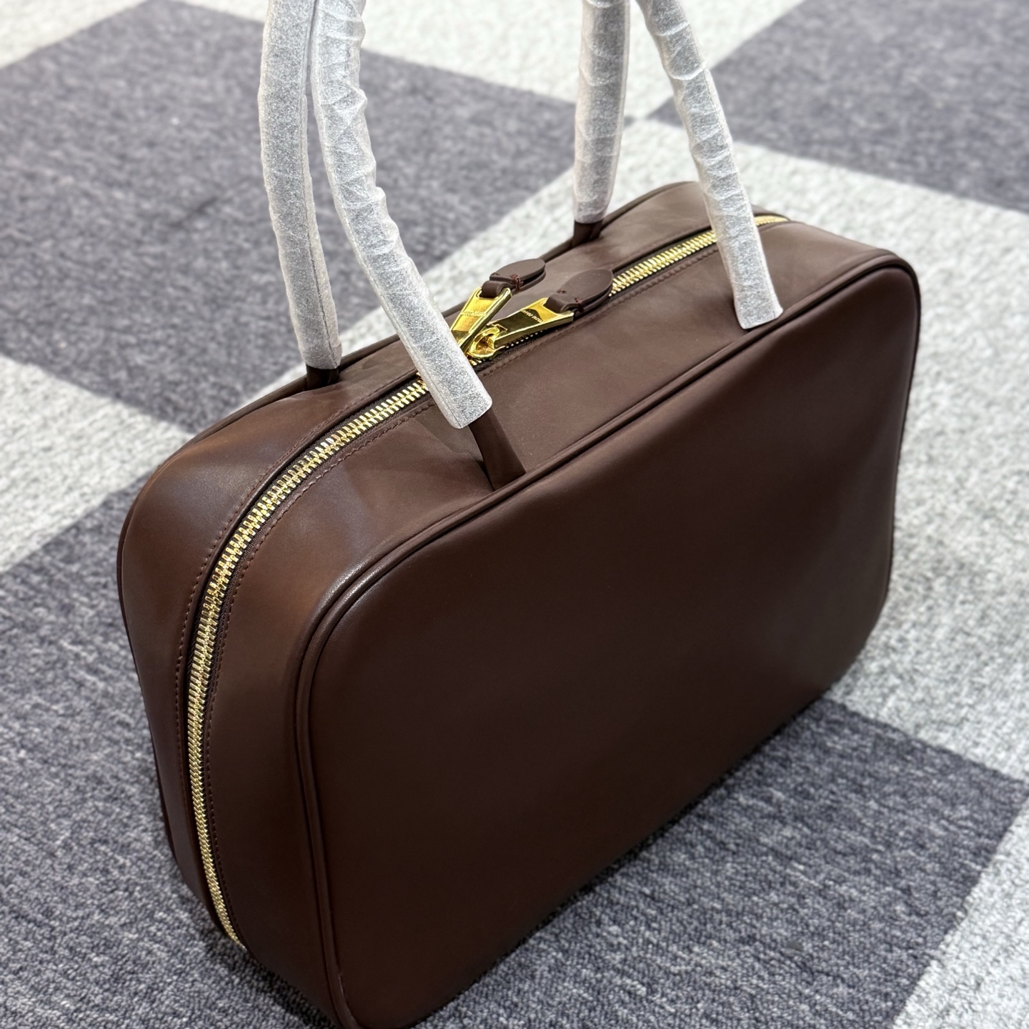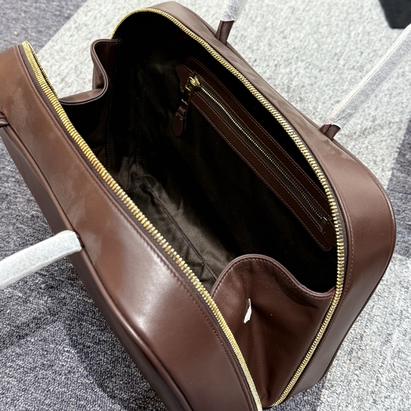 简约的徽标元素一目了然.双向拉链开合设计. 棉质缎面衬里.能装.款式设计简约.百搭. 上身气场全开.任何场合都能驾驭.