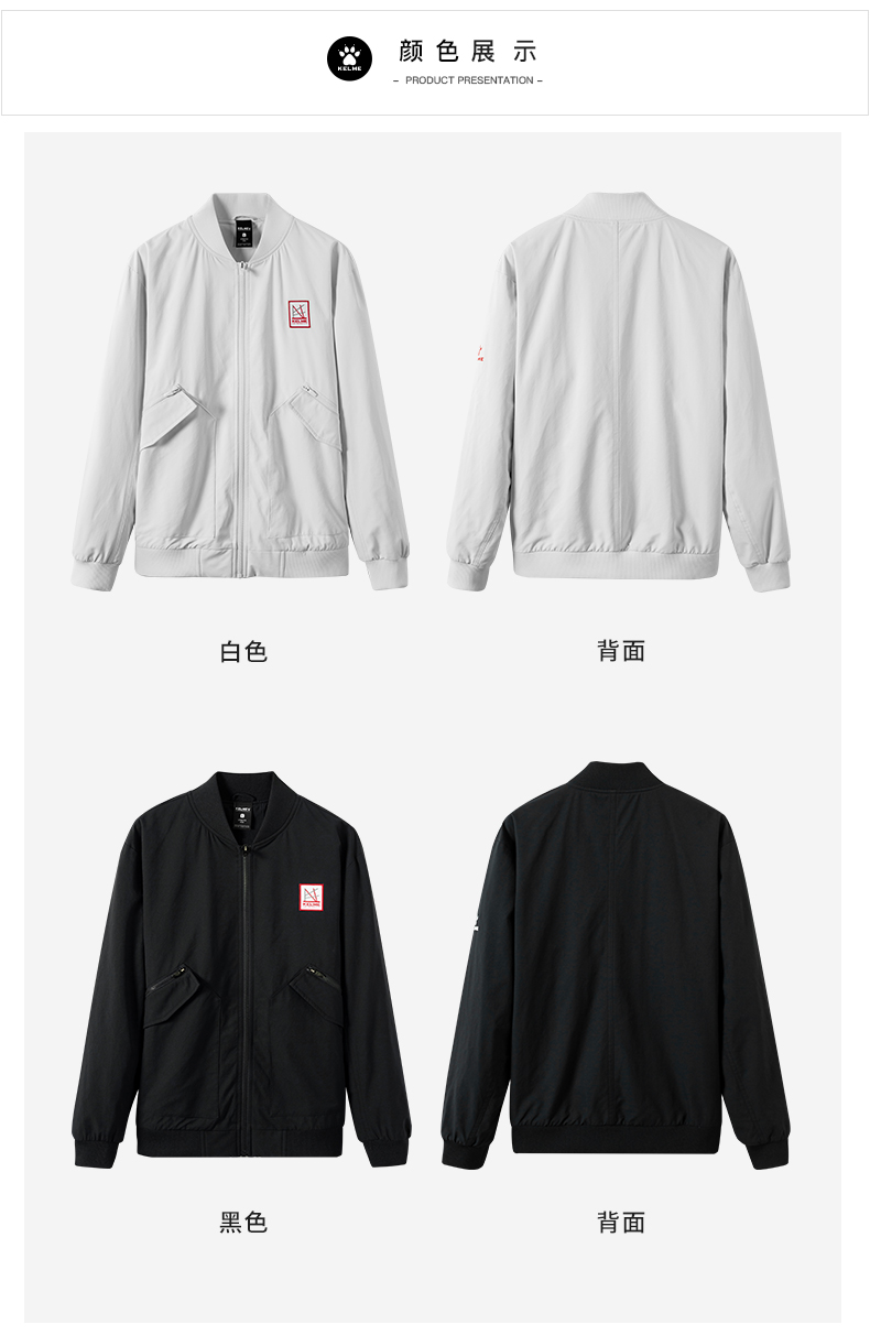 kelme卡尔美运动休闲外套春季新款商务拉链茄克男士立领上衣