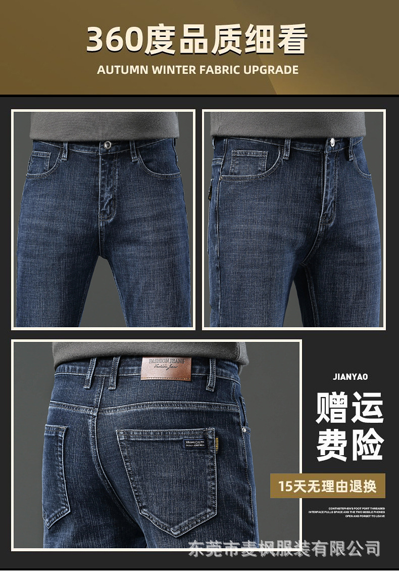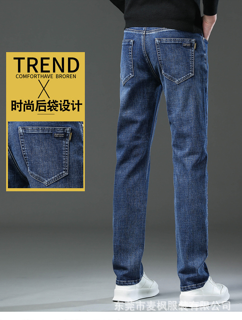 红览 男士牛仔裤春秋高腰直筒长裤338