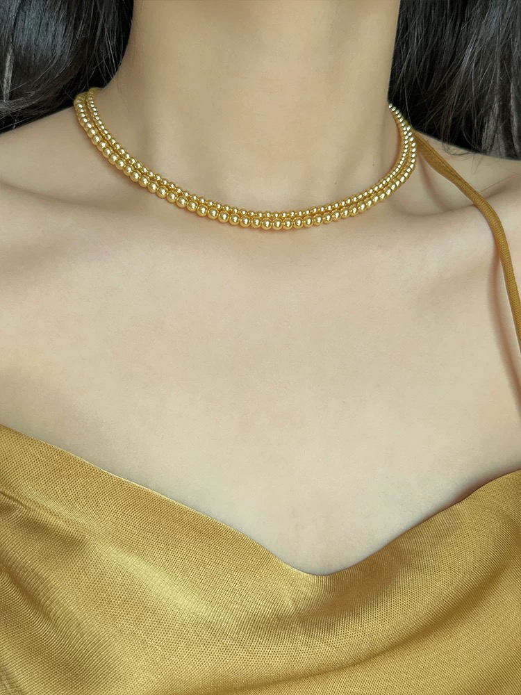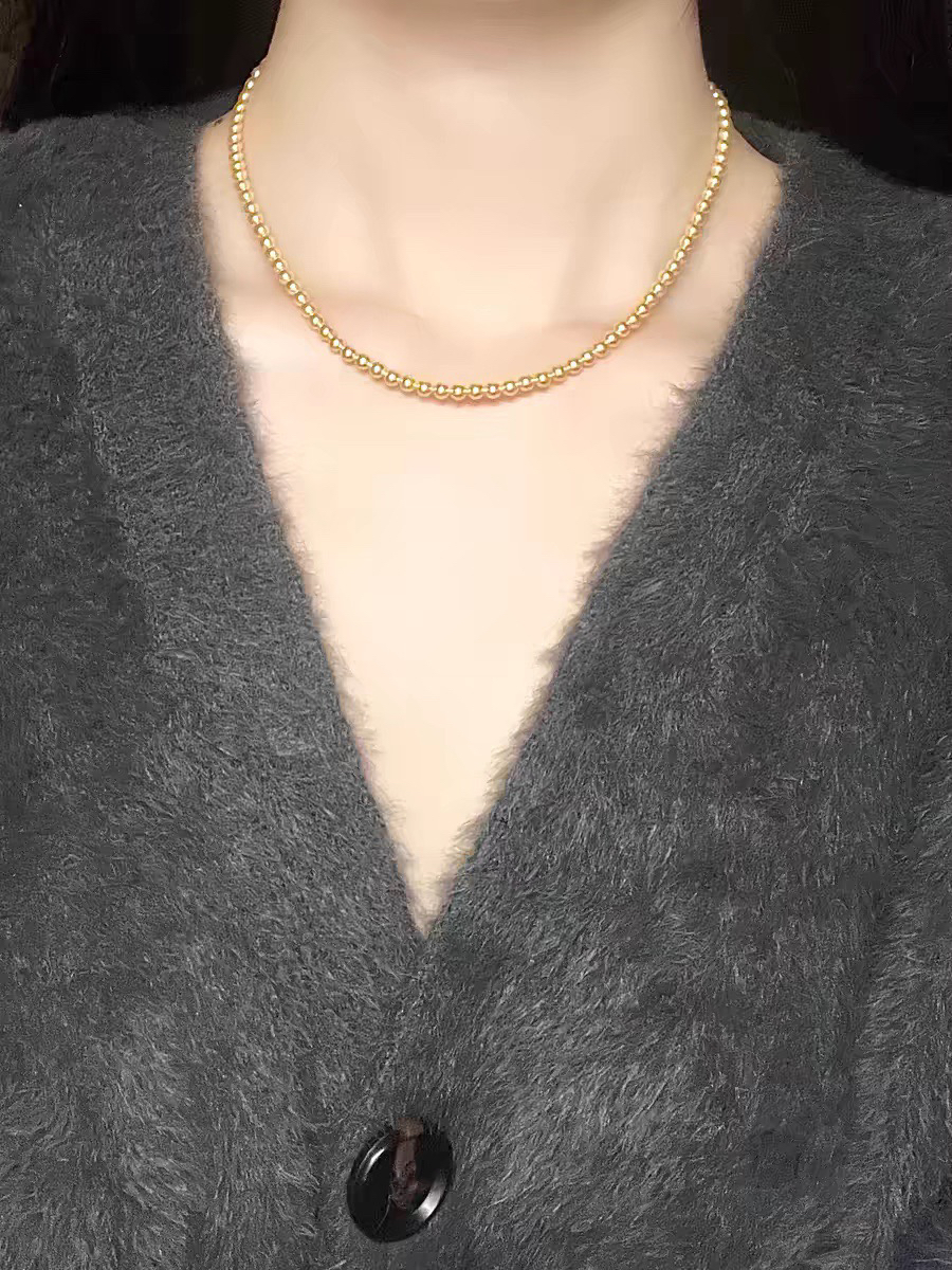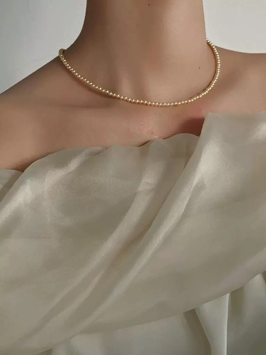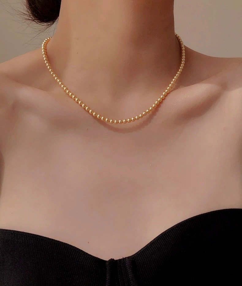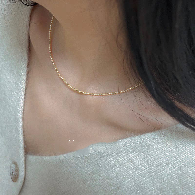 🔺小米粒正圆珍珠项链浅金素链