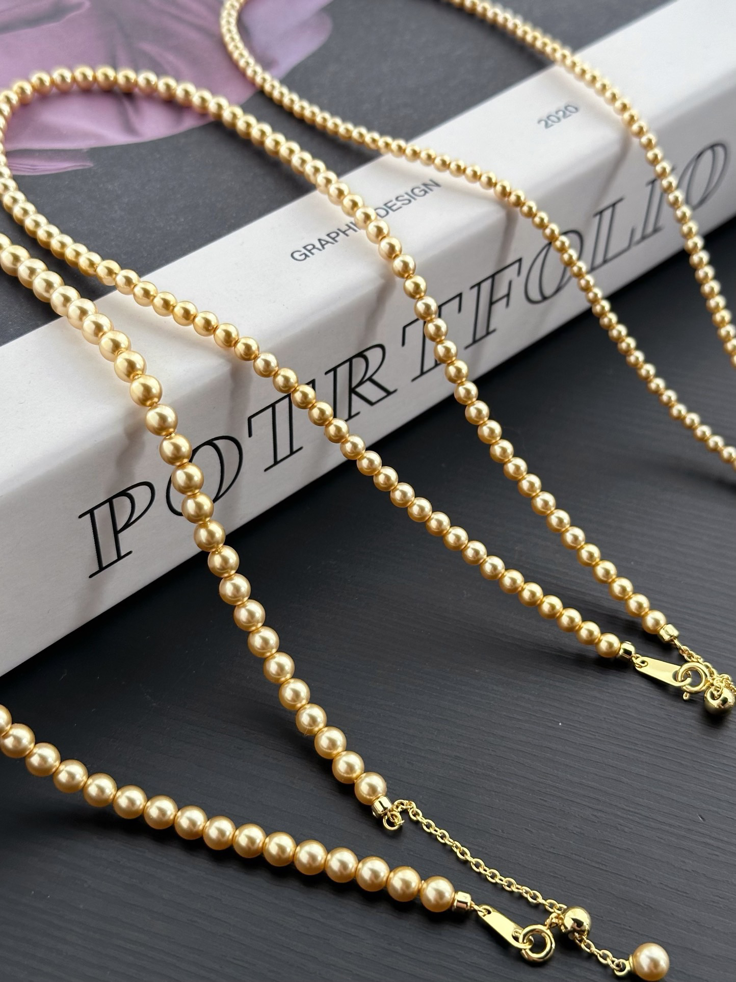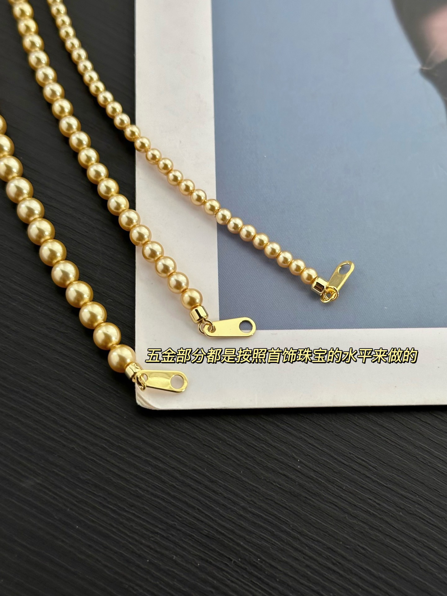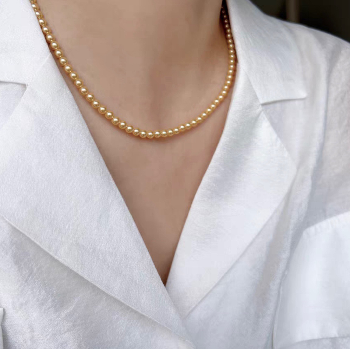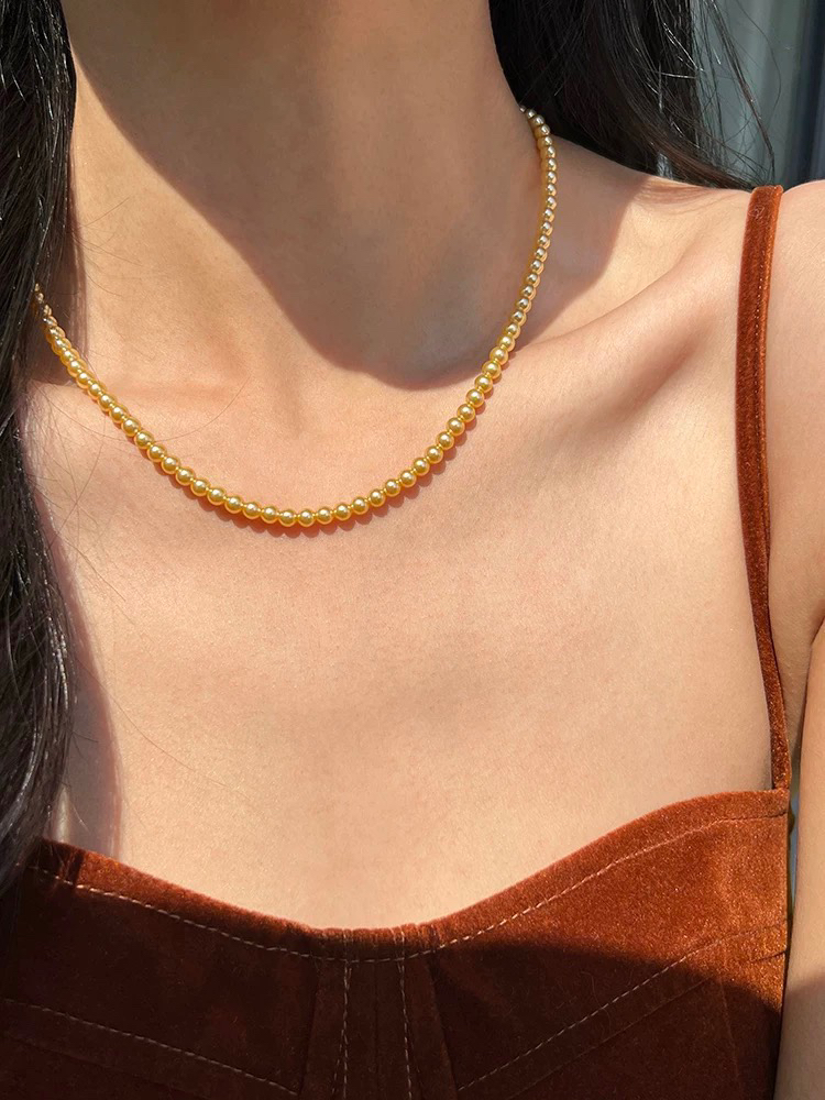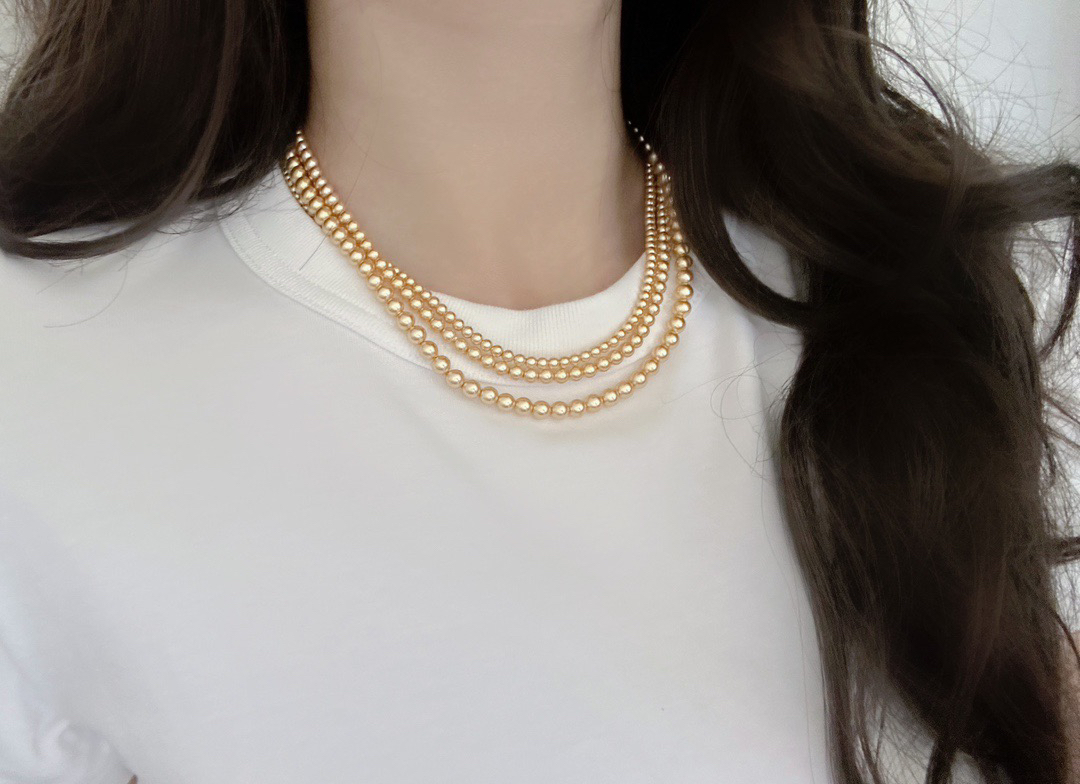 跟我们的三种尺寸的白色珍珠项链是一个工厂的,颜色不同其他都一样哈‼️珍珠又一爆款色浅金色,每次出门戴着就被问炸的款,夏天跟秋冬搭配衣服都绝绝子啊~