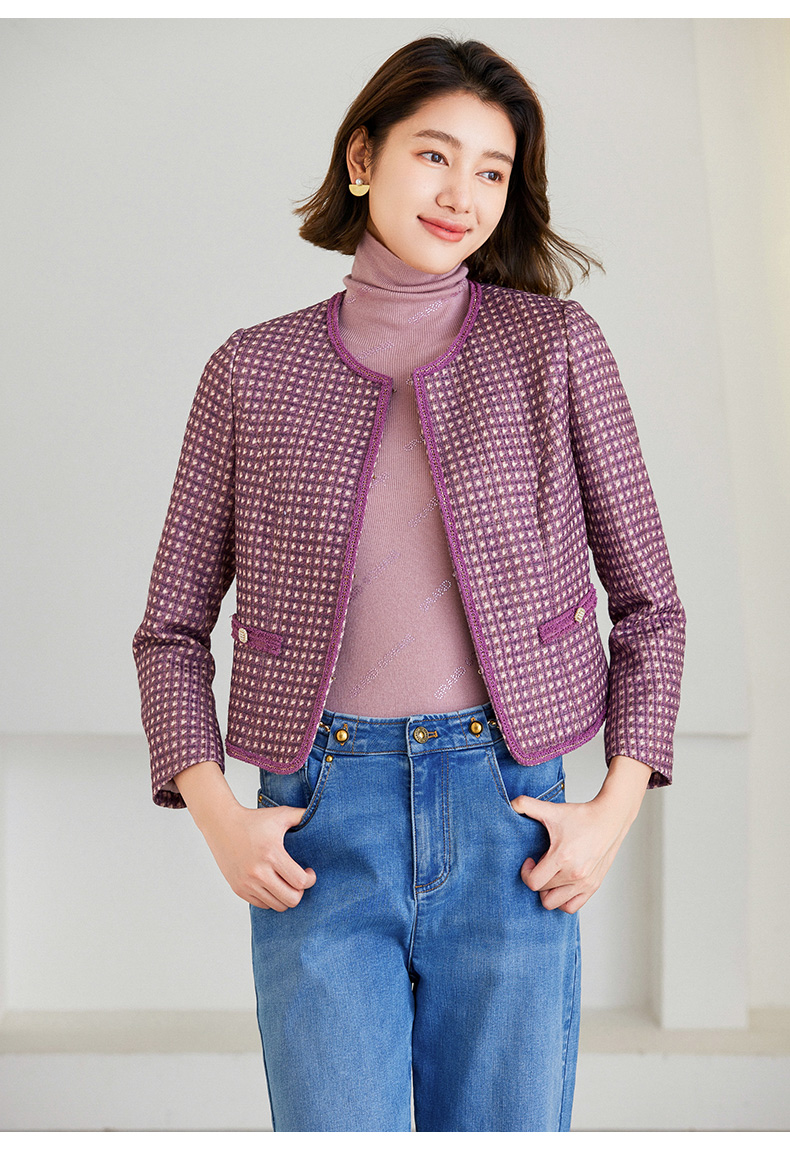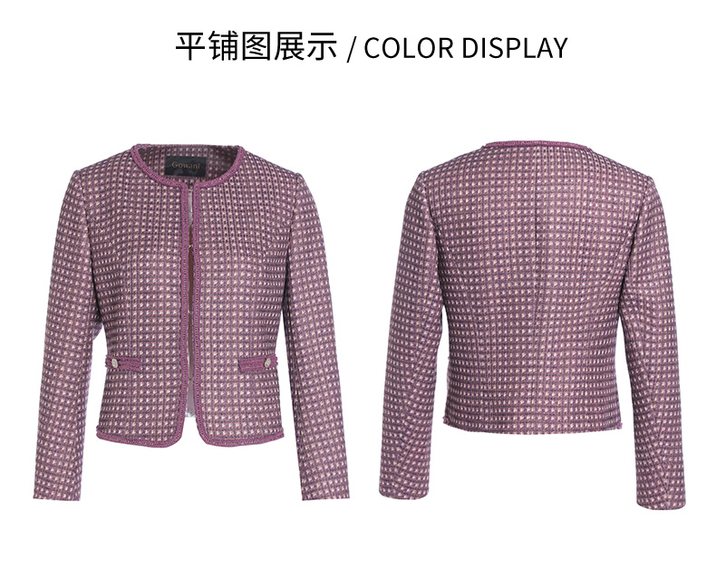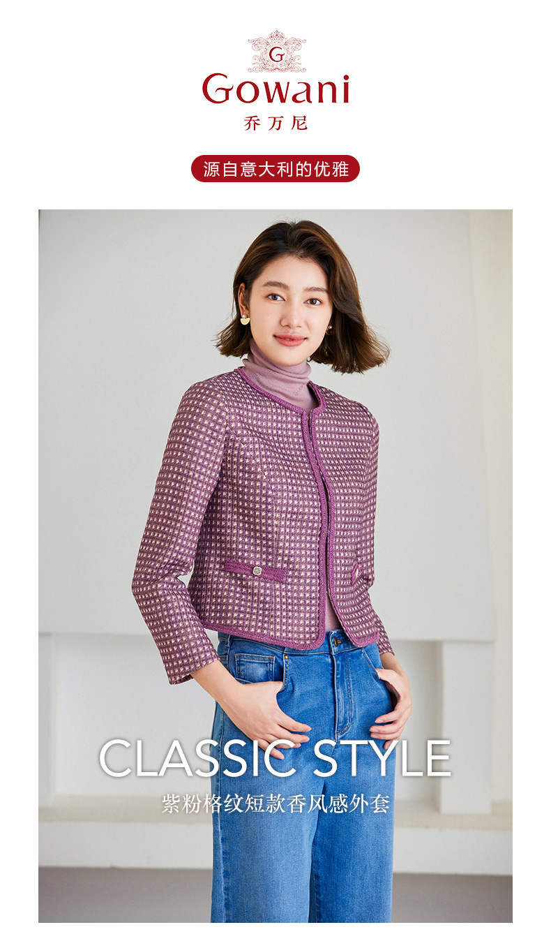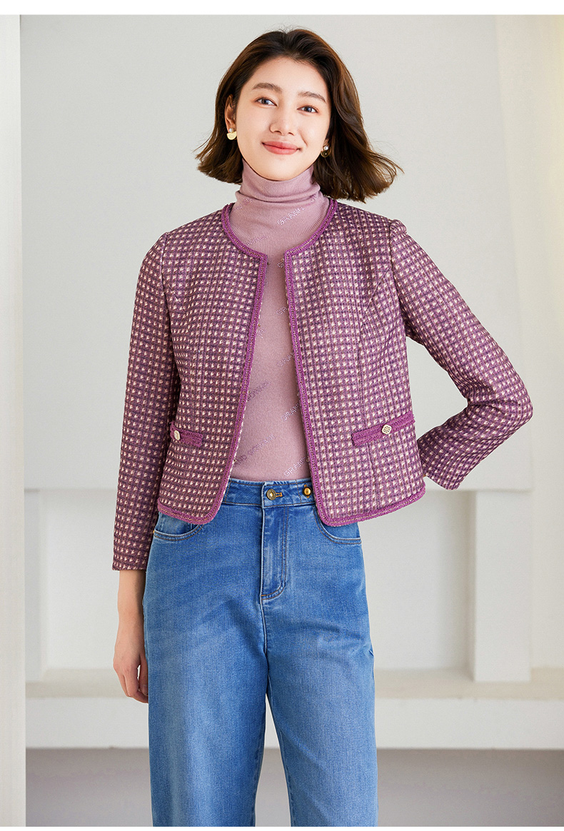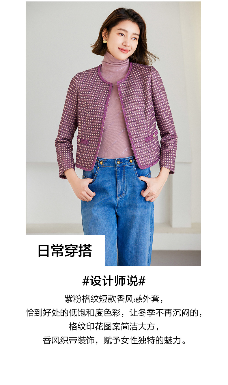 乔万尼冬季新品短外套气质小香风紫粉格纹小个子ET4B919