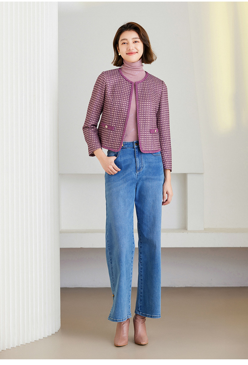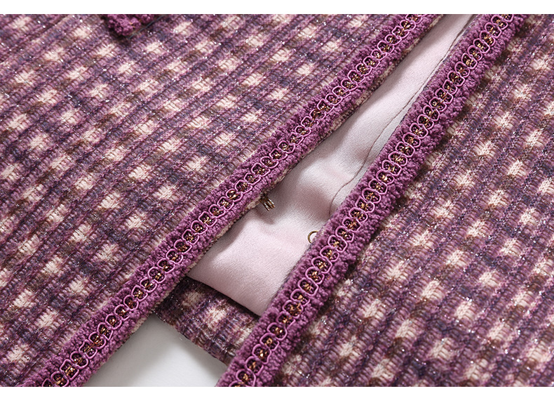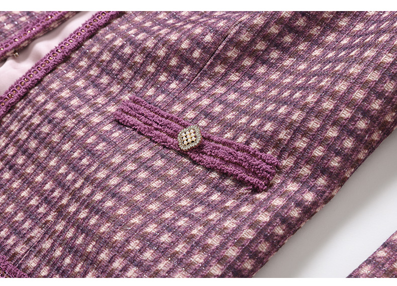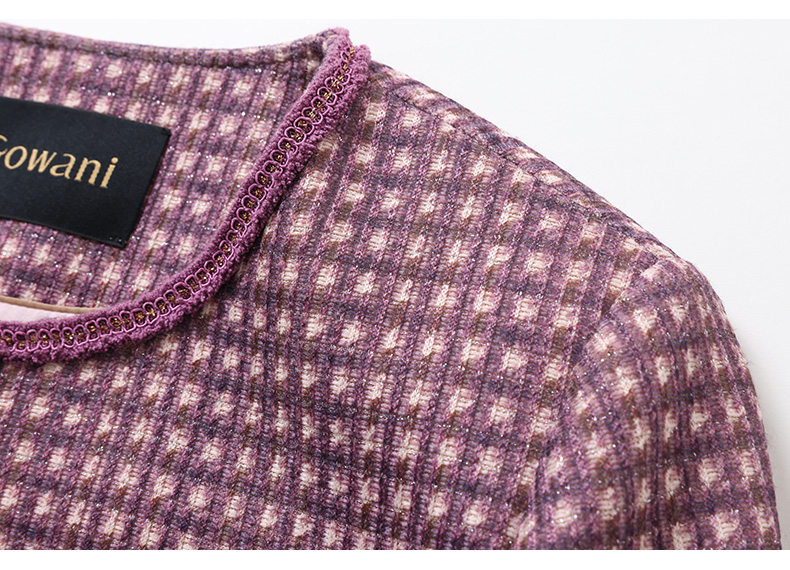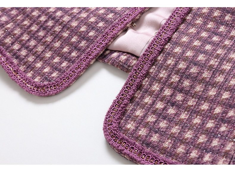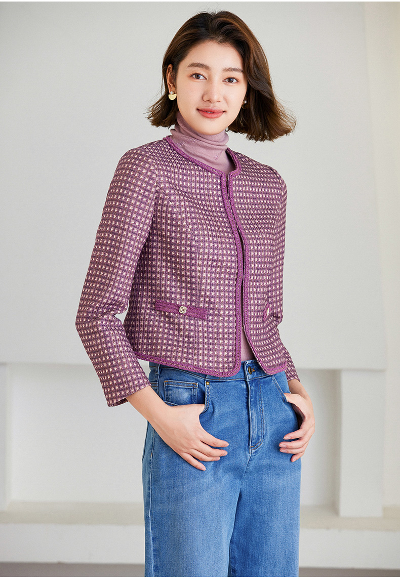 乔万尼冬季新品短外套气质小香风紫粉格纹小个子ET4B919