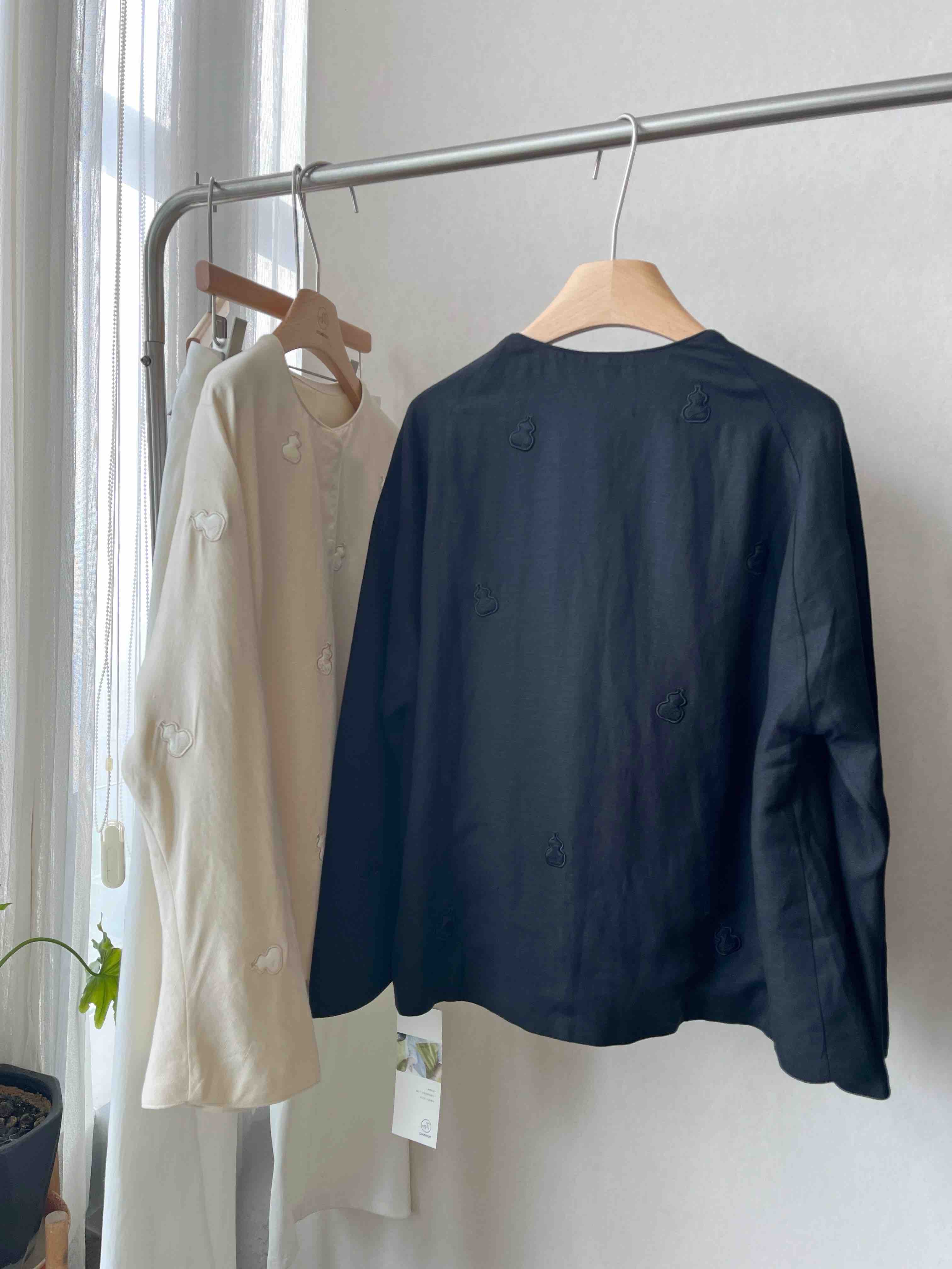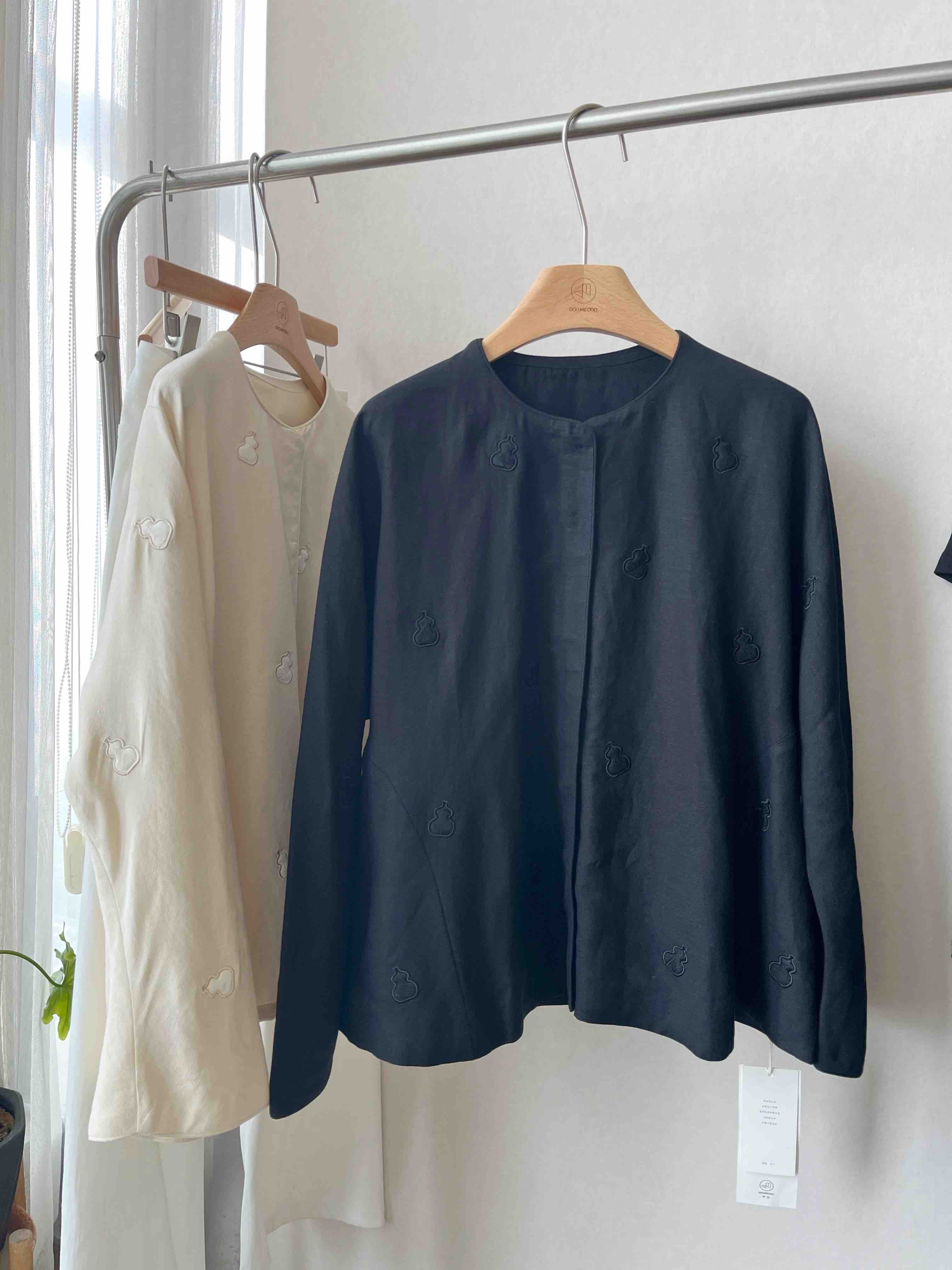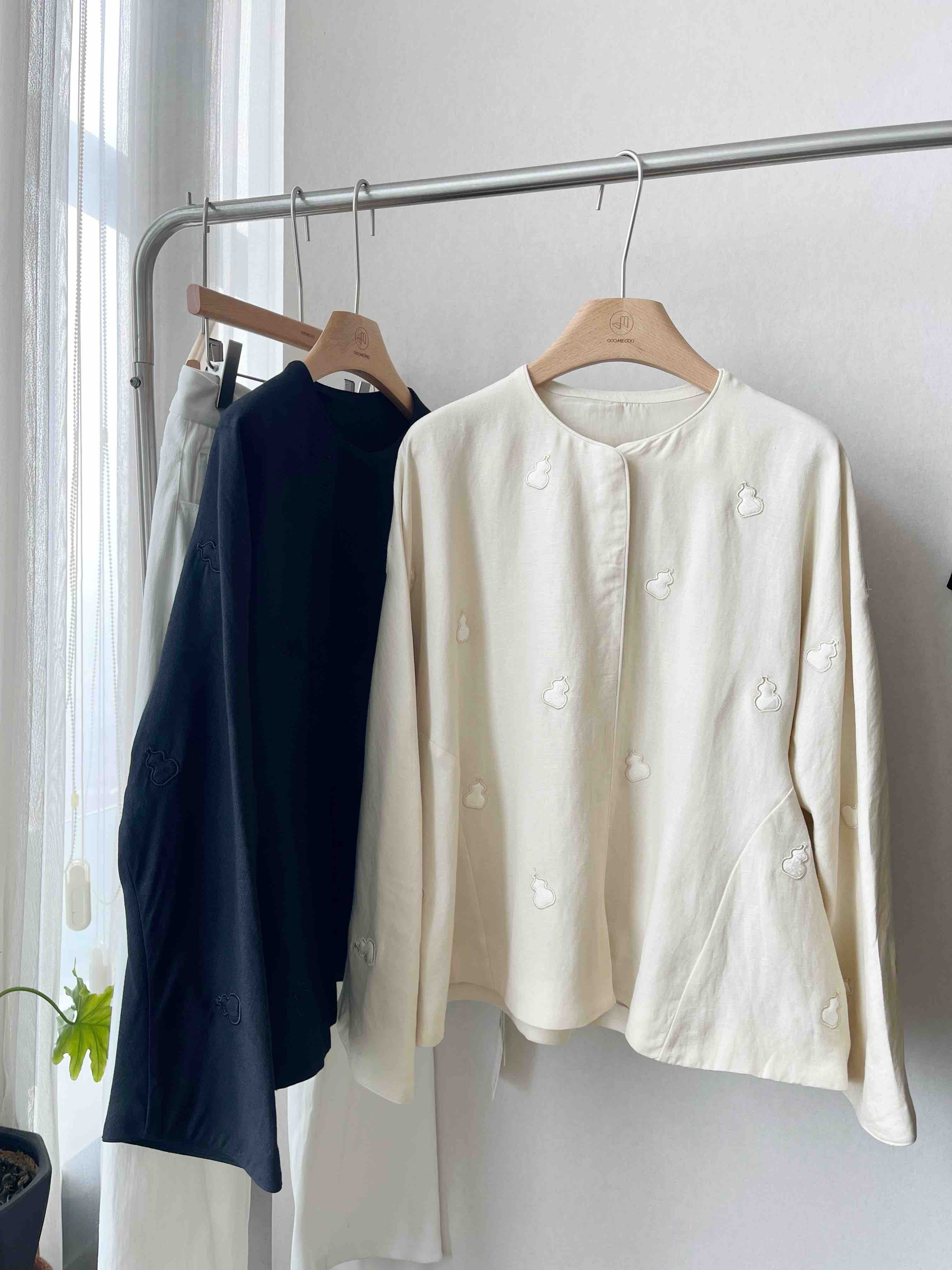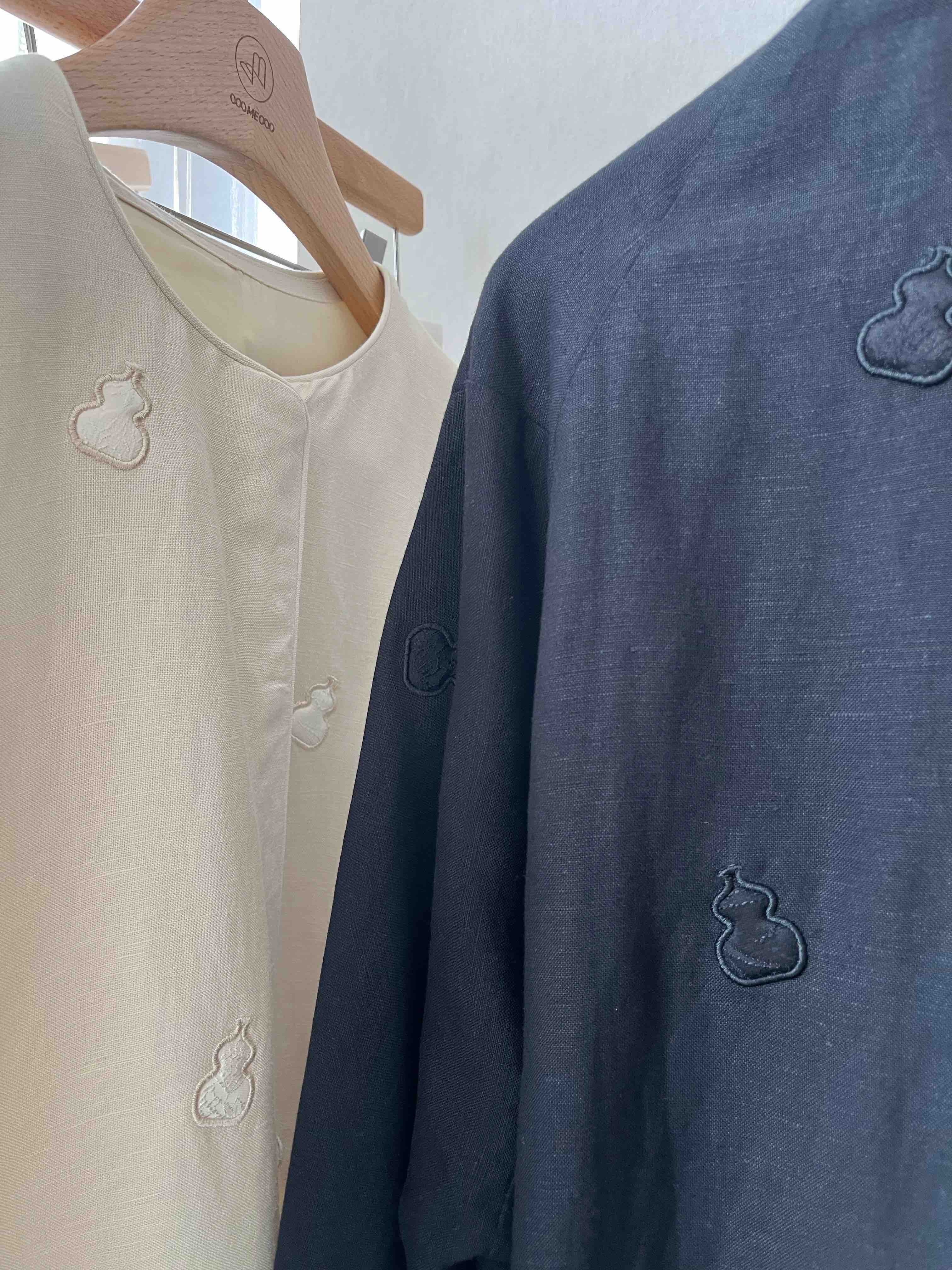 #新中式外套 #葫芦纹刺绣 #丝麻质感 #无领显瘦 #东方福气