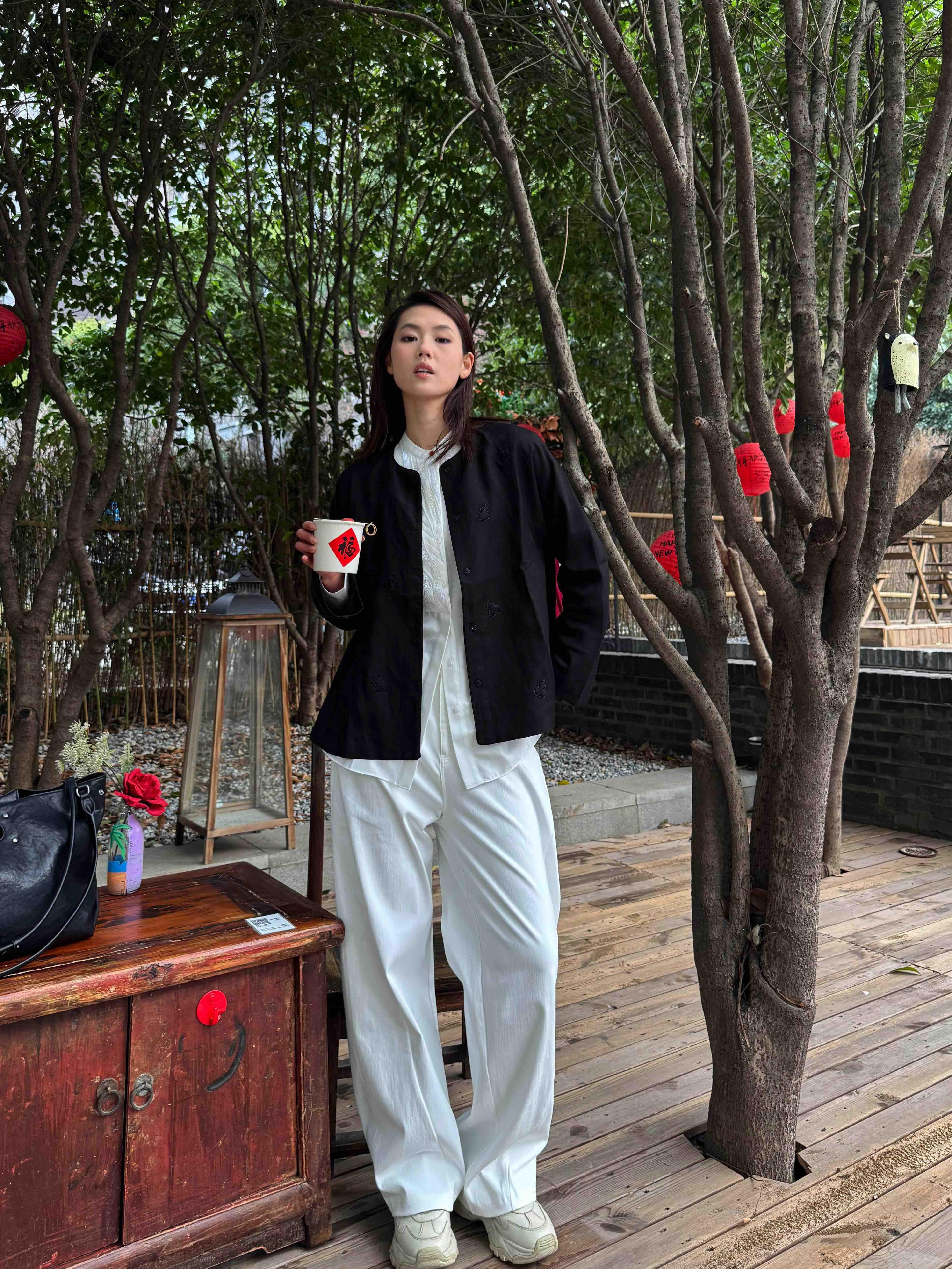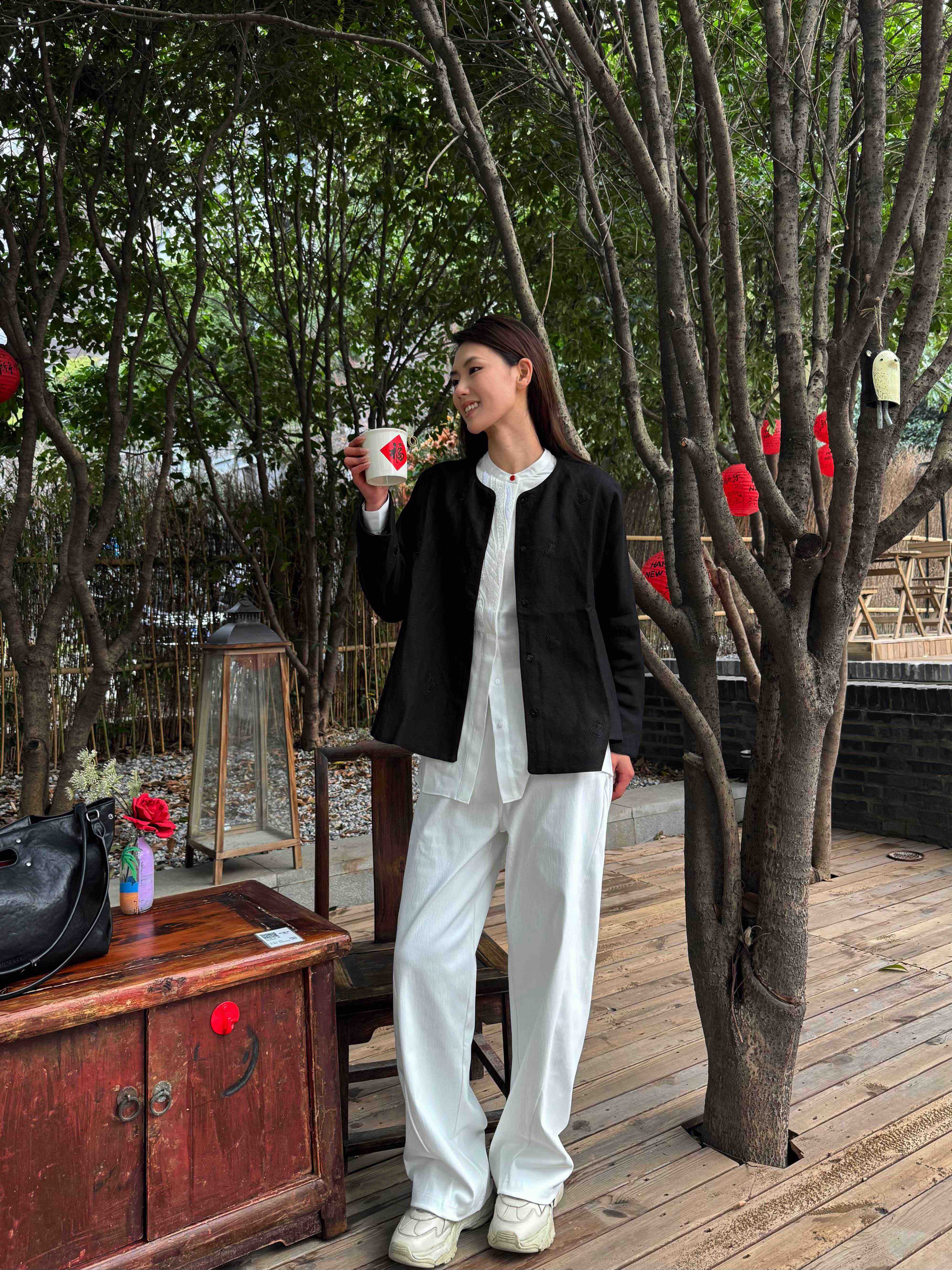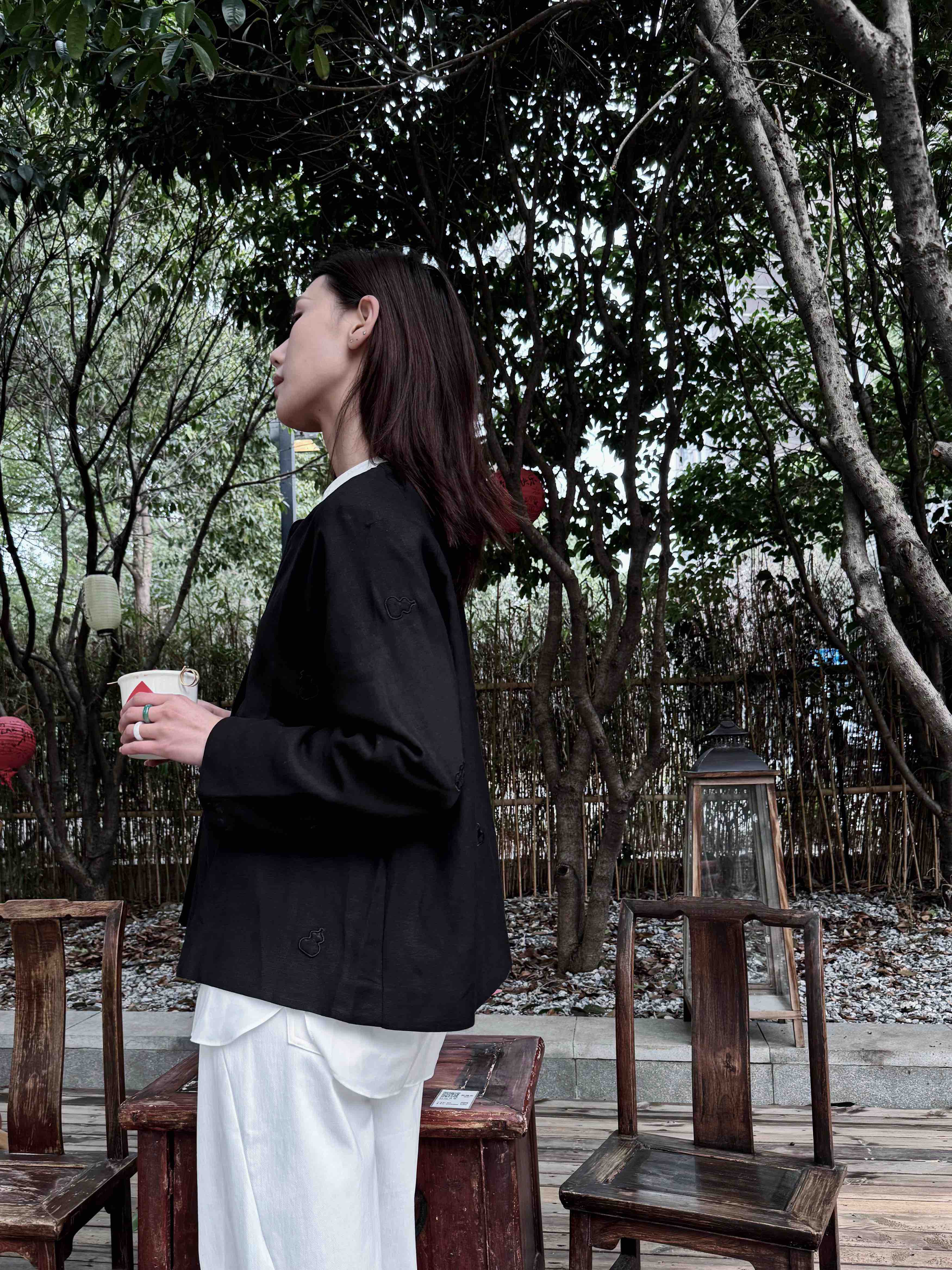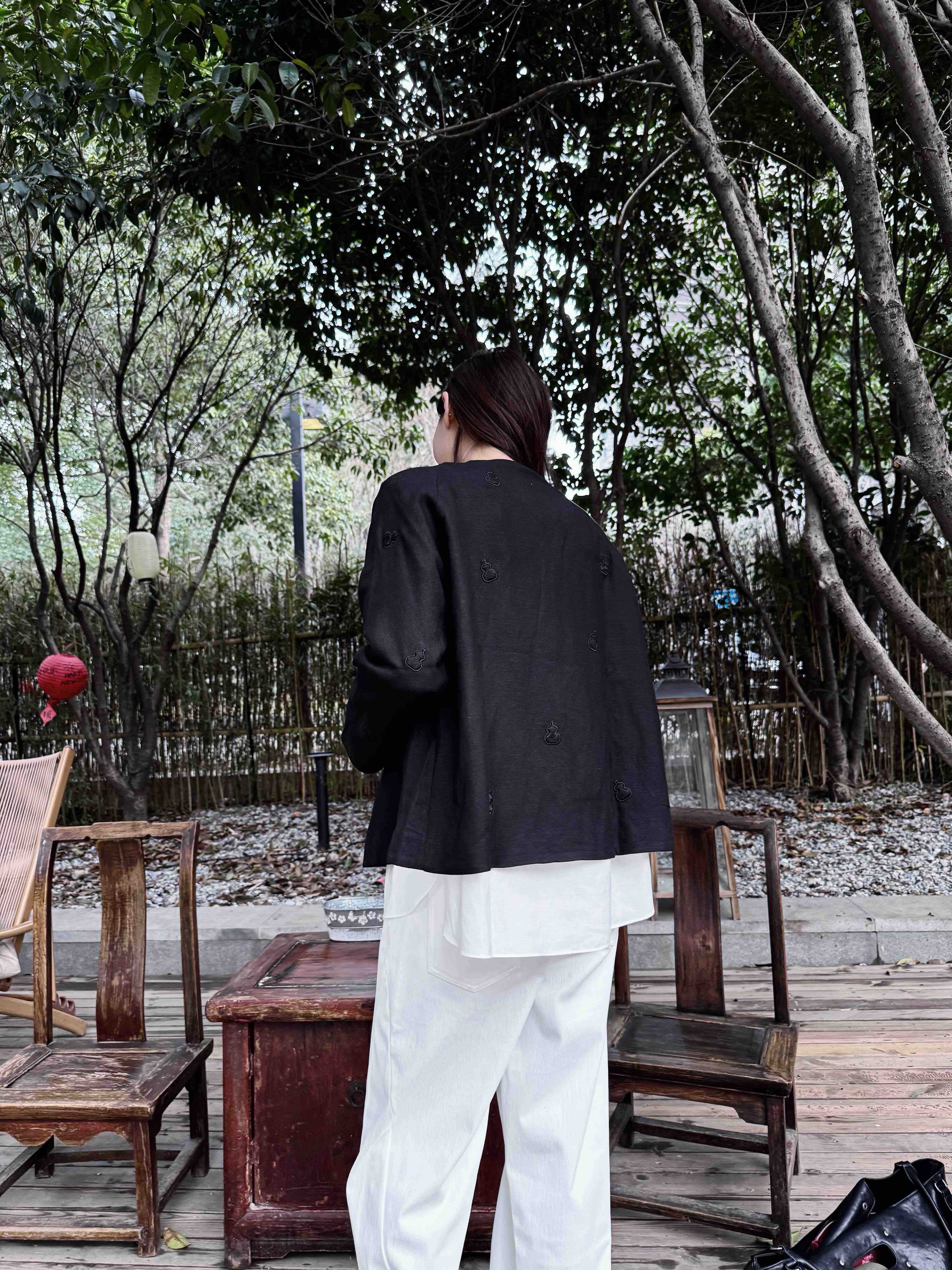 #新中式外套 #葫芦纹刺绣 #丝麻质感 #无领显瘦 #东方福气