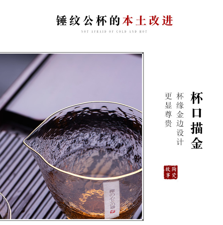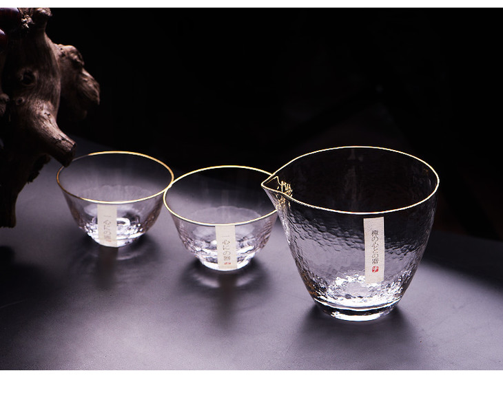 公道杯-玻璃公道杯-锤纹描金公道杯