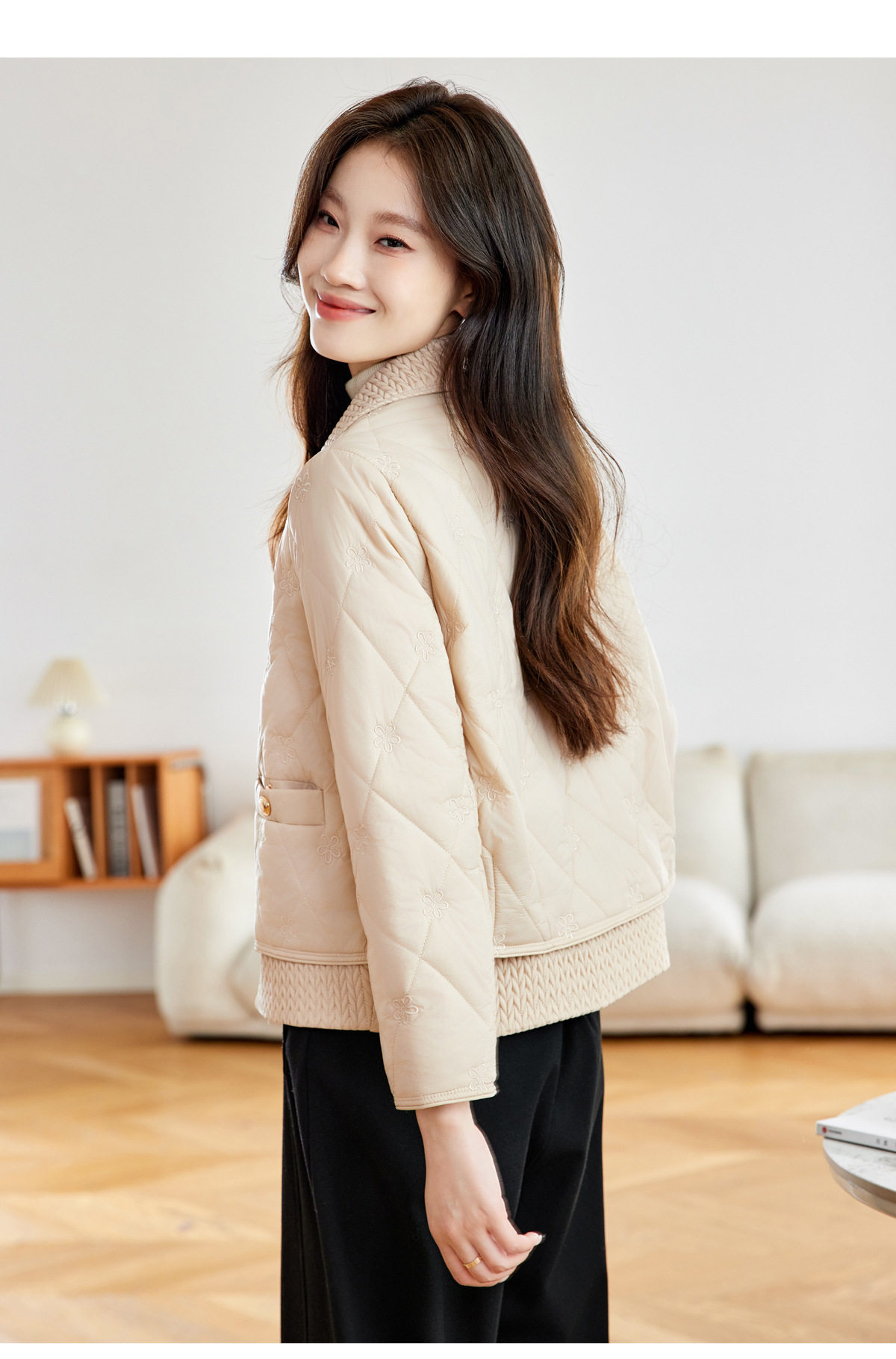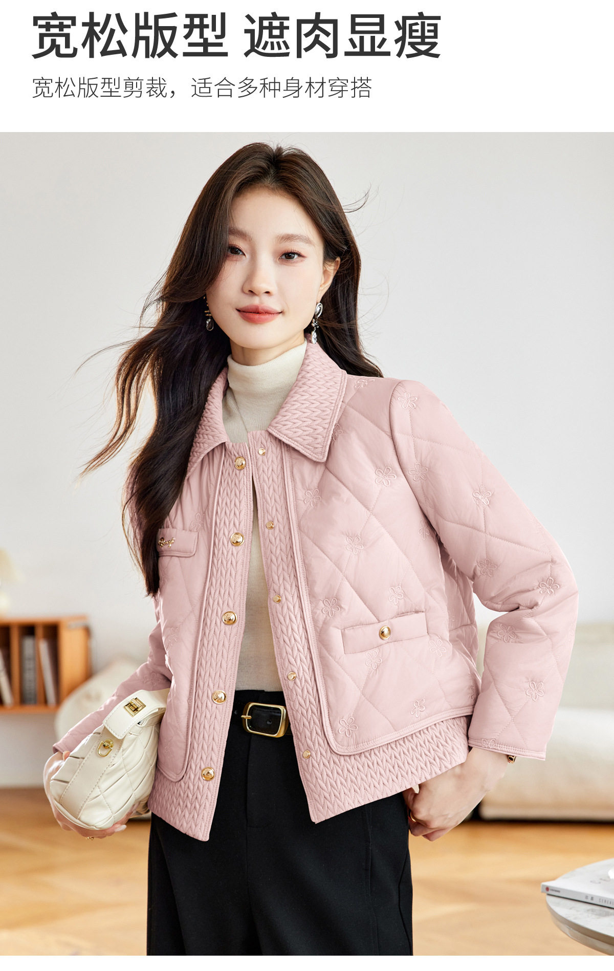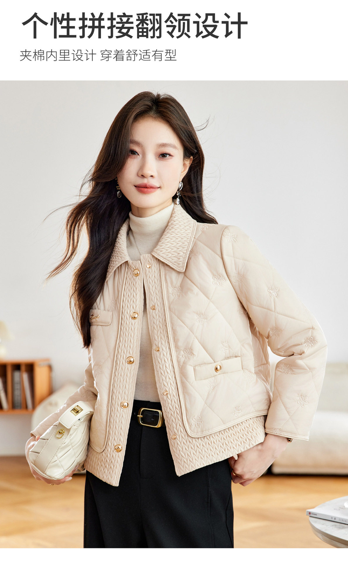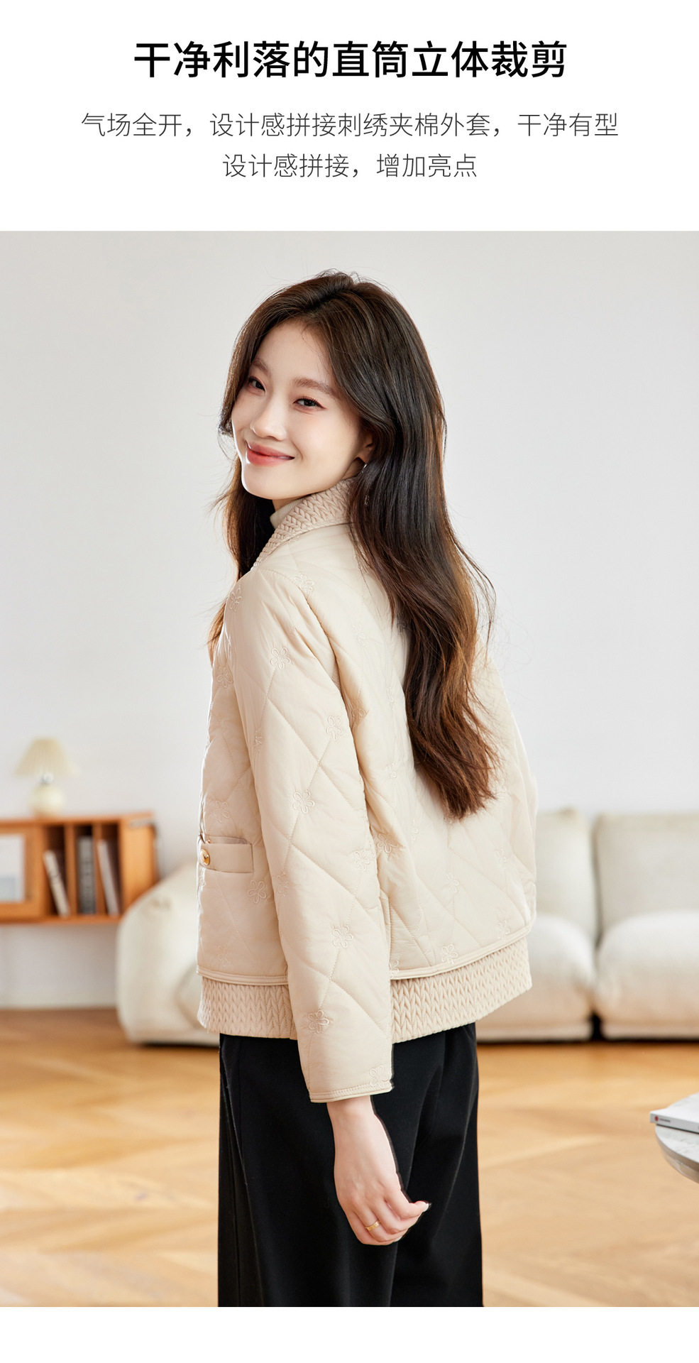 「自」全新升级【铂金会员312/天猫419/差价107】(03133)洛诗琳气质翻领绣花小香风外套2025冬季新款显瘦夹棉保暖短外套