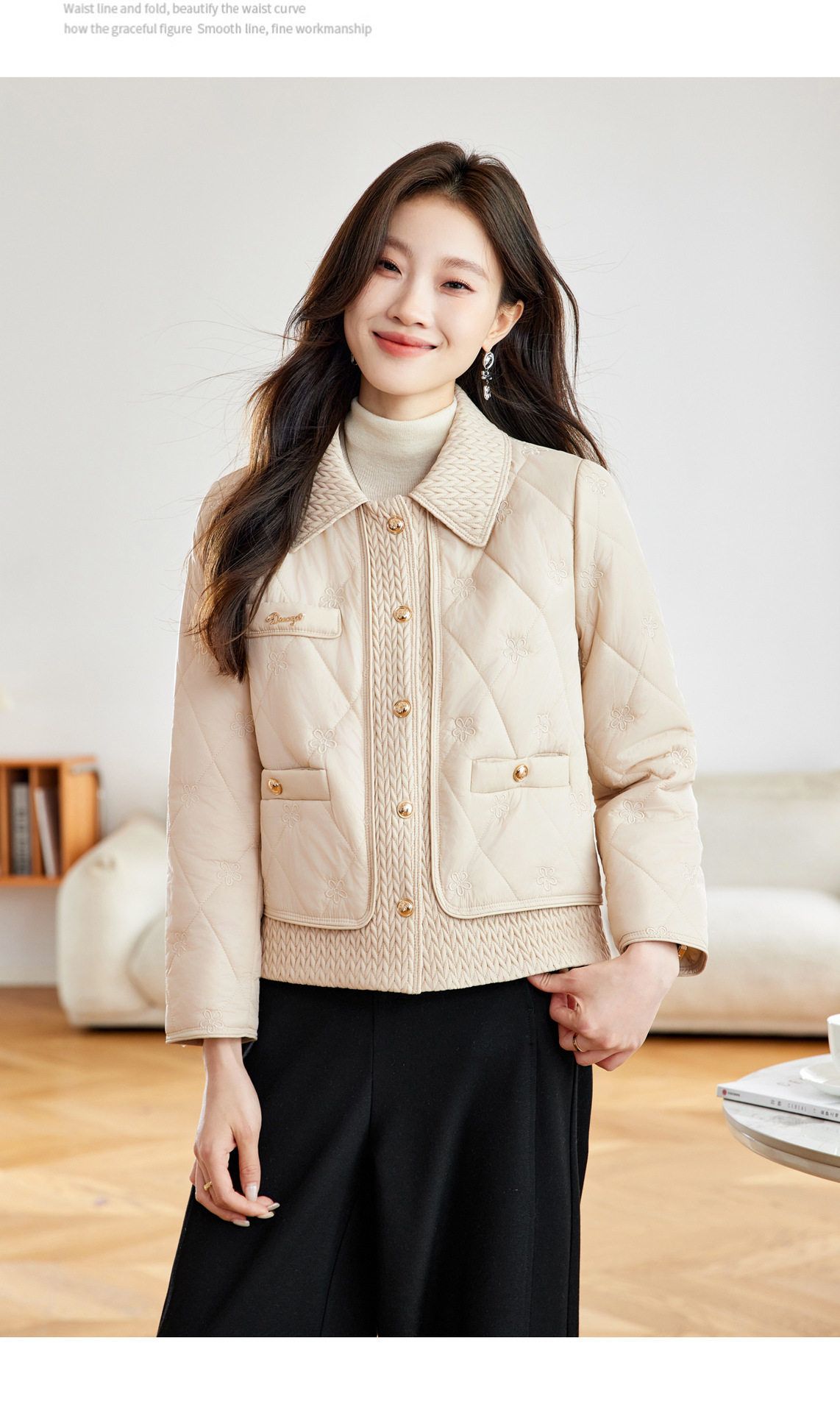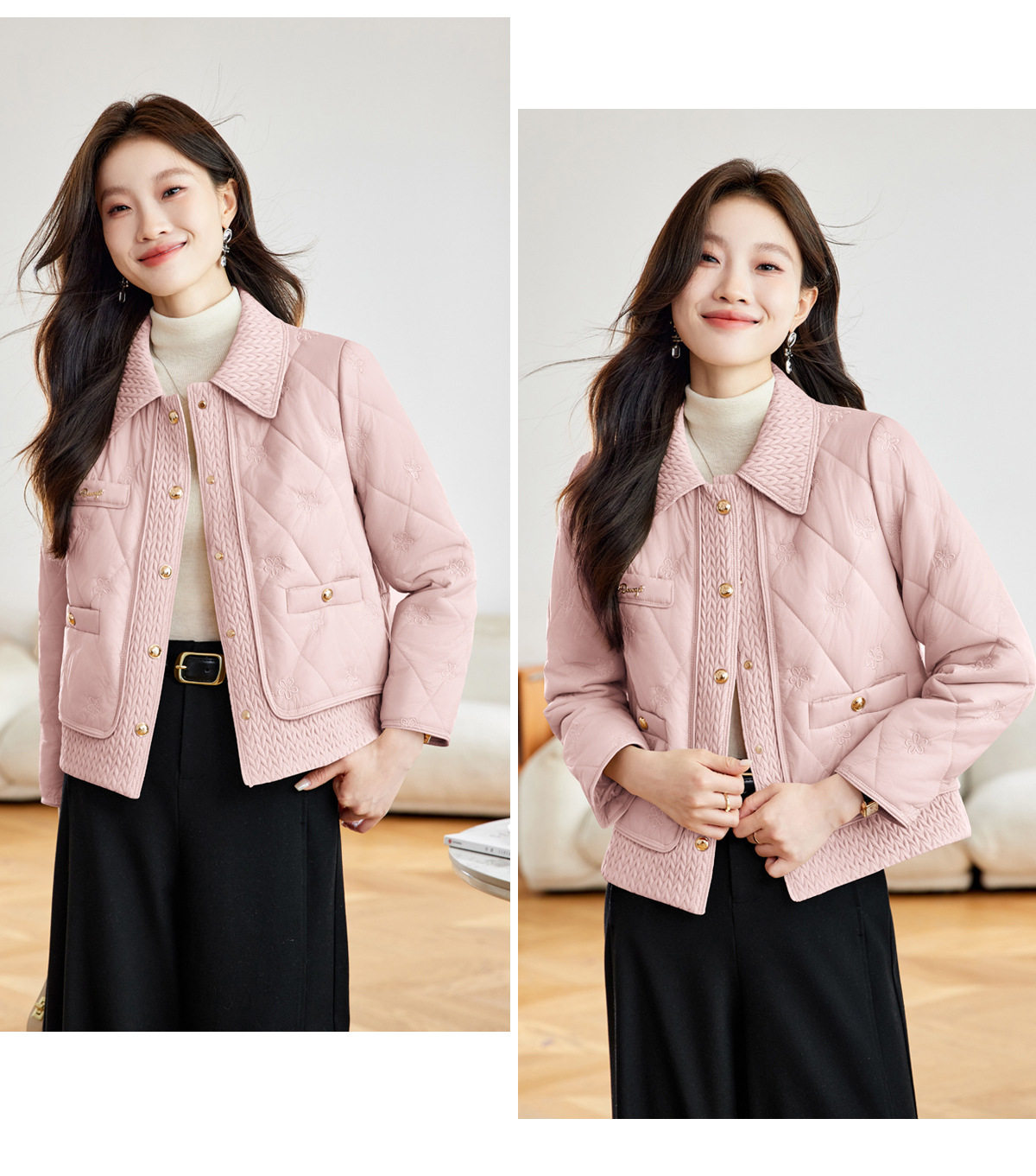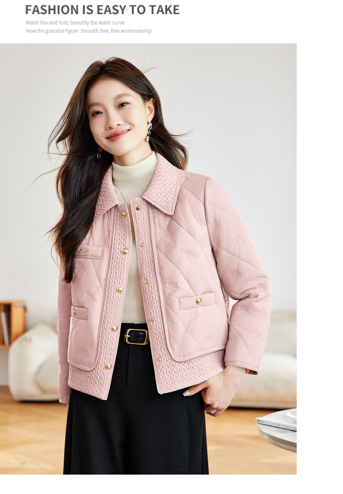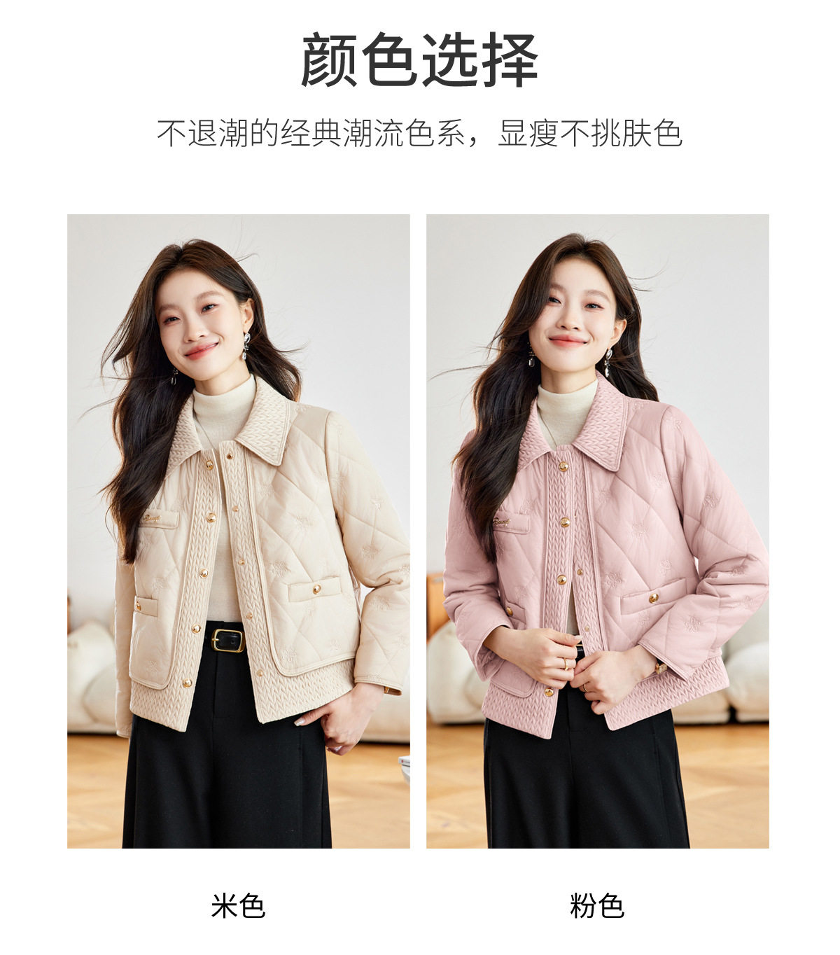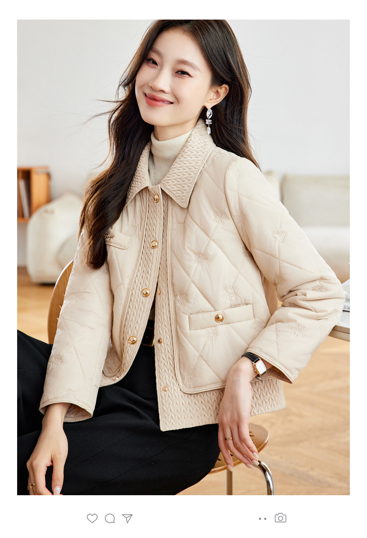 「自」全新升级【铂金会员312/天猫419/差价107】(03133)洛诗琳气质翻领绣花小香风外套2025冬季新款显瘦夹棉保暖短外套