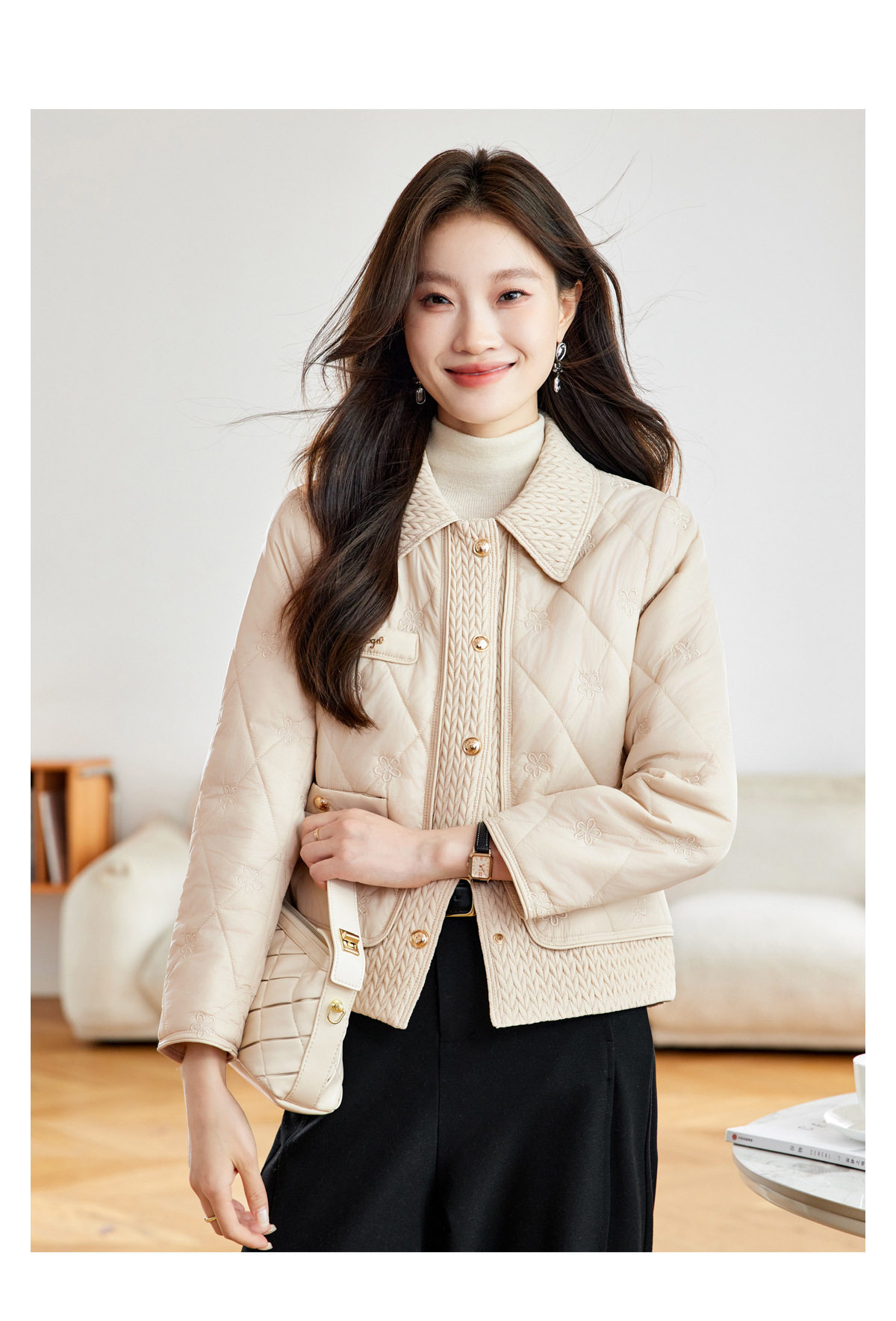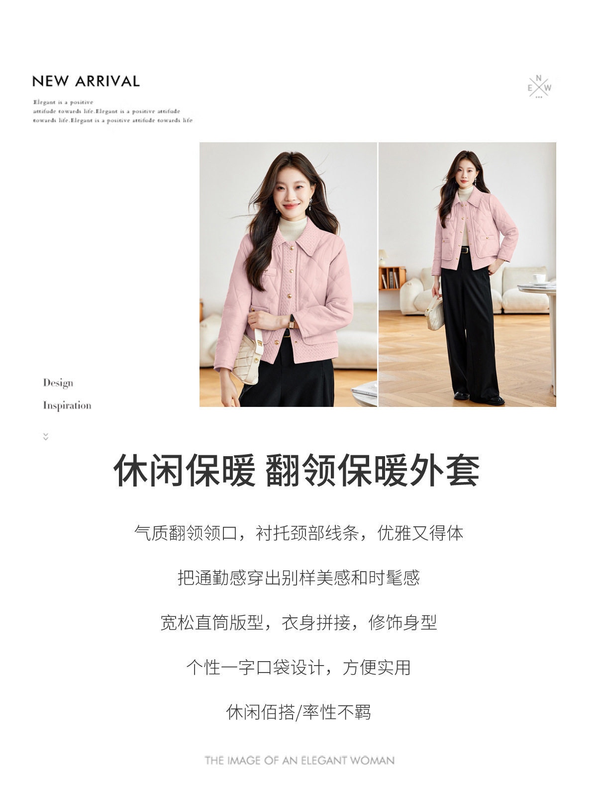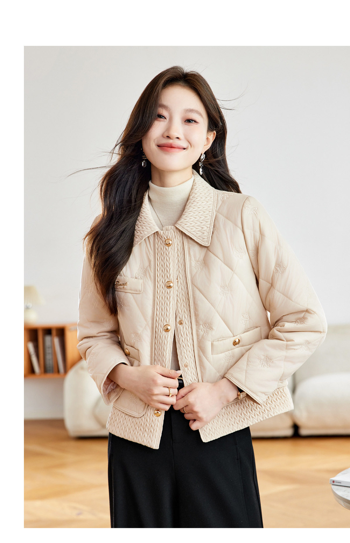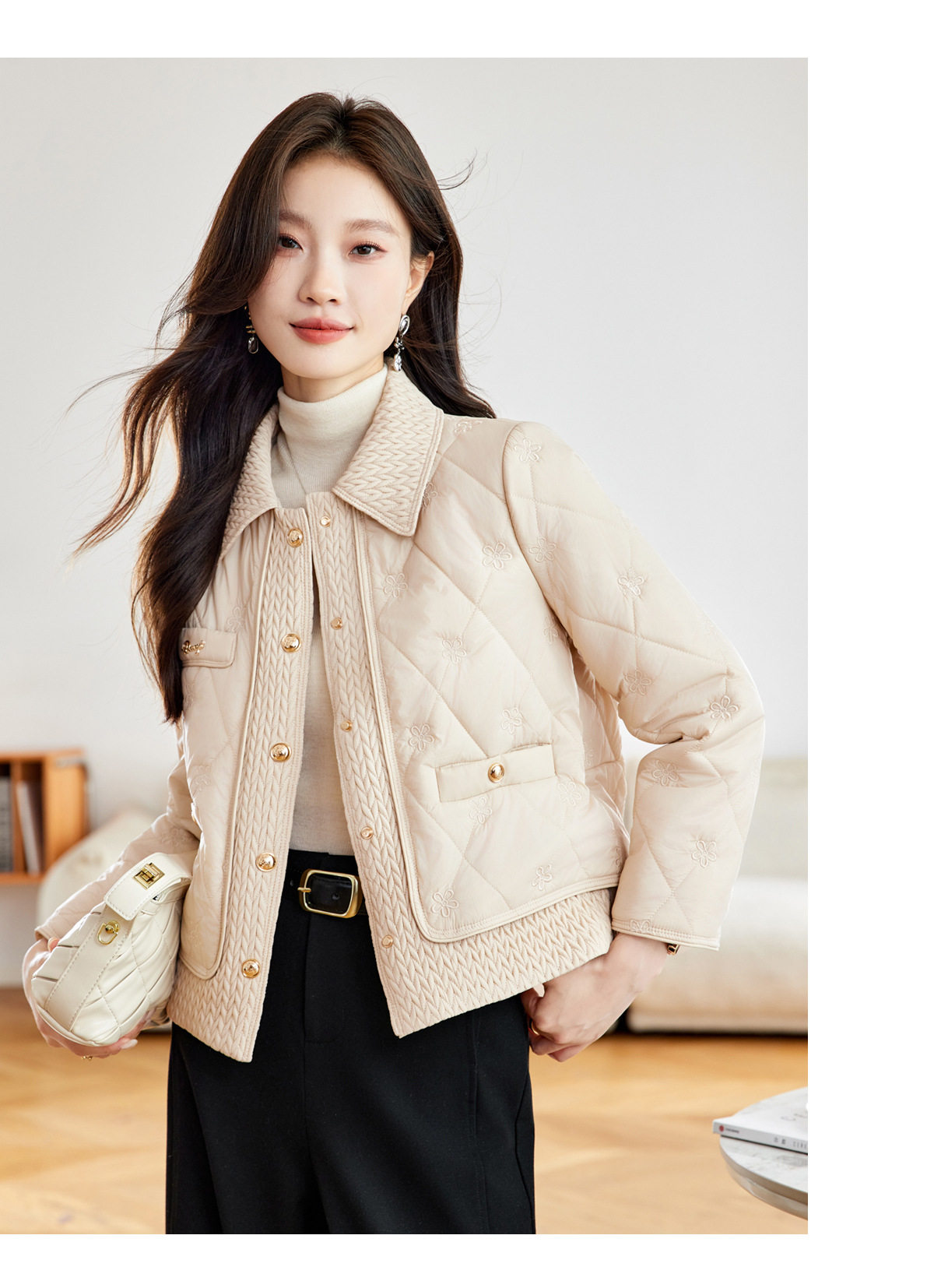「自」全新升级【铂金会员312/天猫419/差价107】(03133)洛诗琳气质翻领绣花小香风外套2025冬季新款显瘦夹棉保暖短外套
