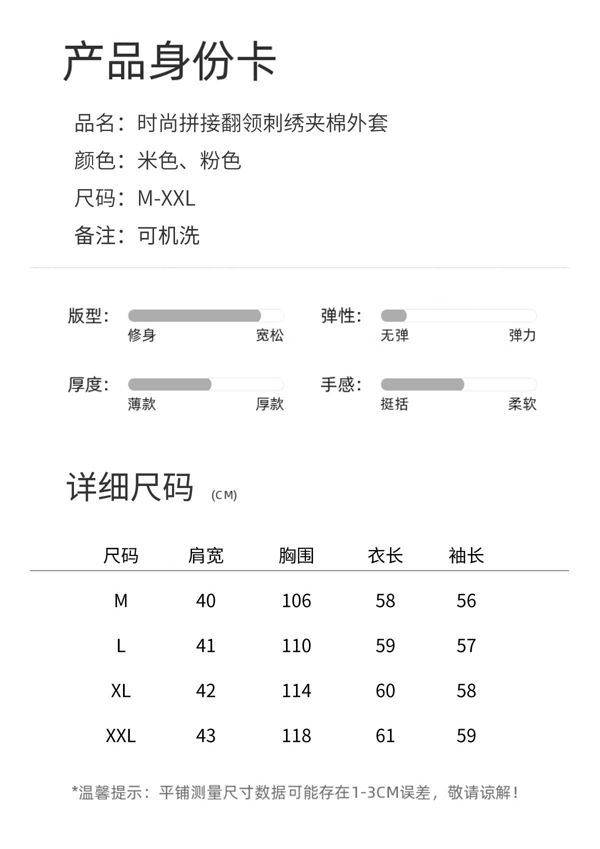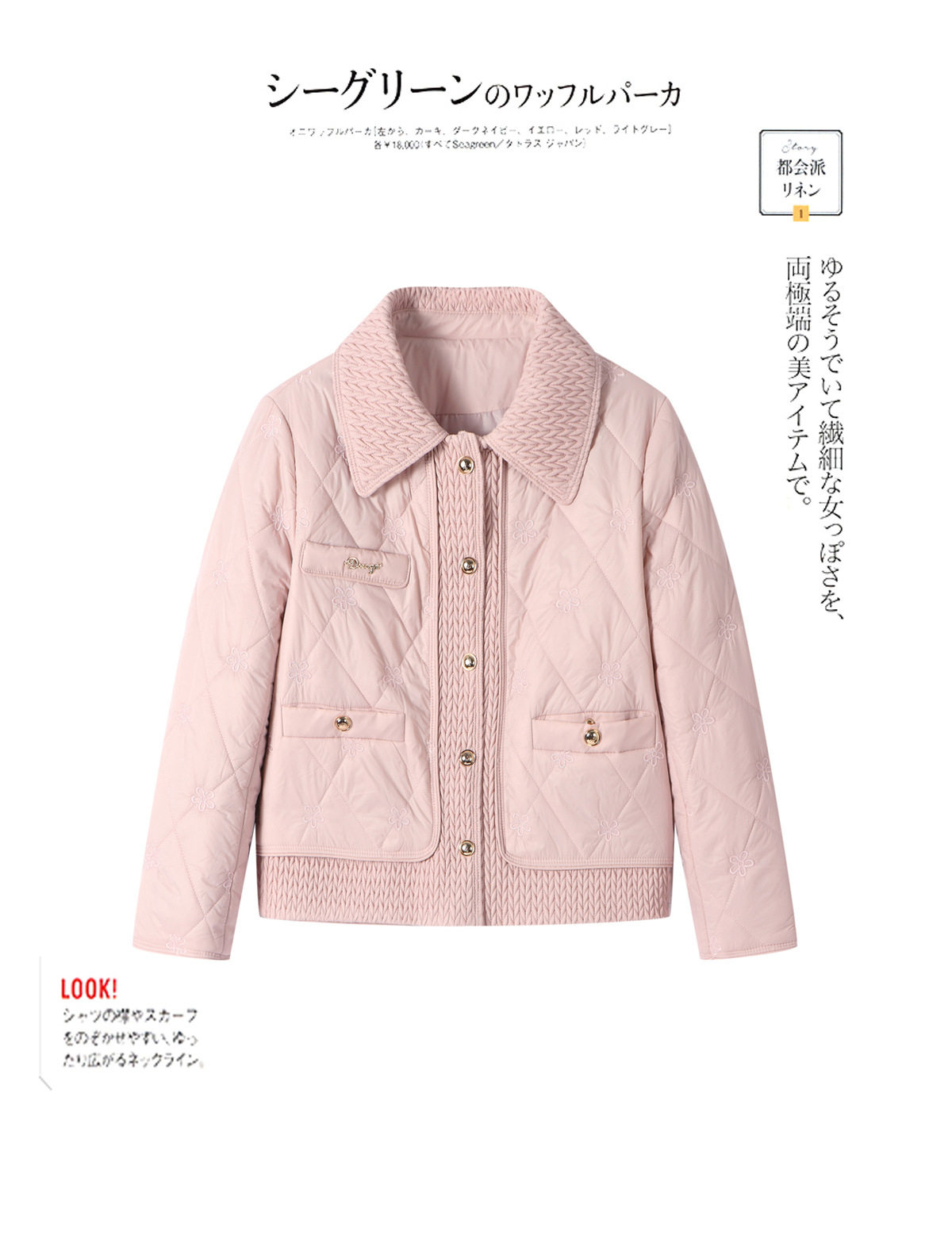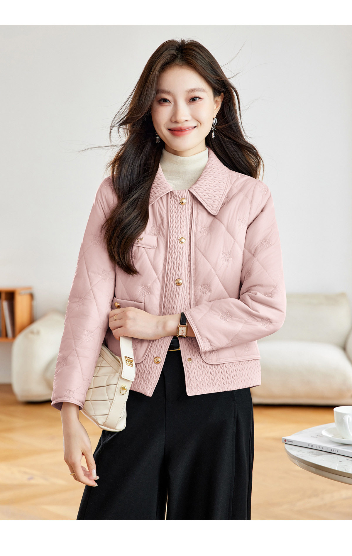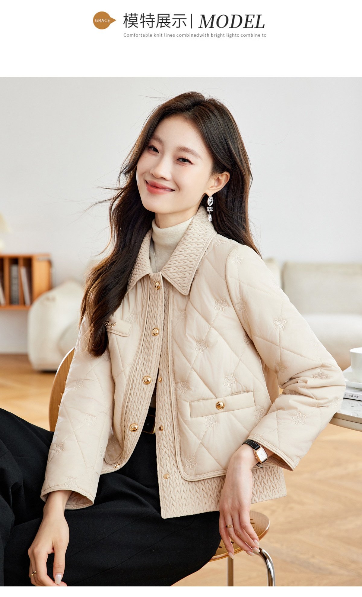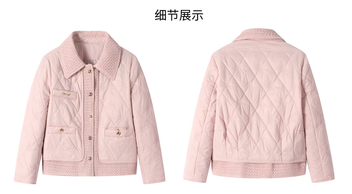 「自」全新升级【铂金会员312/天猫419/差价107】(03133)洛诗琳气质翻领绣花小香风外套2025冬季新款显瘦夹棉保暖短外套