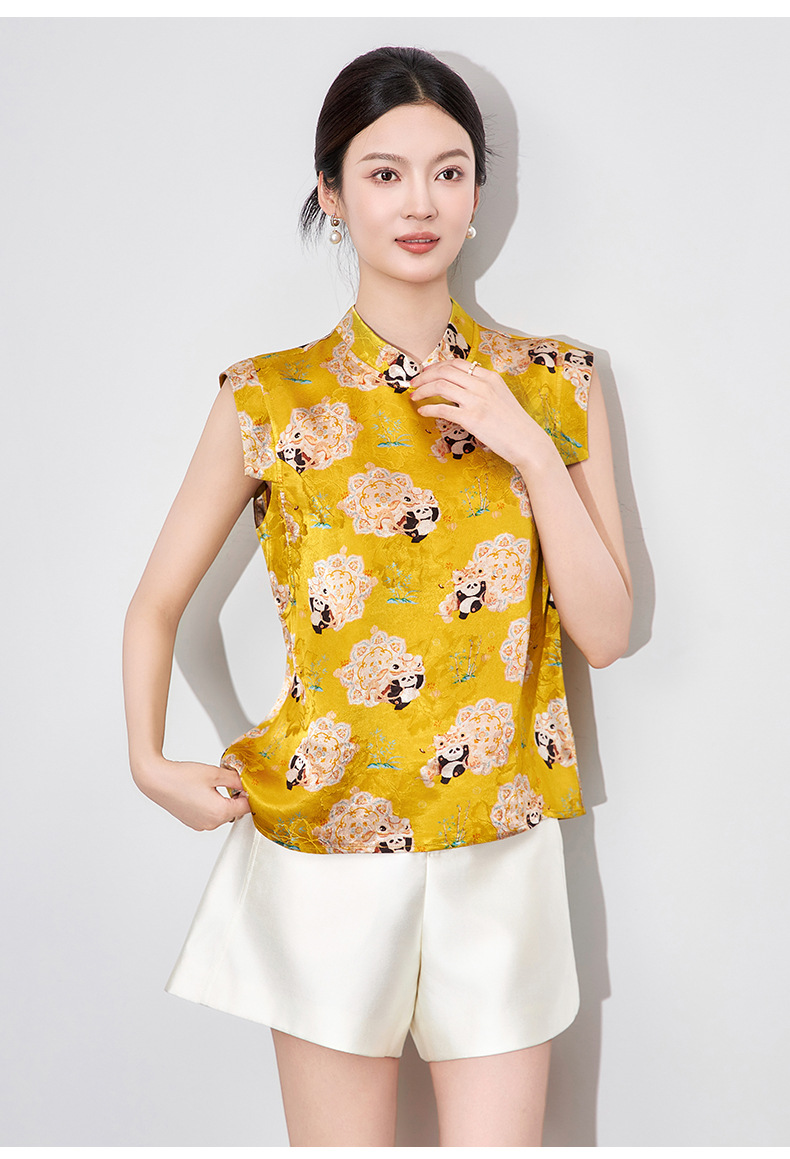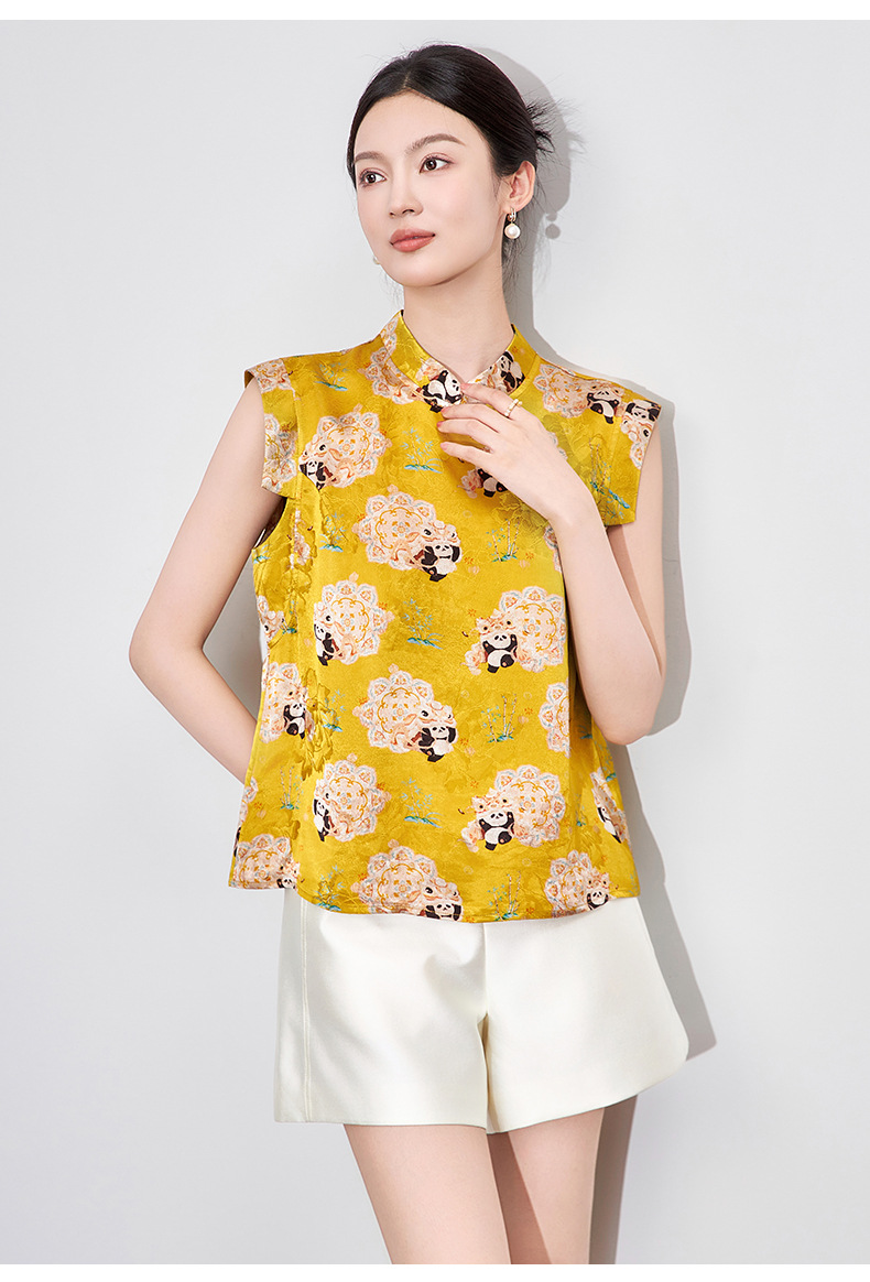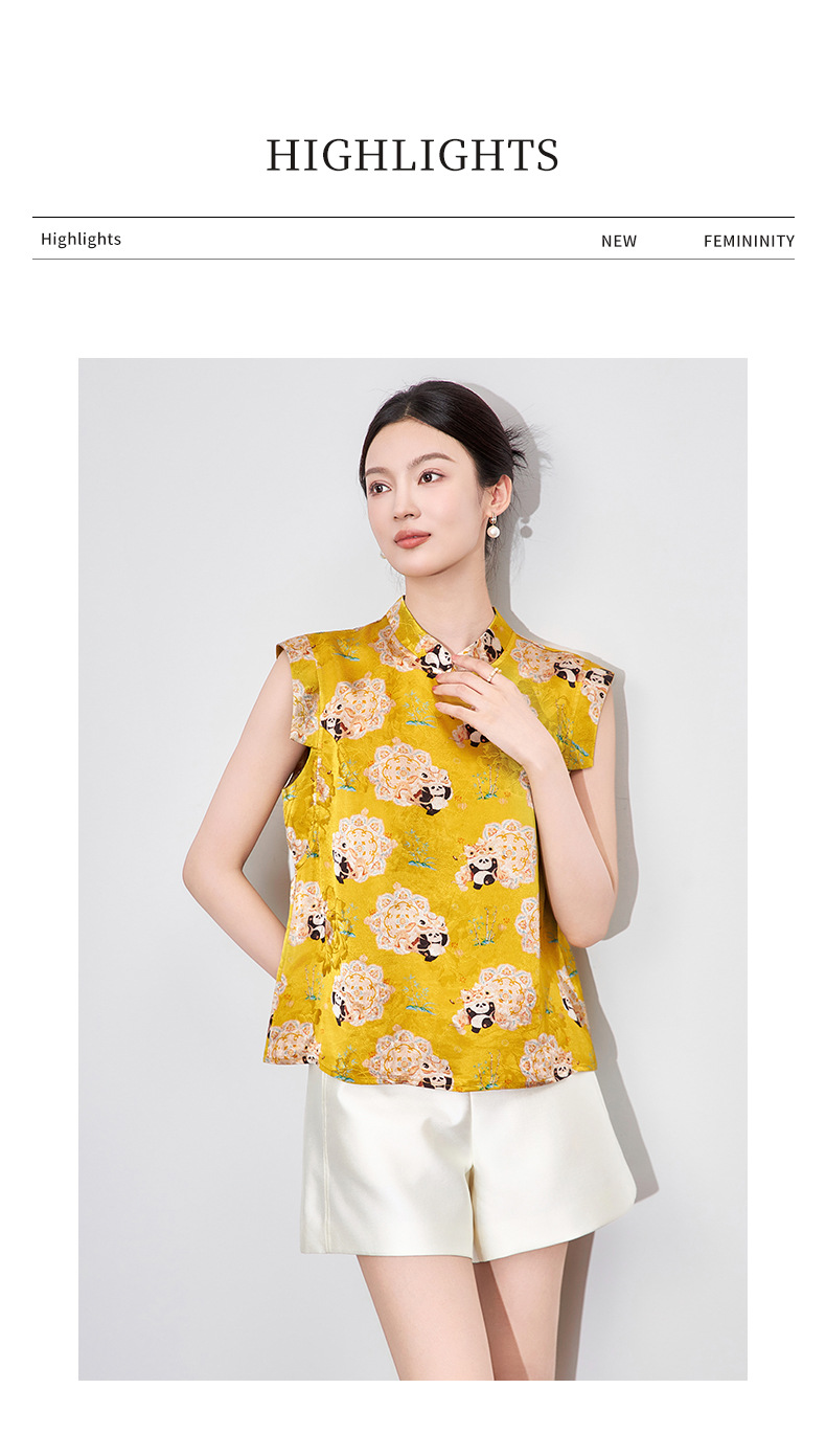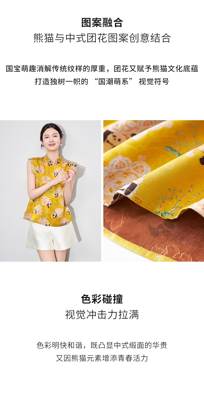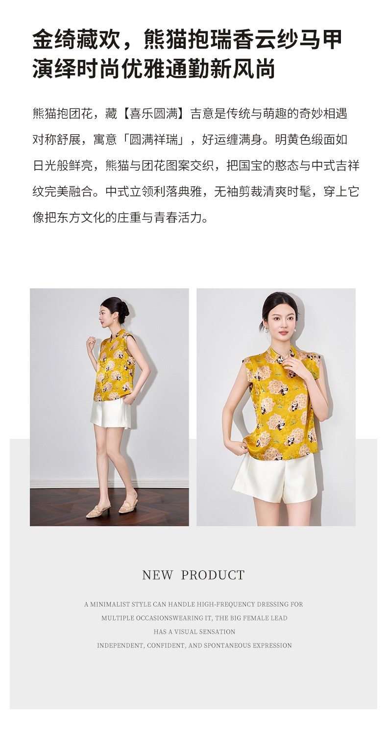 「高货wl」全新升级【铂金会员293/天猫389/差价96】(11612)洛诗琳设计感香云纱熊猫提花马甲2025夏季新中式国风上衣