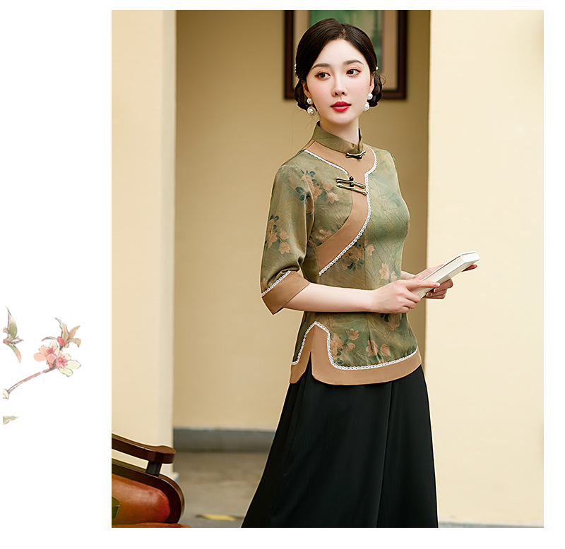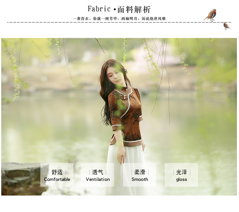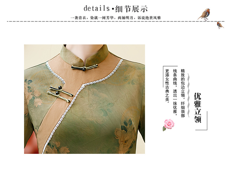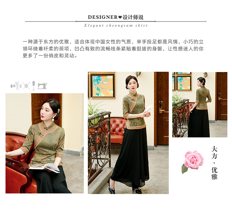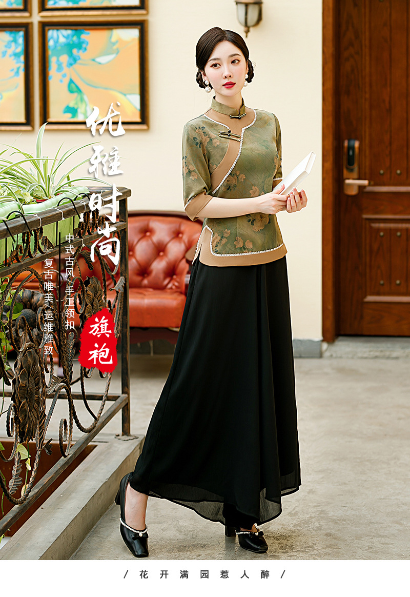 BJ-2226新款香云纱长款少女改良版连衣裙 春夏优雅气质旗袍裙套装两件套