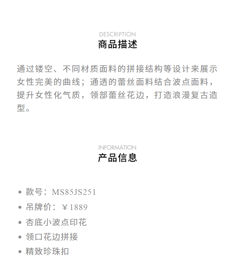 【商场同款】MAXRIENY法式浪漫连衣裙长裙波点高级感超仙连体裤(货号:MS85JS251)