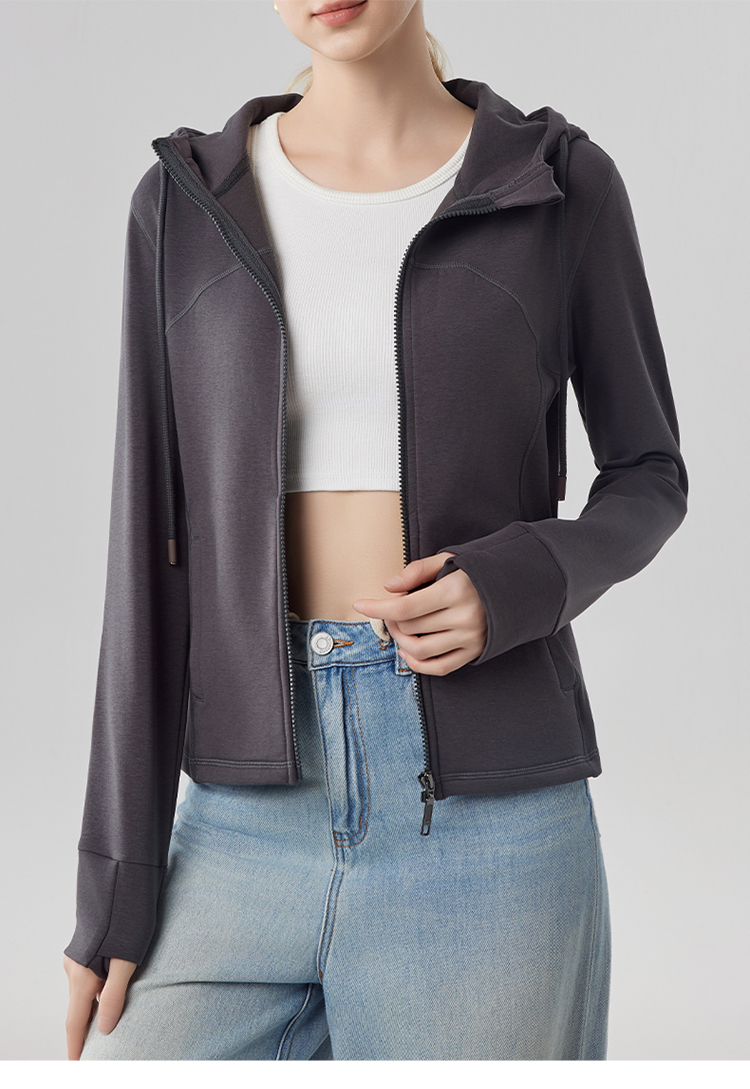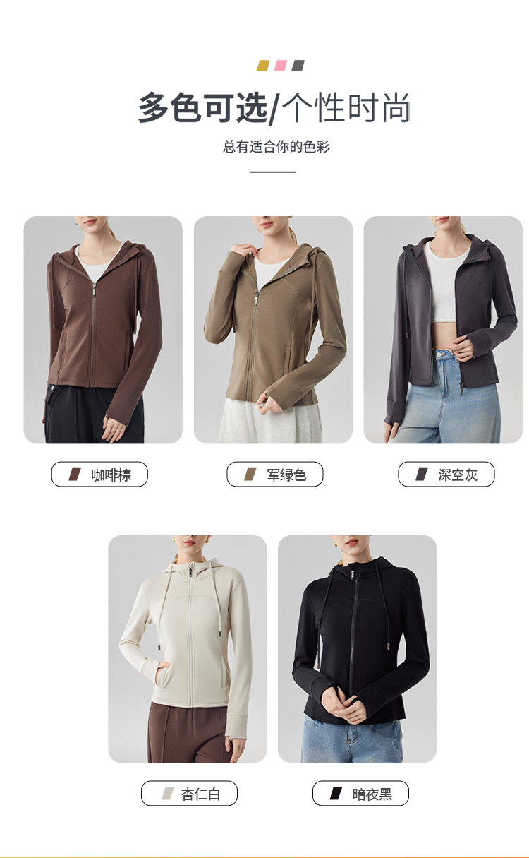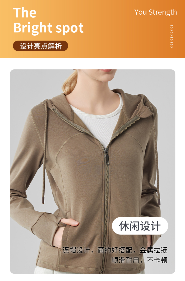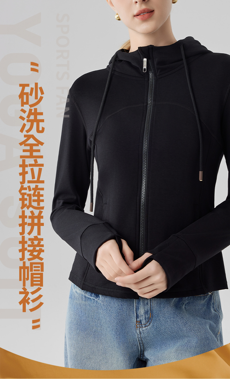 跃牌【砂洗空气层系列】女砂洗全拉链拼接帽衫W11M2