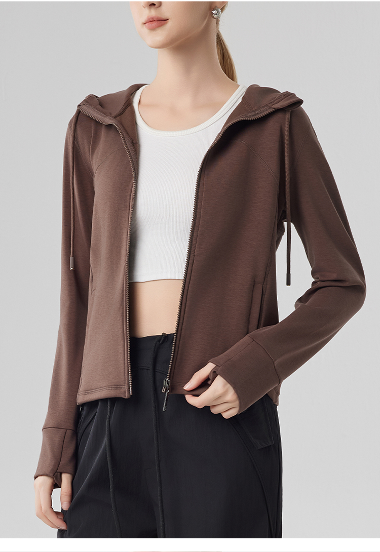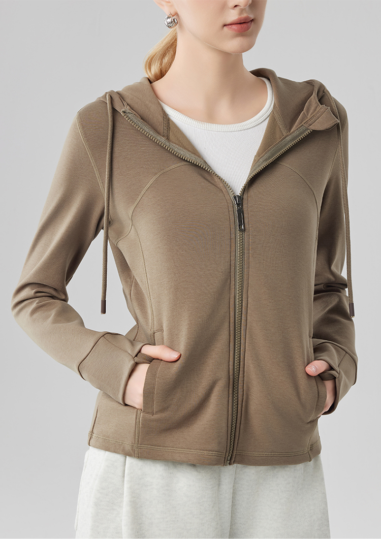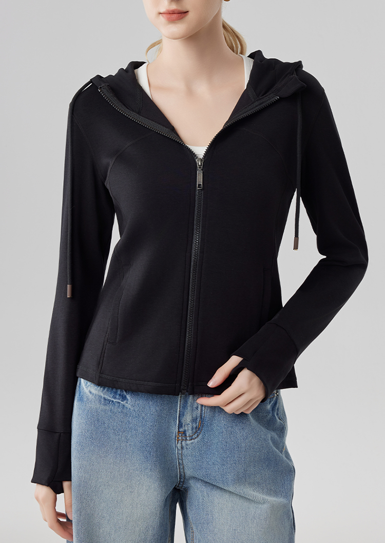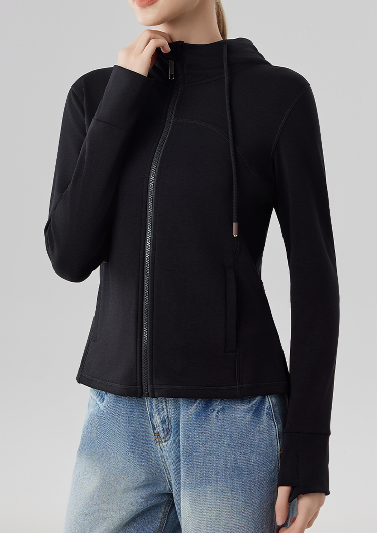 跃牌【砂洗空气层系列】女砂洗全拉链拼接帽衫W11M2
