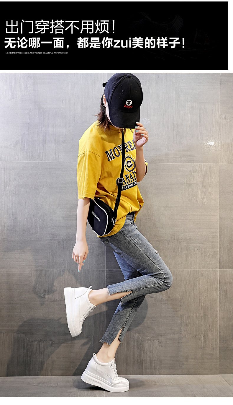 板鞋牛皮松糕单鞋高跟厚底,内增高休闲高帮鞋子短靴女鞋AM-1371