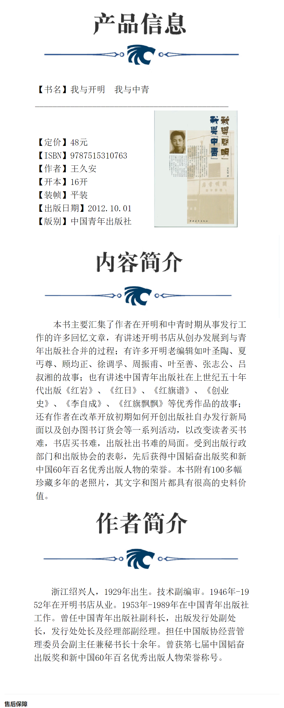 我与开明 我与中青 王久安著 中国青年出版社