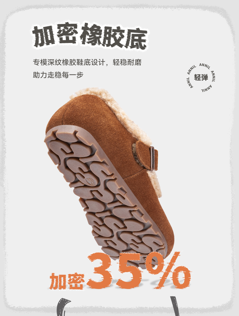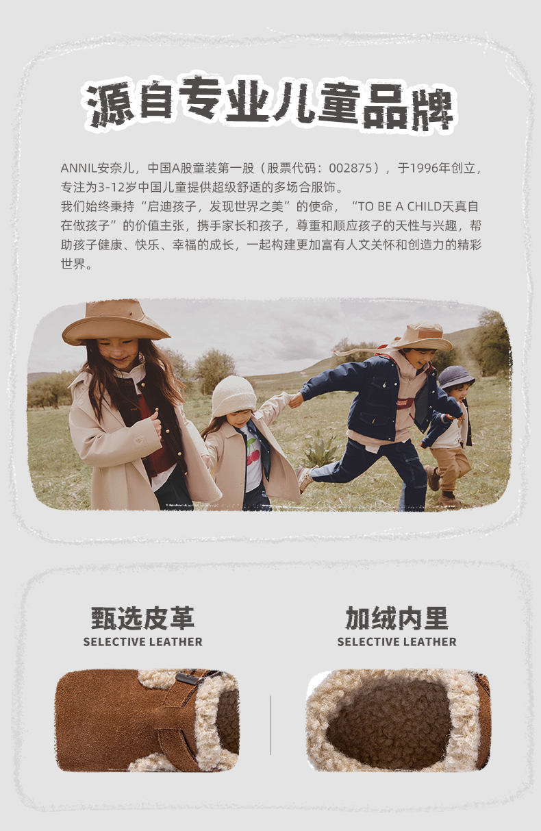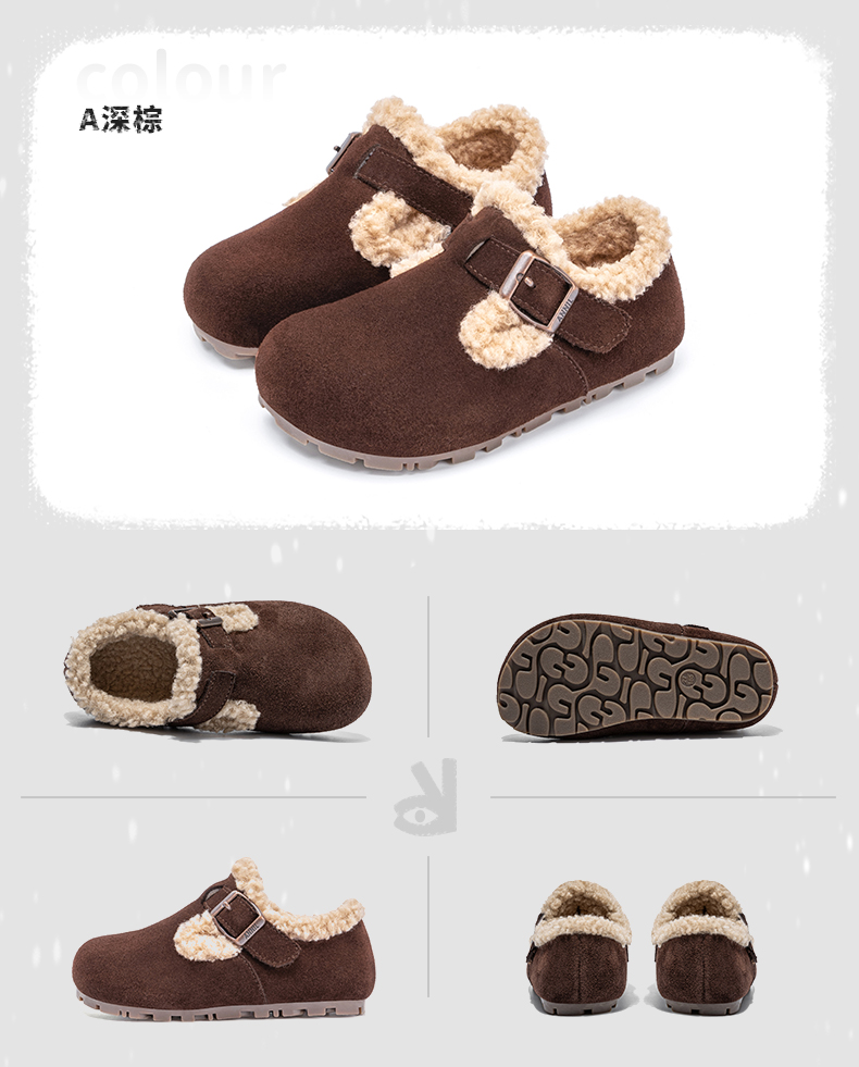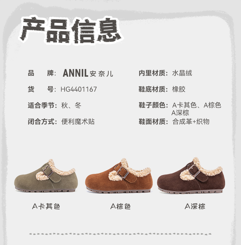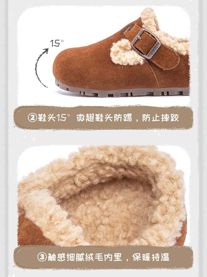 ANNIL/安奈儿软底童鞋冬季新款儿童休闲百搭保暖毛毛鞋加绒勃肯鞋HG4401167
