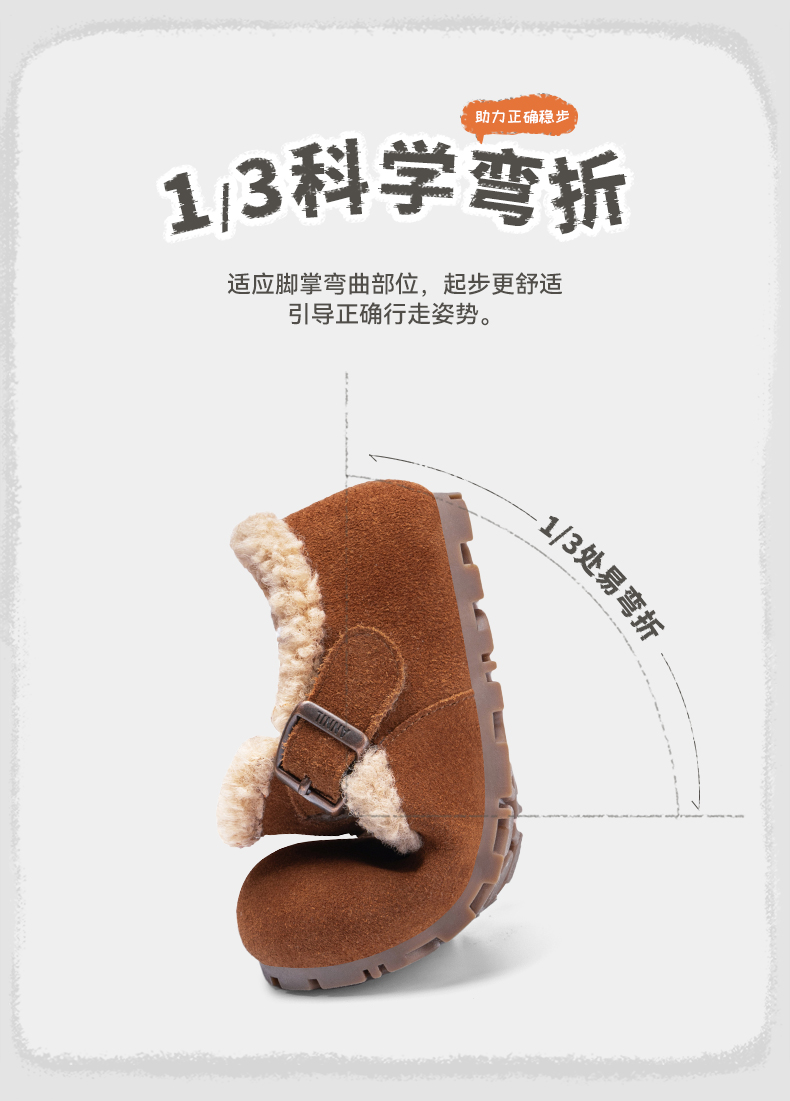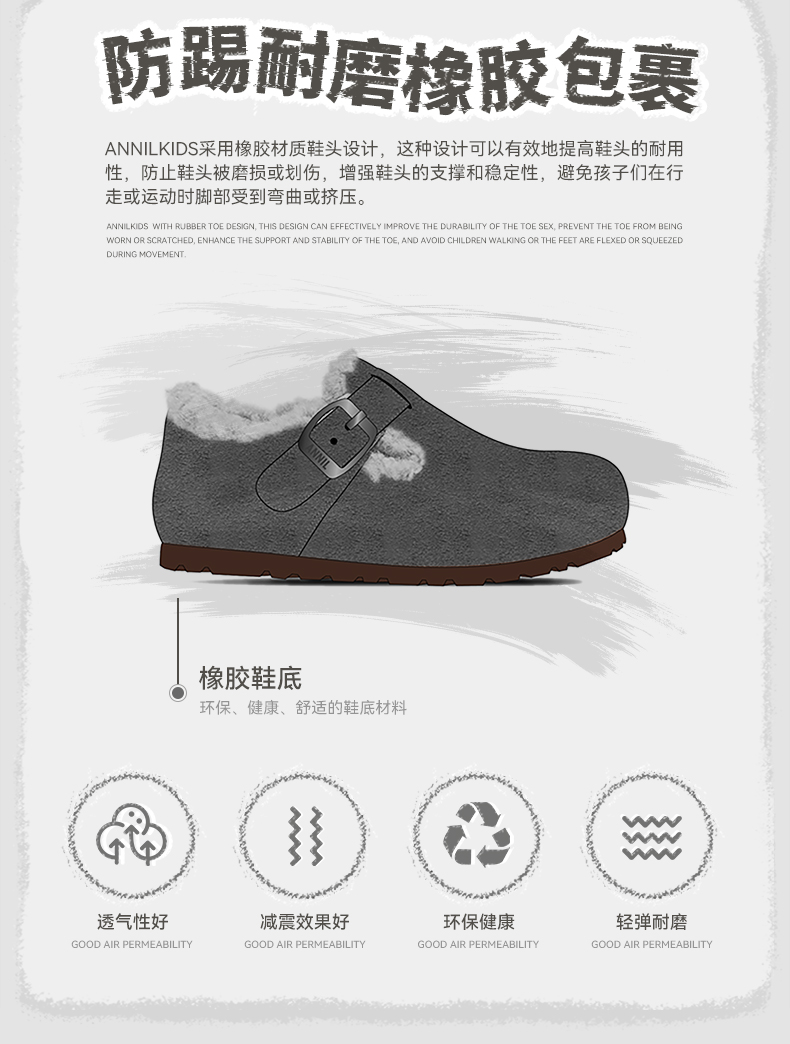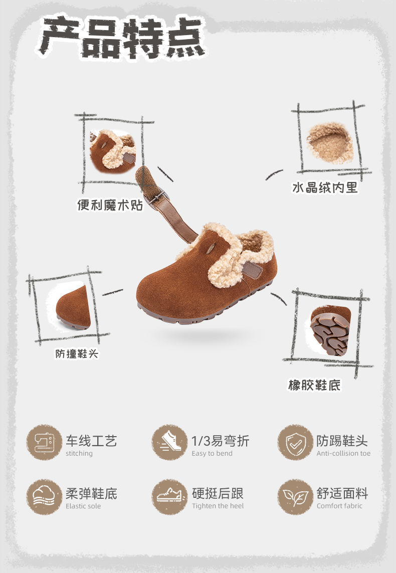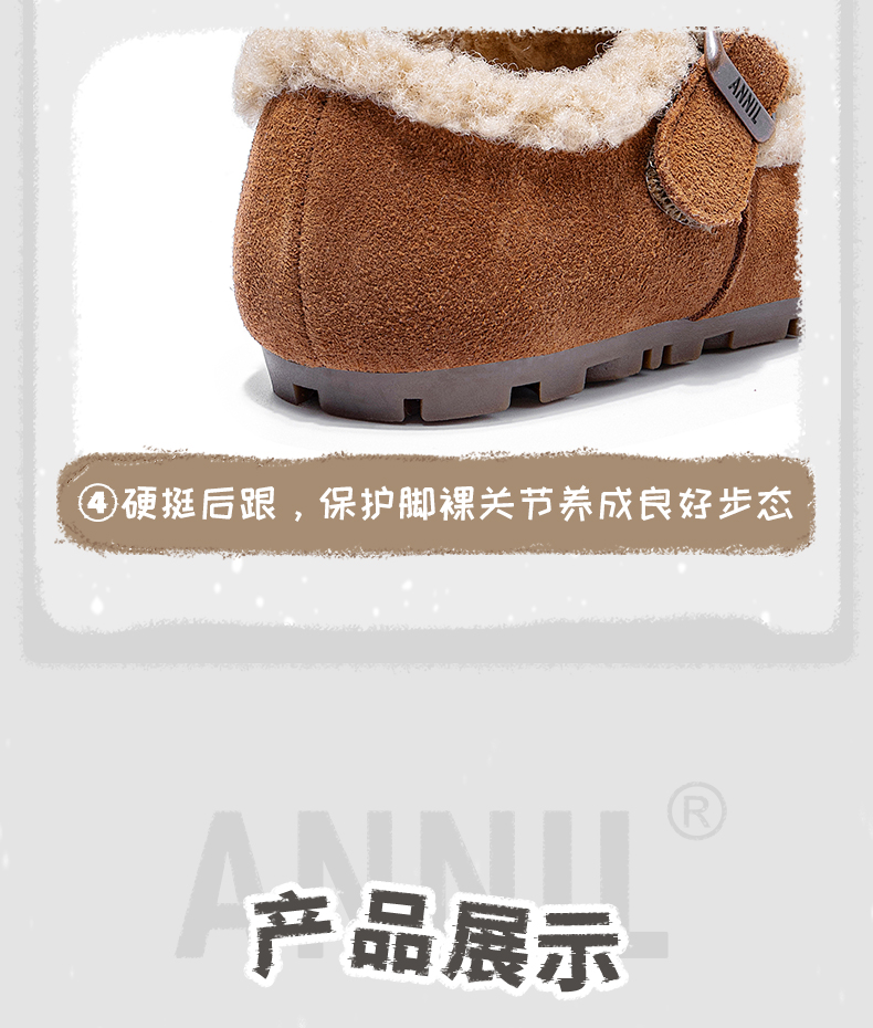 ANNIL/安奈儿软底童鞋冬季新款儿童休闲百搭保暖毛毛鞋加绒勃肯鞋HG4401167