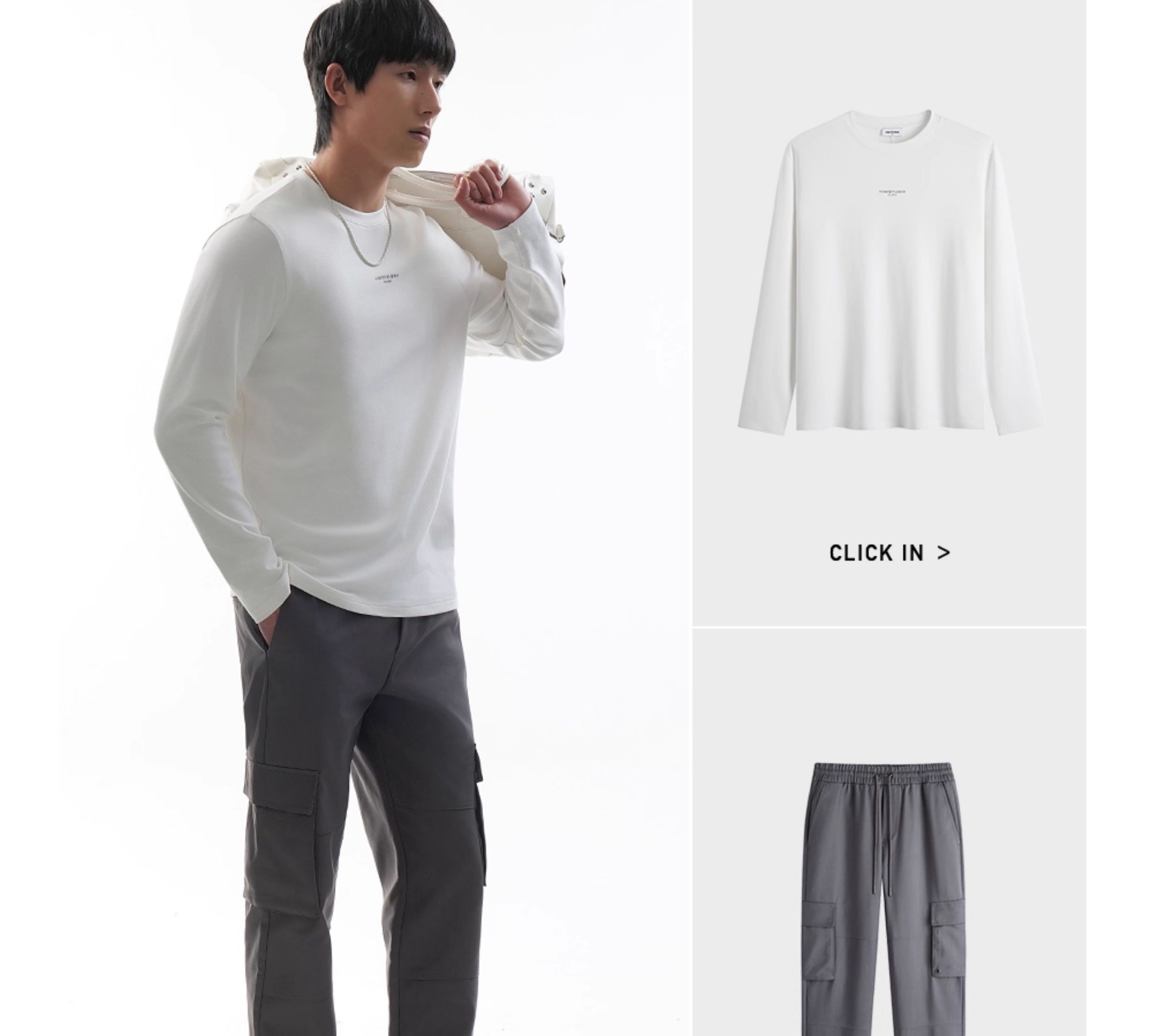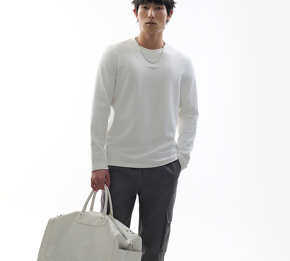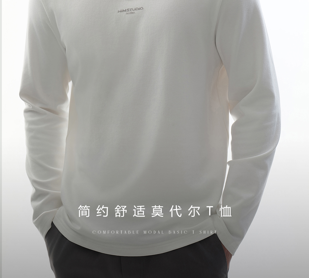 HIM漢崇 简约字母烫花长袖圆领T恤舒适休闲莫代尔棉上衣 2025秋季