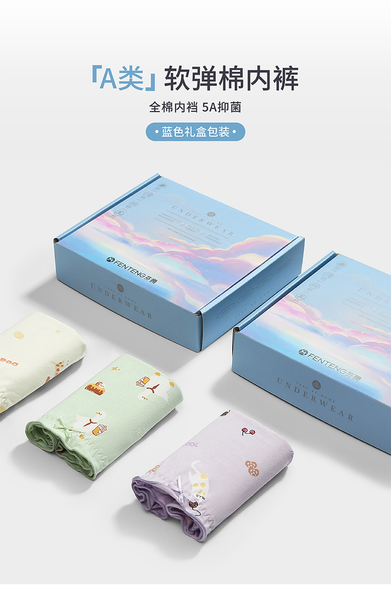 芬腾内裤女棉质舒适透气裆抗菌新款提臀卡通可爱动物少女三角裤头