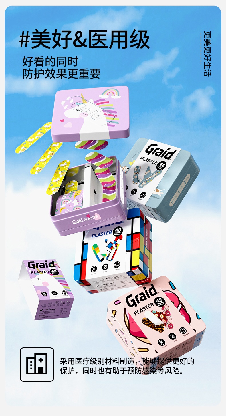 Graid铁盒Herobox创口贴48片装