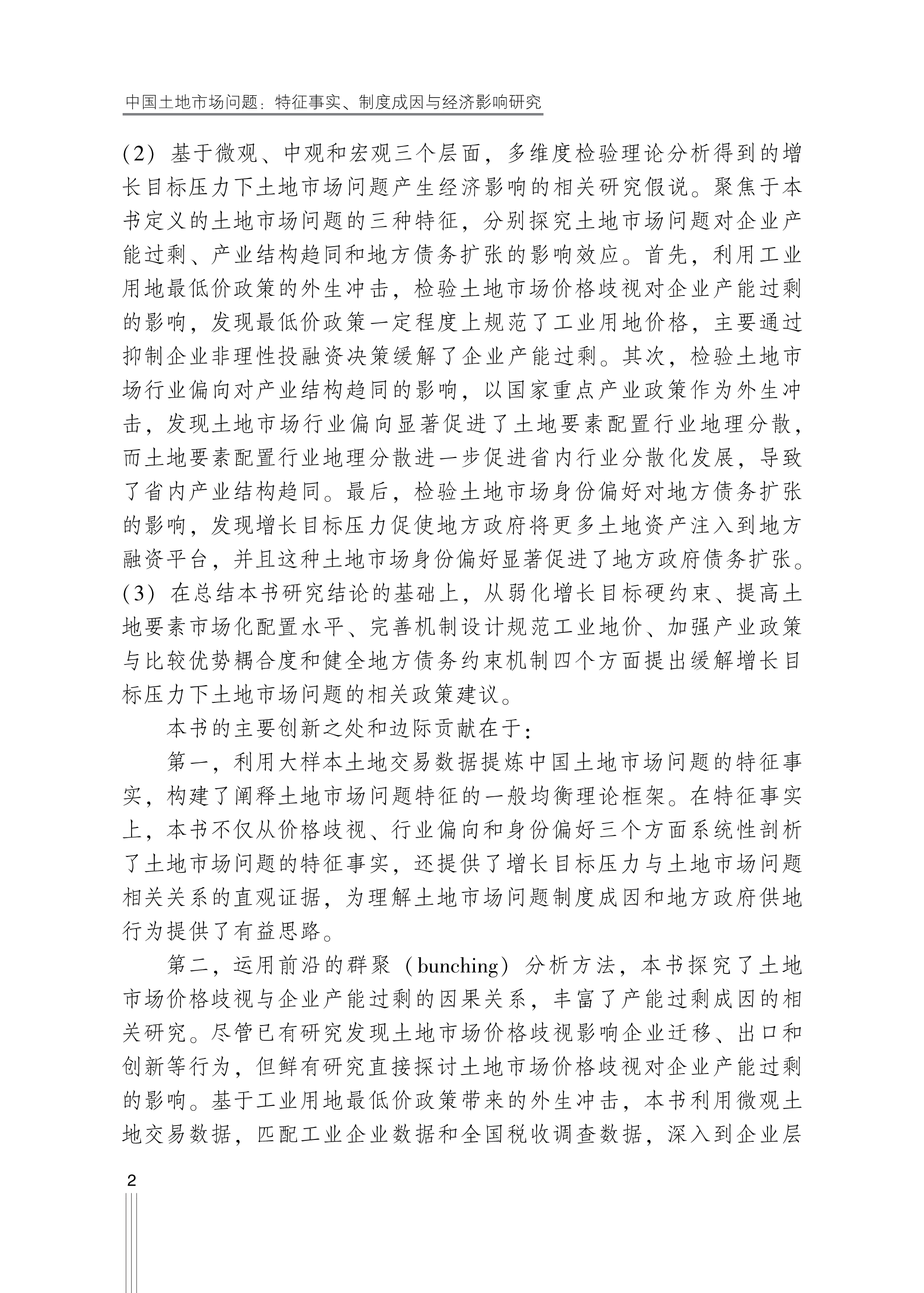 中国土地市场问题--特征事实、制度成因与经济影响研究