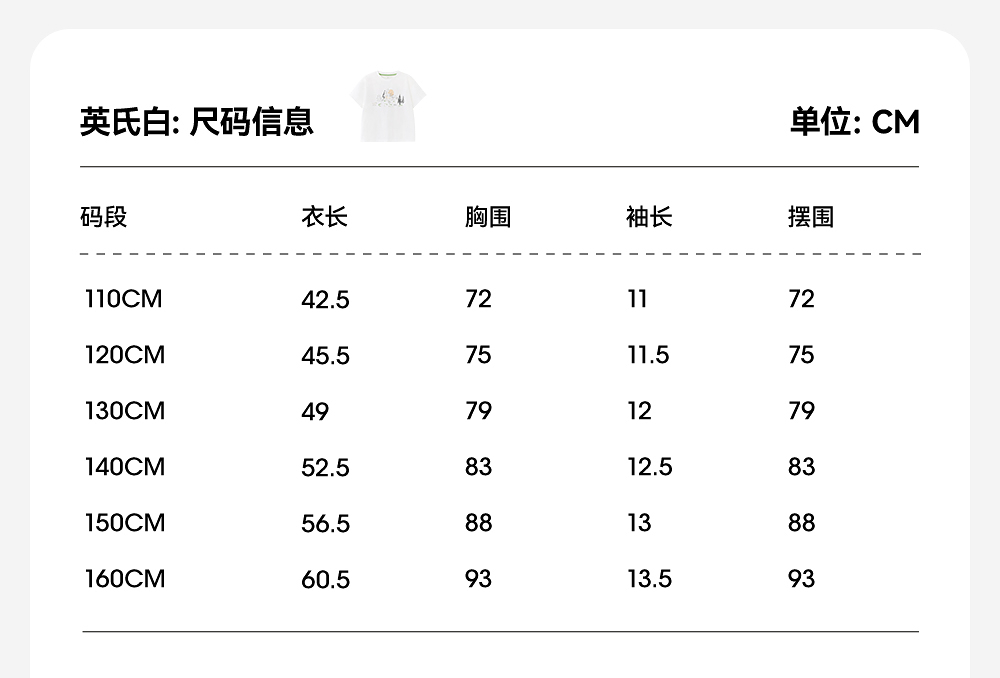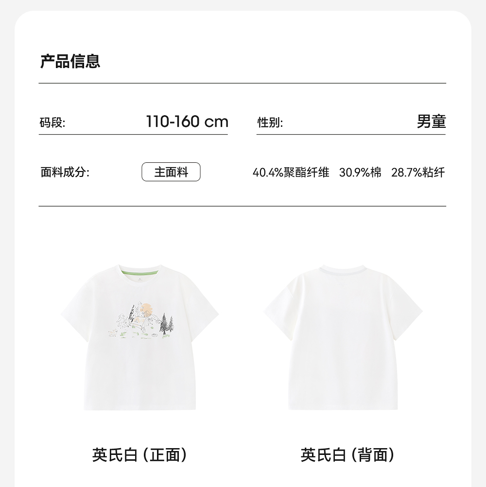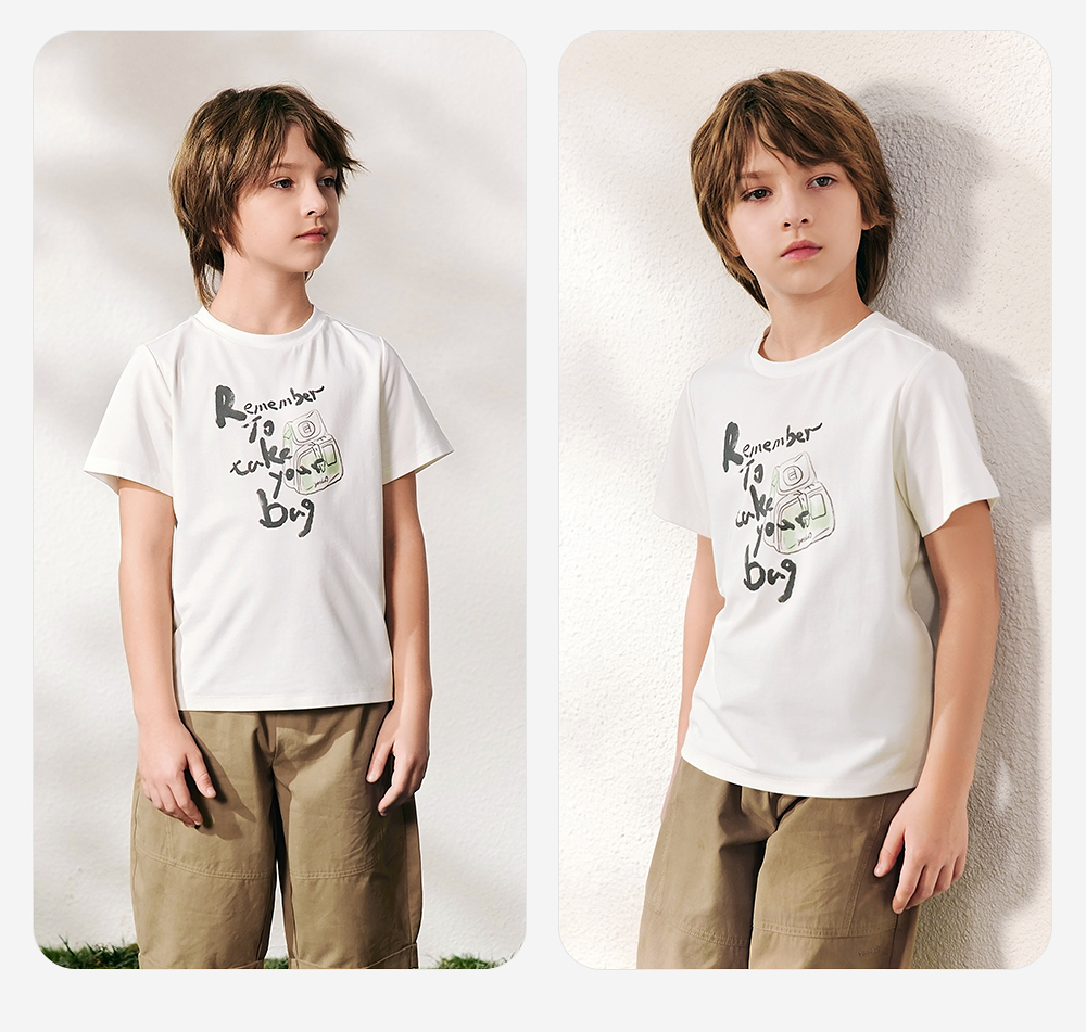 英氏儿童T恤夏季透气凉感白T短袖男童女童休闲T恤中大童2025新款