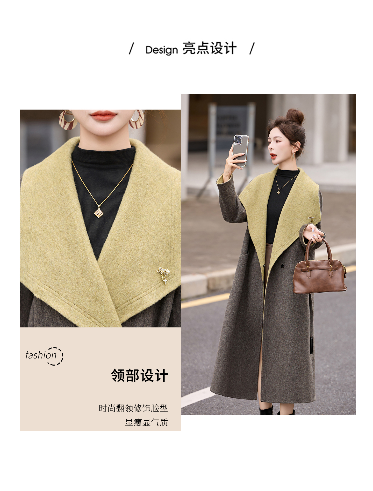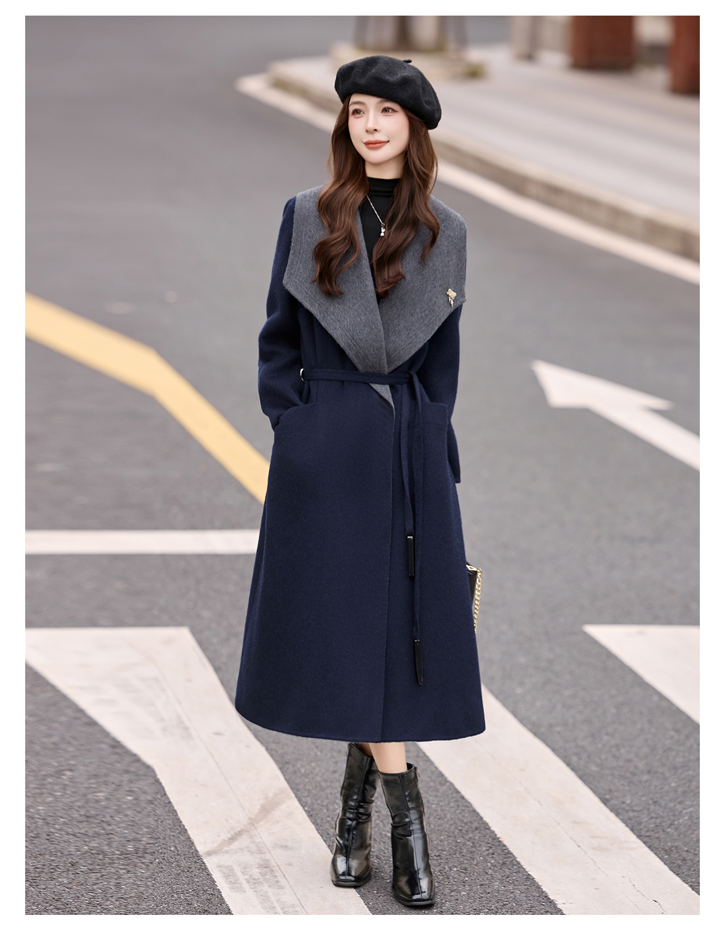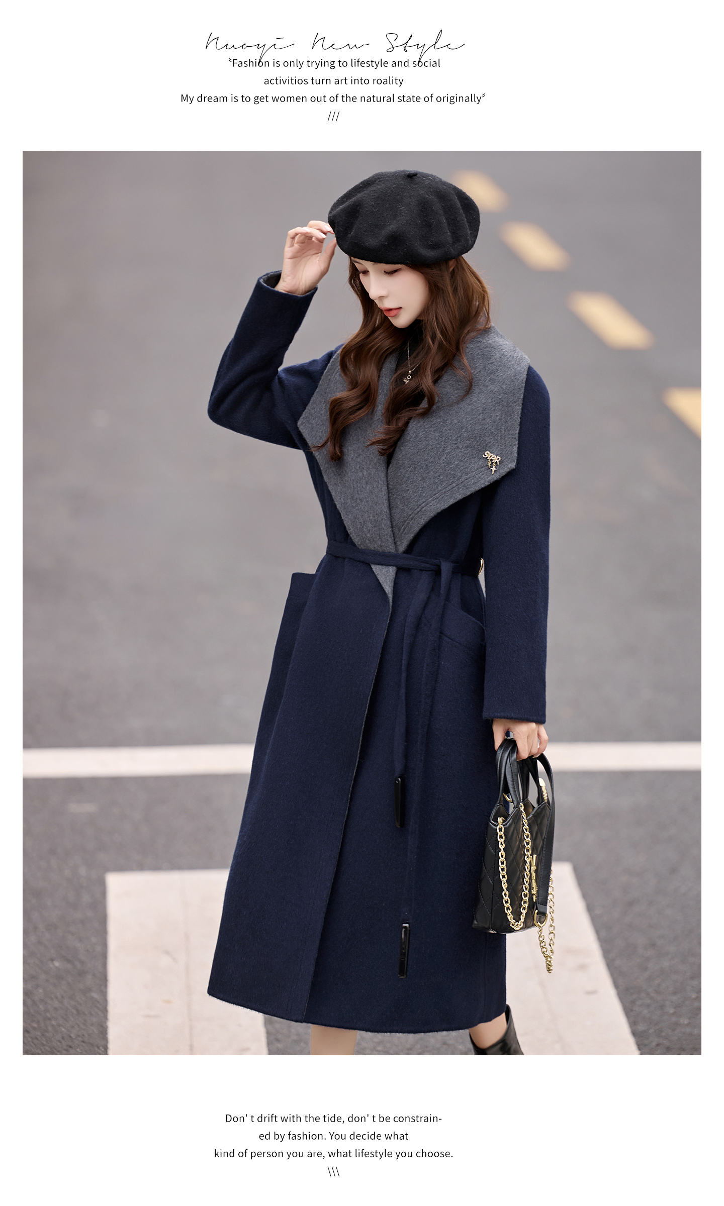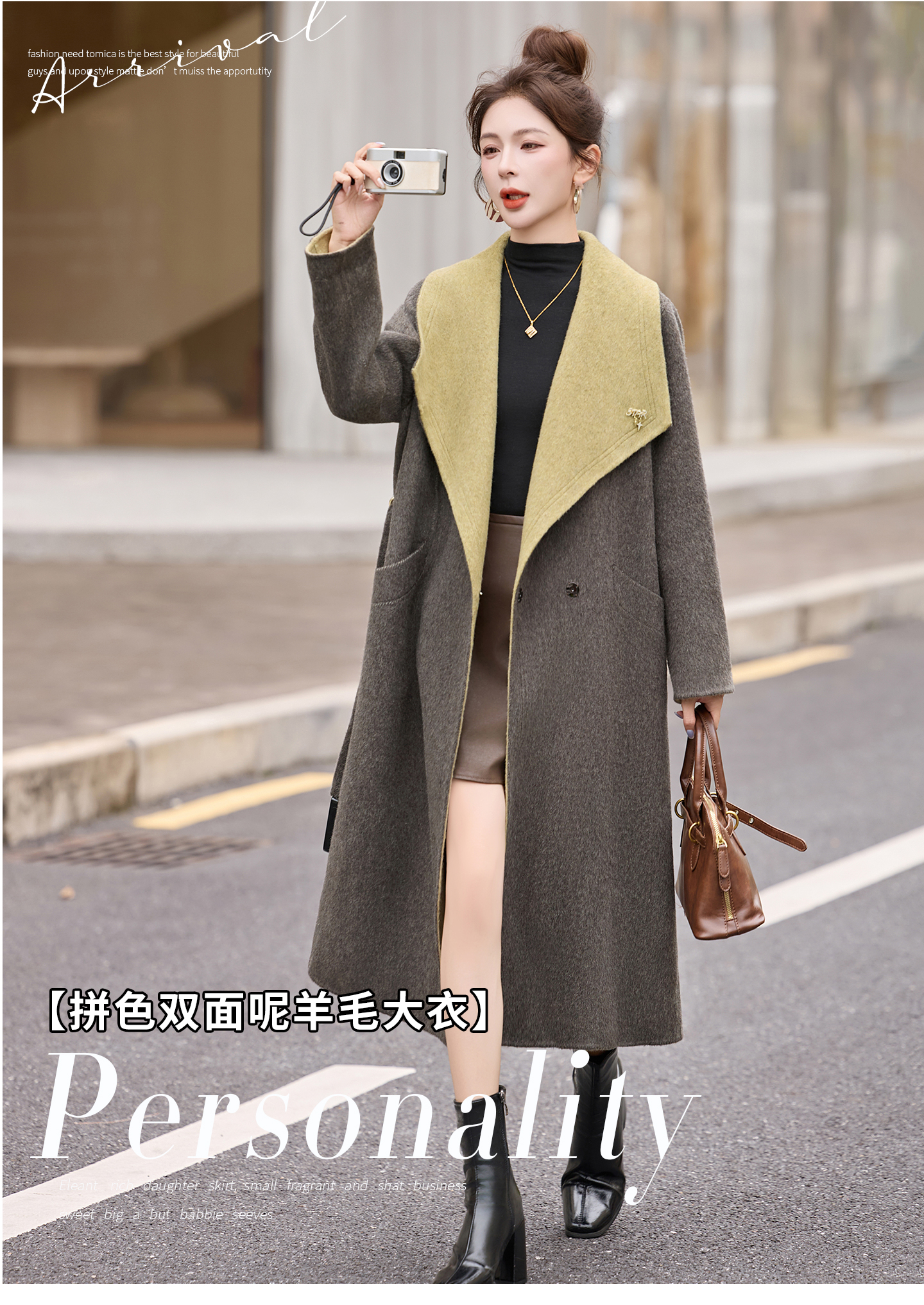 拼色双面呢羊毛大衣,显瘦宽松气质呢子外套HR-ASLZ8529