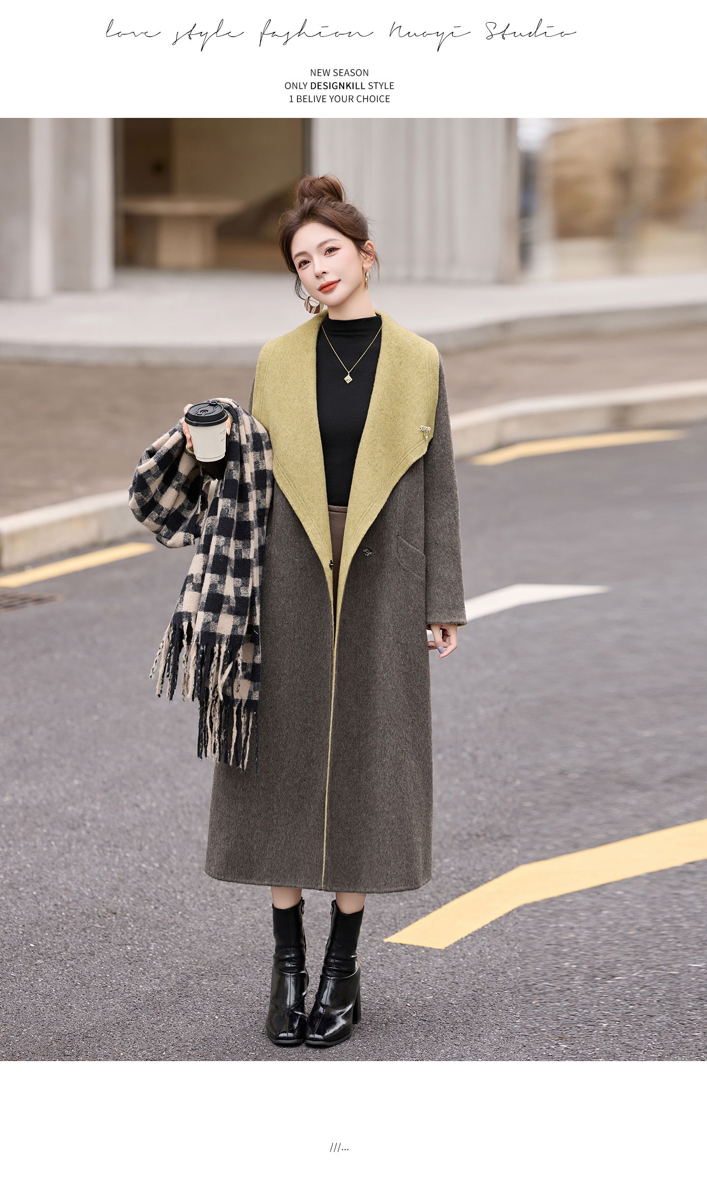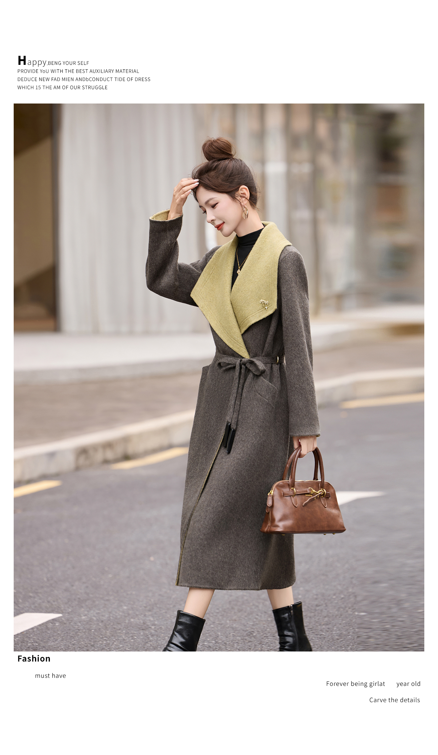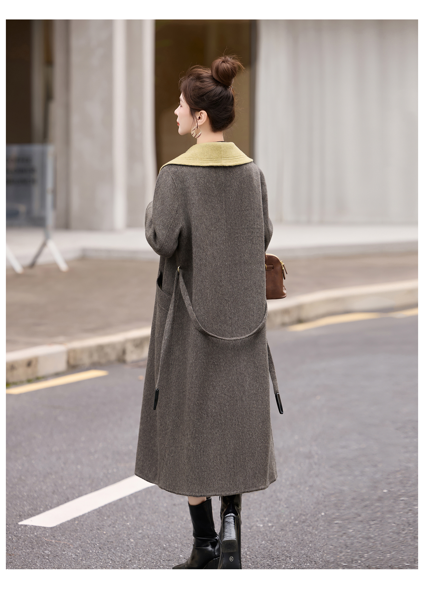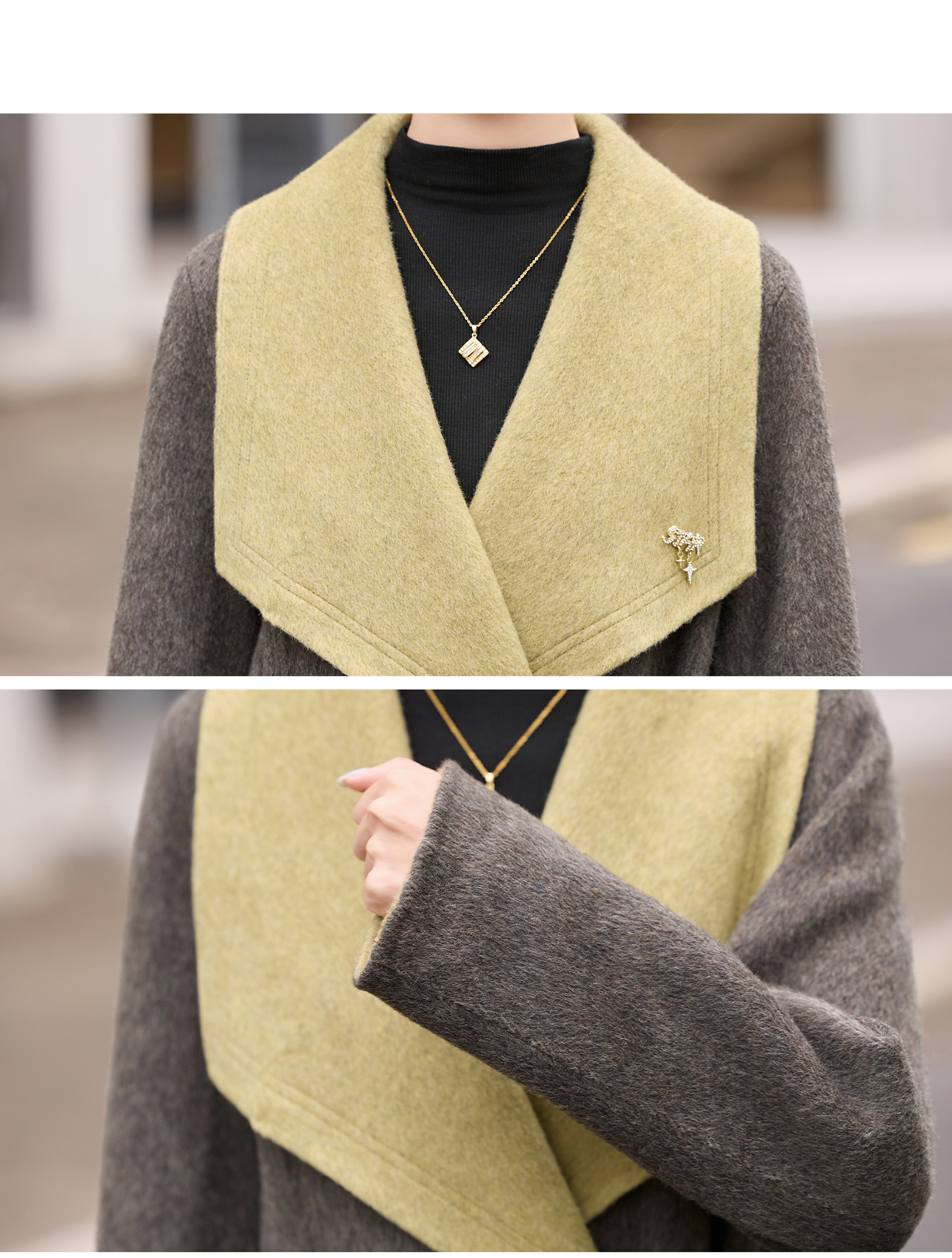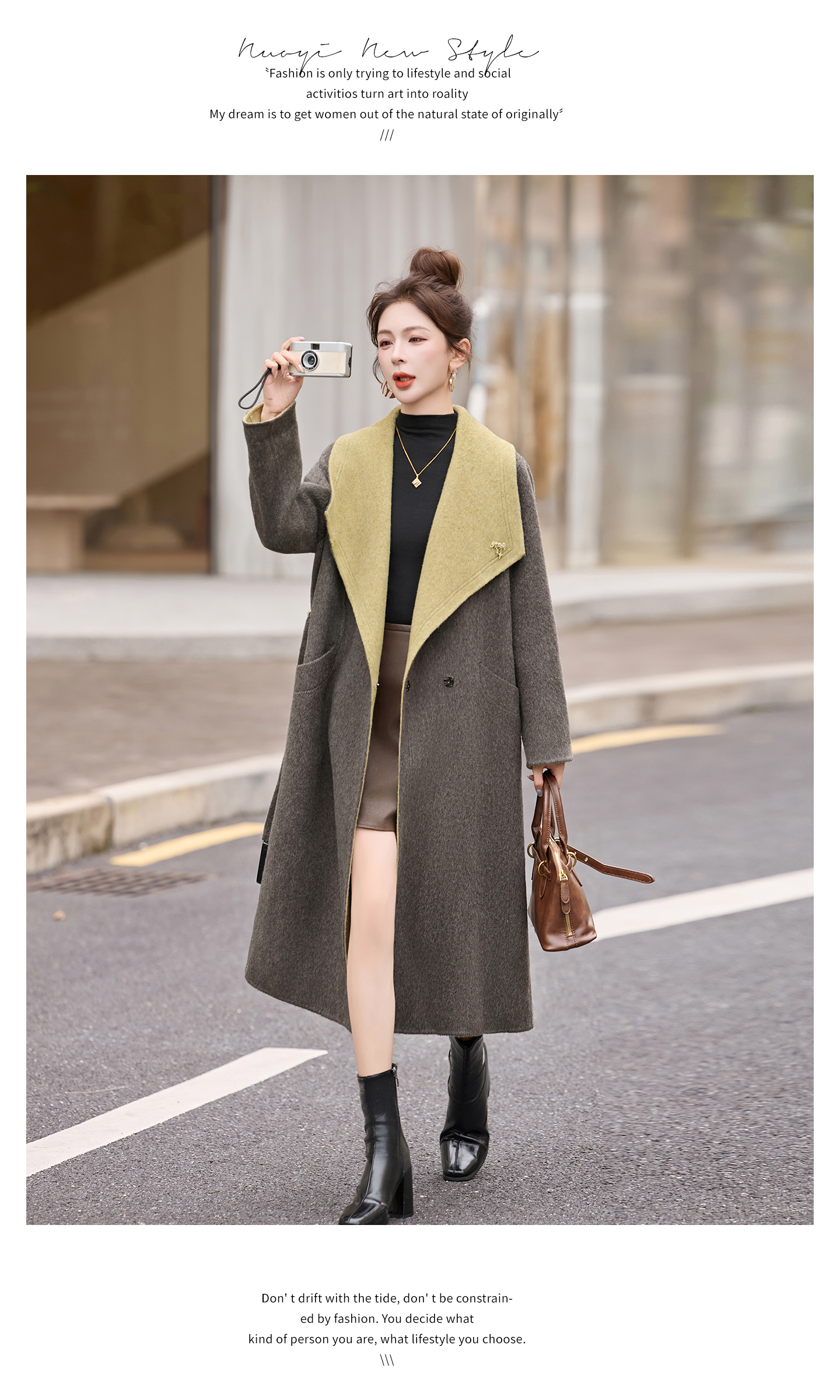 拼色双面呢羊毛大衣,显瘦宽松气质呢子外套HR-ASLZ8529
