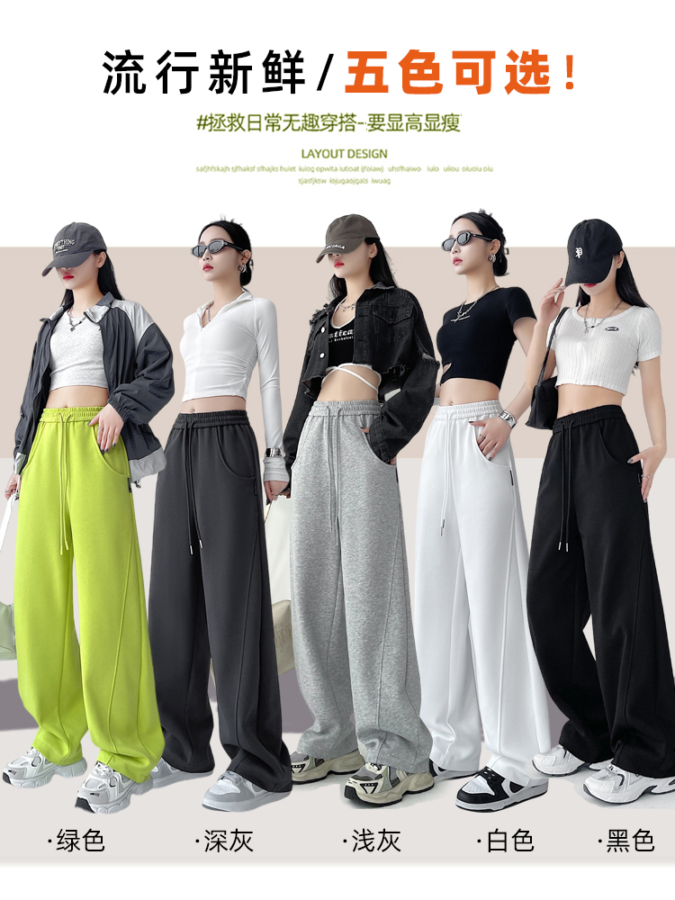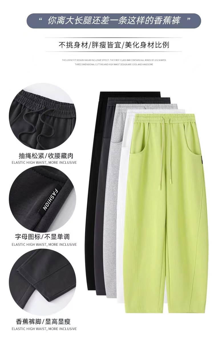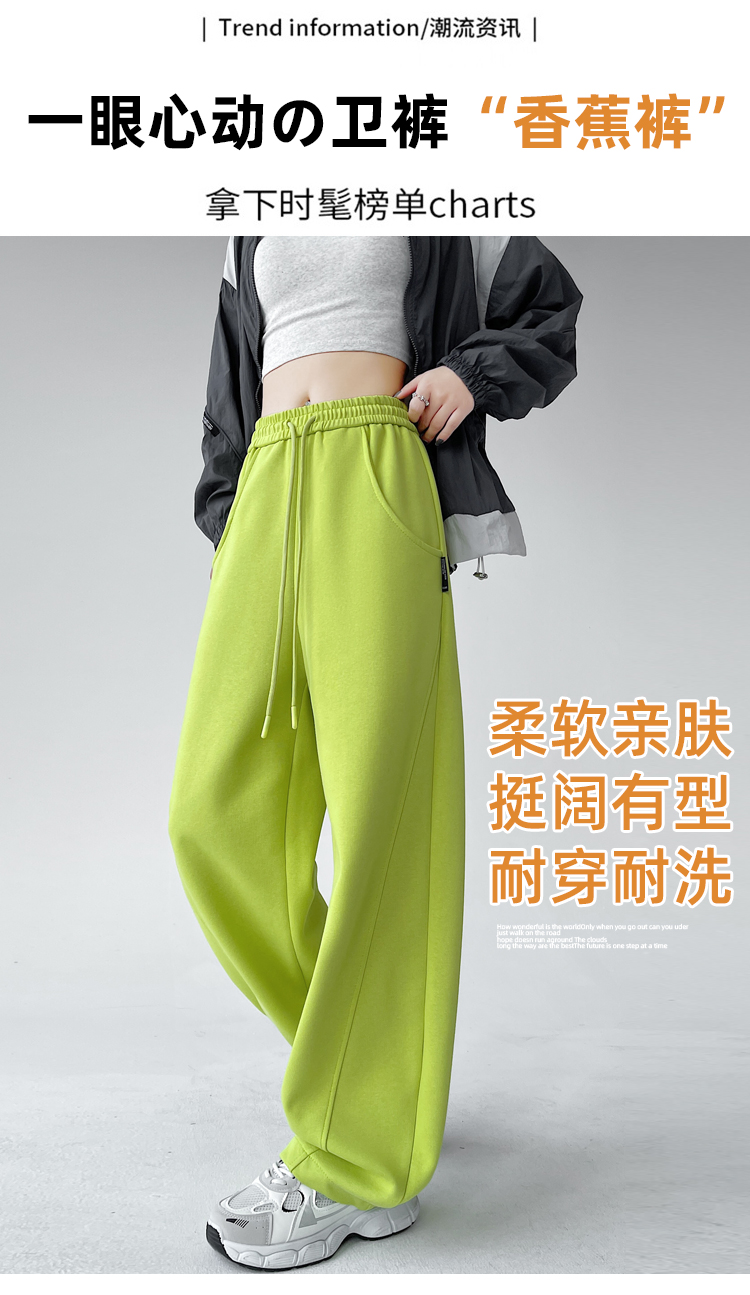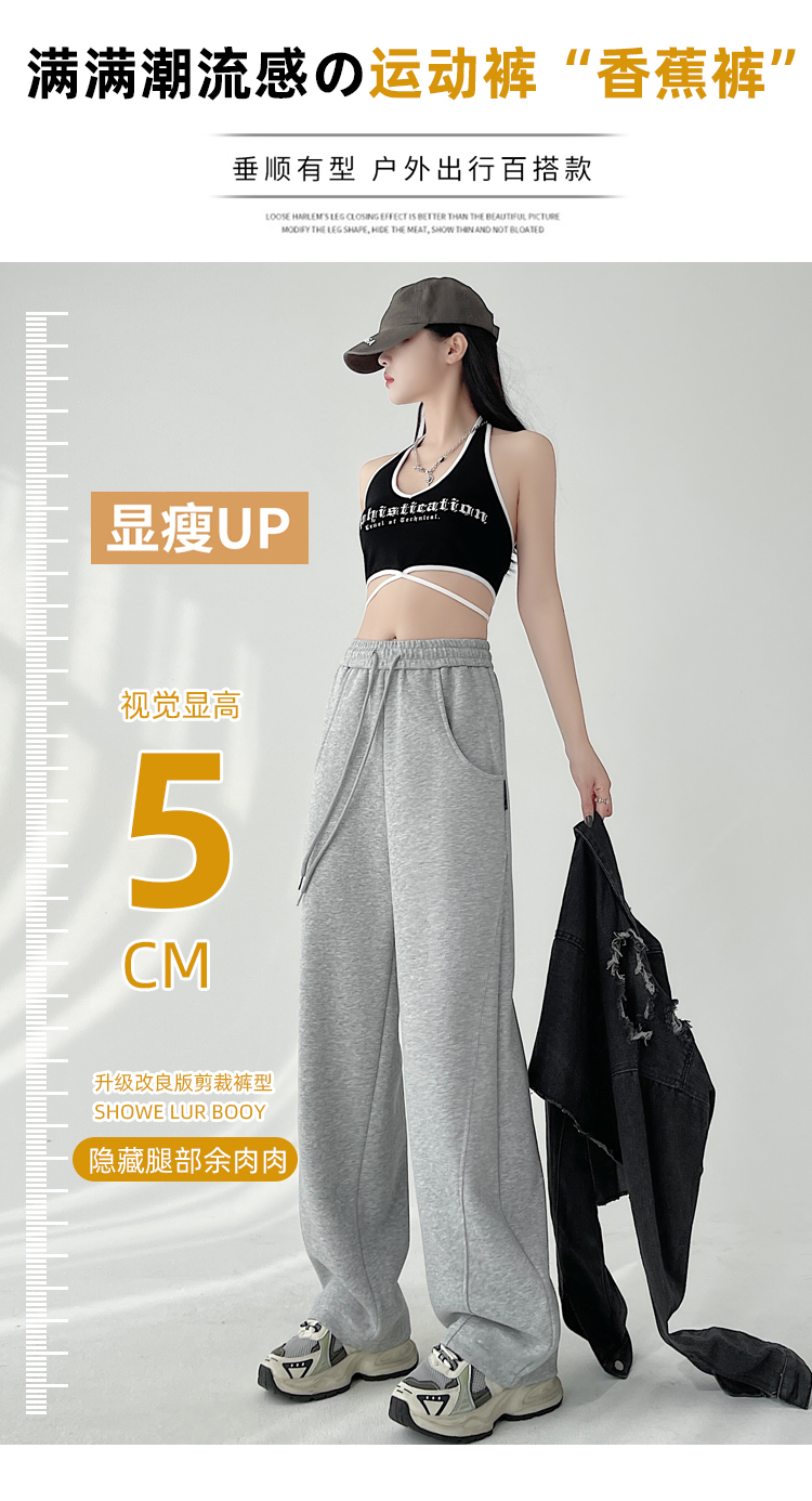 窄版香蕉运动裤女春季美式直筒宽松显瘦休闲阔腿卫裤 SKW-XBS-1888#【2306#】
