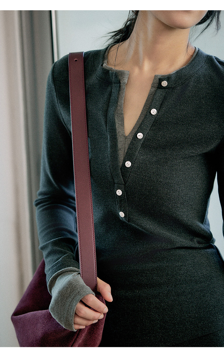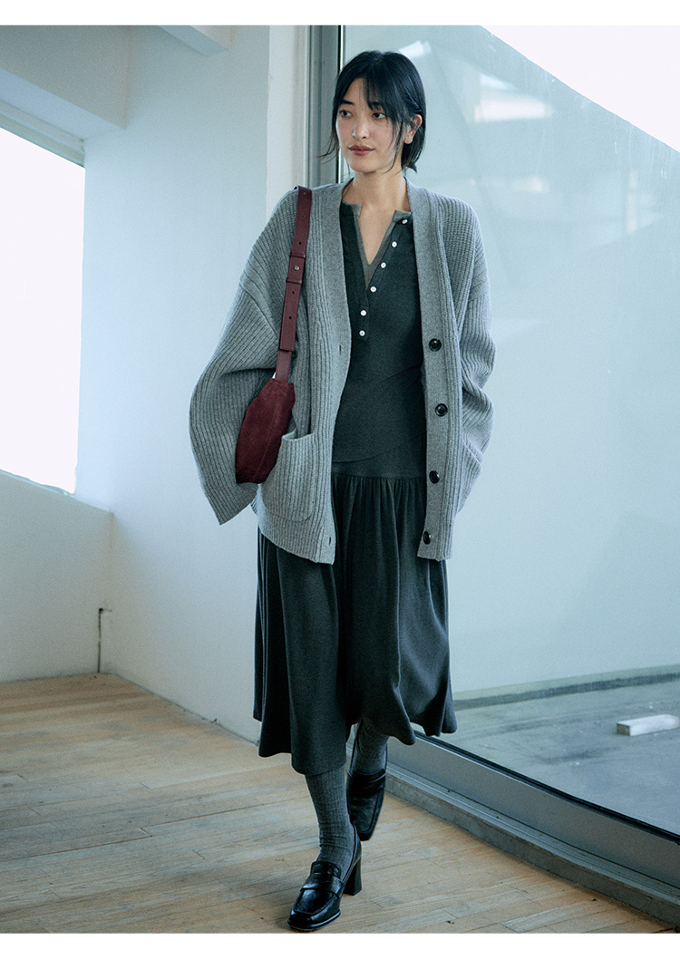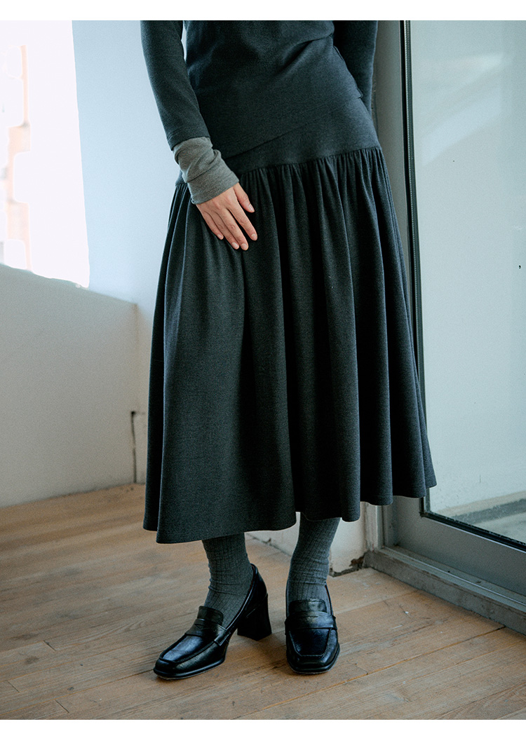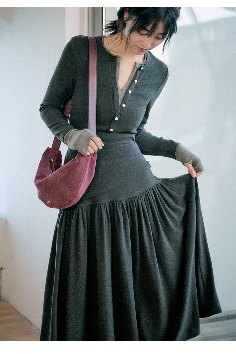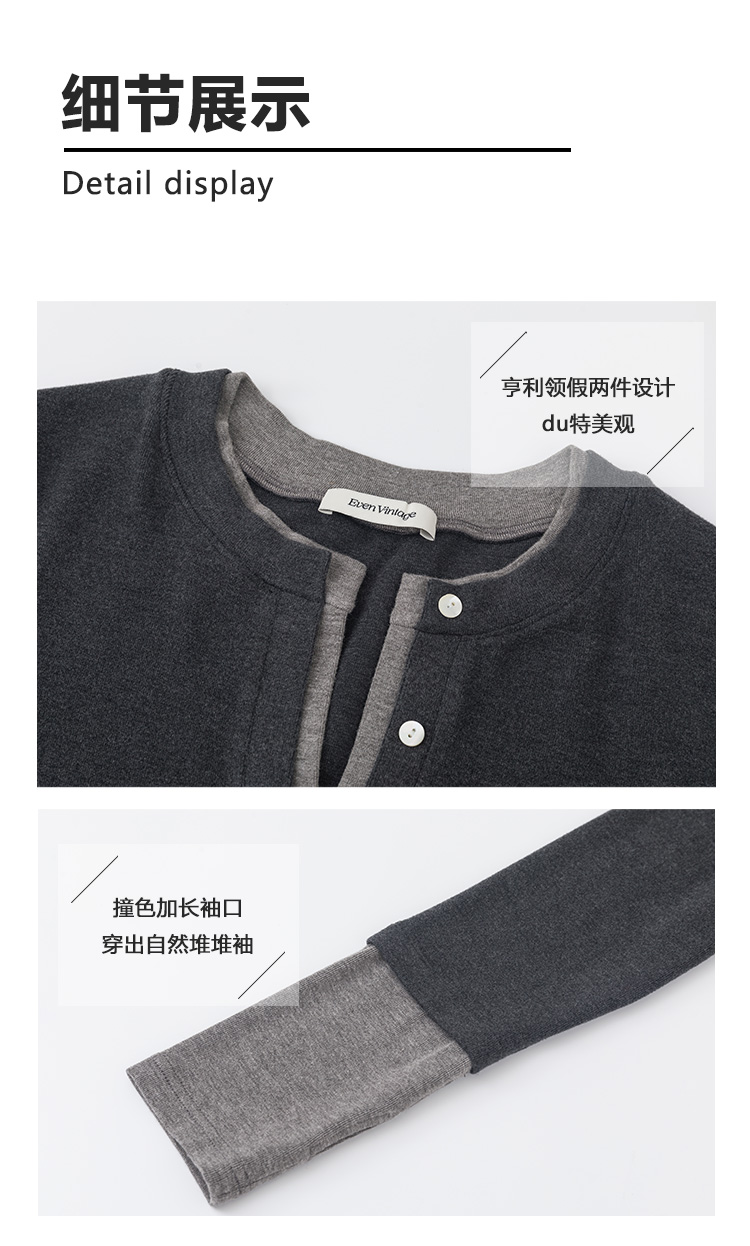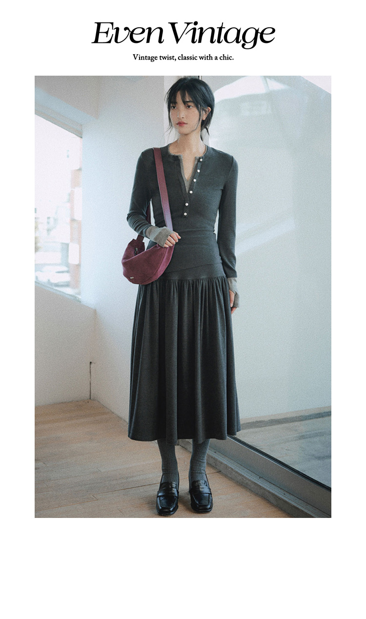 Even Vintage|都市简约 磨毛羊绒感亨利领假两件针织衫优雅半身裙