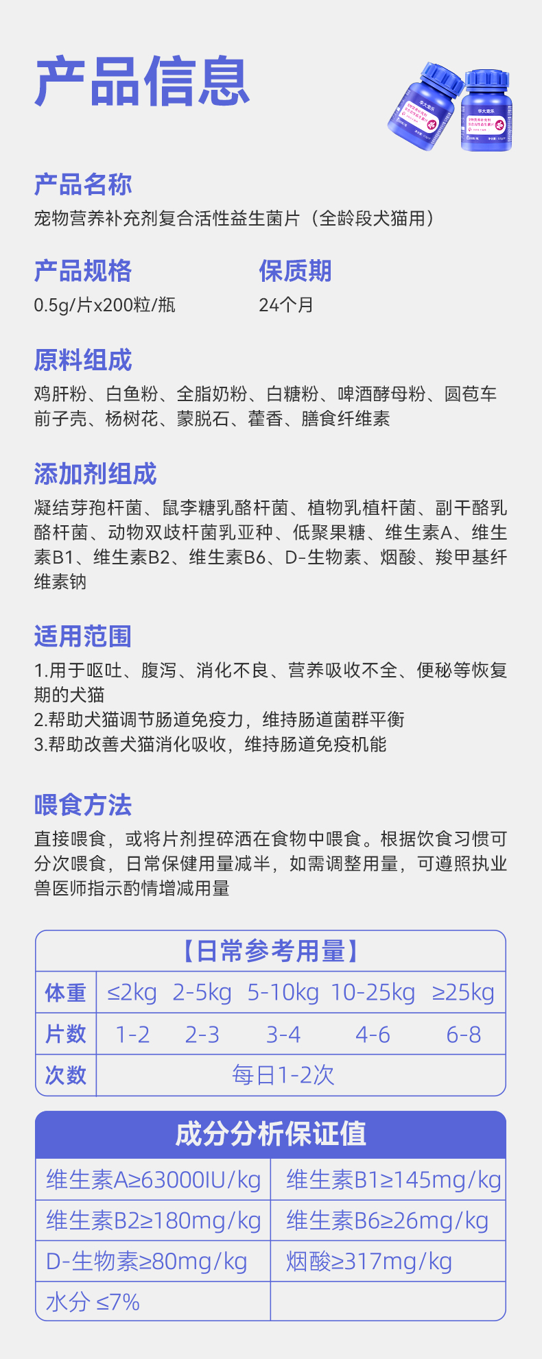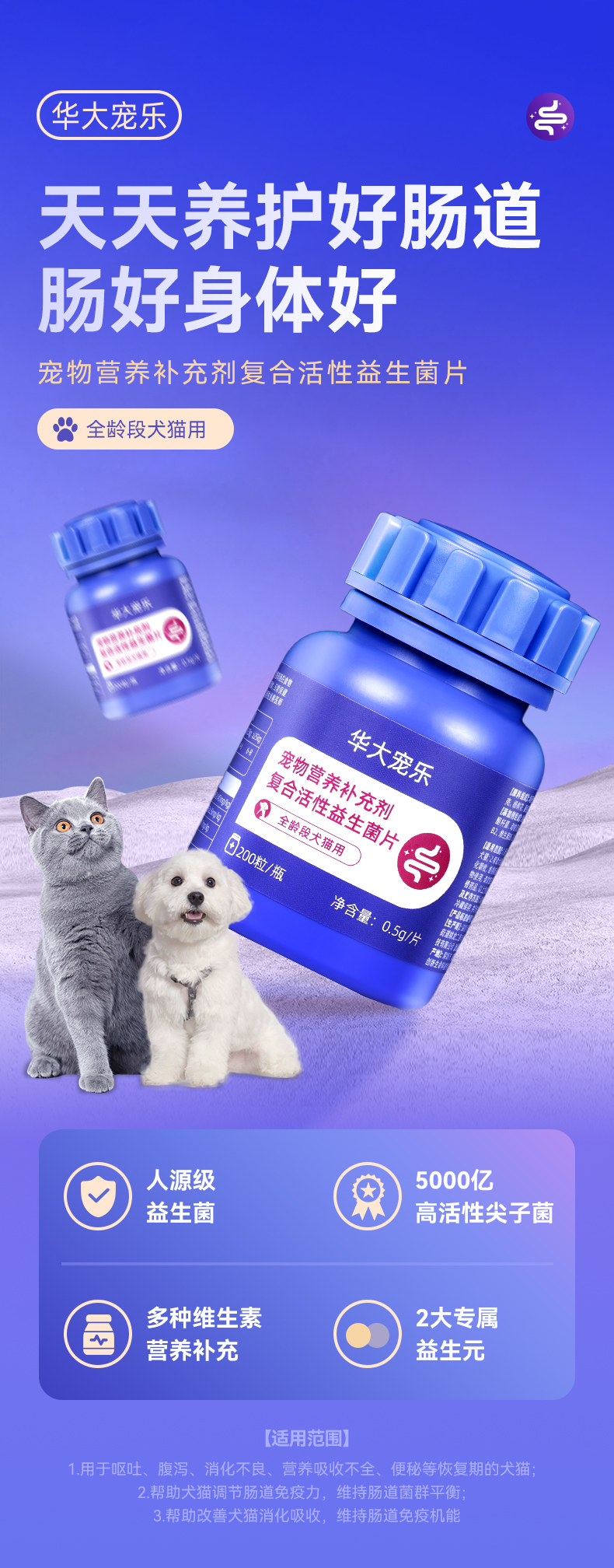 华大宠乐·宠物营养补充剂复合活性益生菌(肠道款)(200粒/瓶)