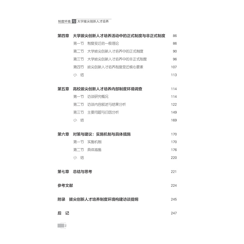本书为作者的博士学位论文。如何找到拔尖创新人才培养的突破点一直是各个高校关注的热点和难点问题。本书首先通过对纵向历史事实的考察,回顾拔尖创新人才培养的历史,探寻其社会存在基础。其次,从正式制度和非正式制度两个层面,研究制度环境理论与高校拔尖创新人才培养活动的契合基础。再次,在国内高校访谈调查和域外实地调查基础上,归纳和分析拔尖创新人才培养高校内部制度环境方面存在的问题和原因。最后,对我国拔尖创新人才培养高校内部制度环境构建提出对策建议。