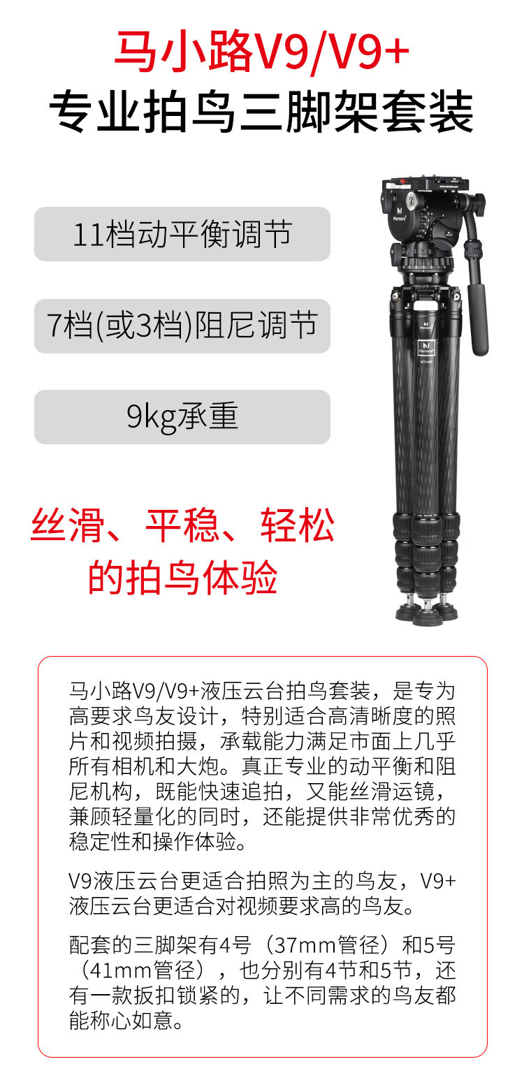 马小路Marsace V9、V9+液压云台拍鸟三脚架套装
