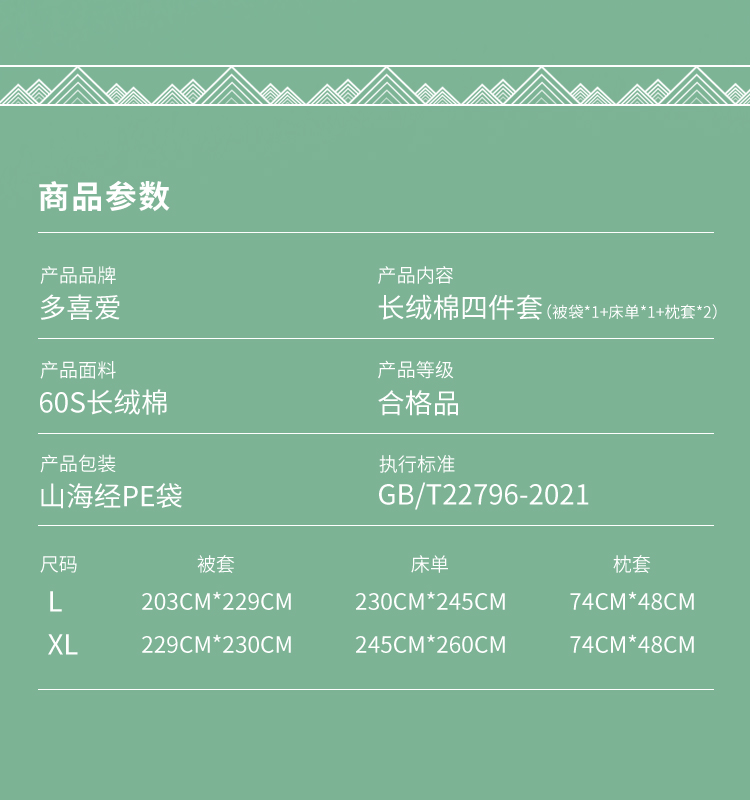 - 多喜爱官方微商城以售卖套件类产品(含枕套、被套、床单、床笠等)、芯类产品(含枕芯、被芯)为主的家纺用品