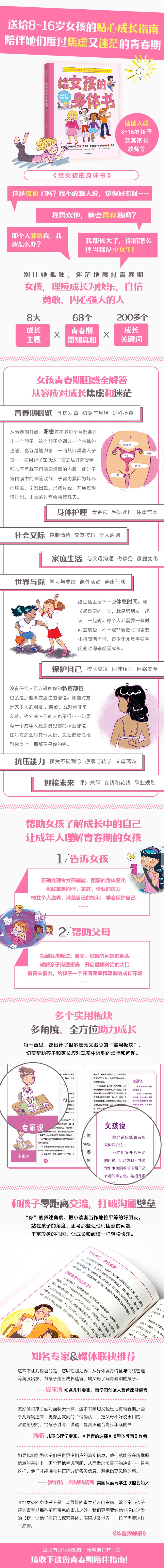 以女孩身体特征和发育状态为基础,揭示由身体的变化带来的众多问题,如情绪低落、自卑敏感、认知偏差等,帮助女孩理解自己的身体,切实应对各类成长问题。